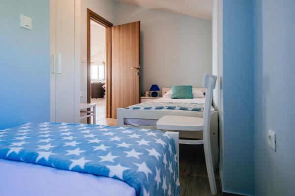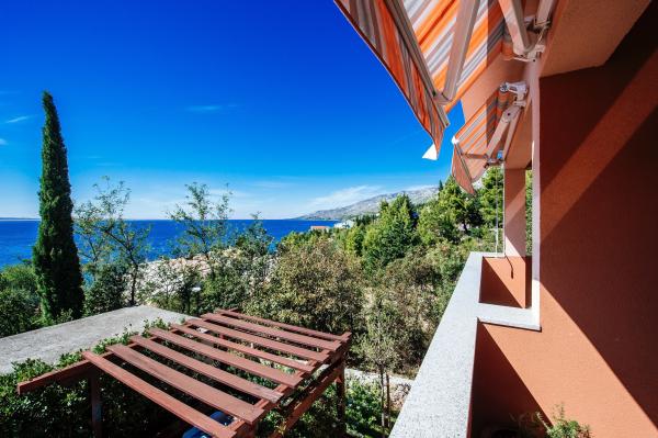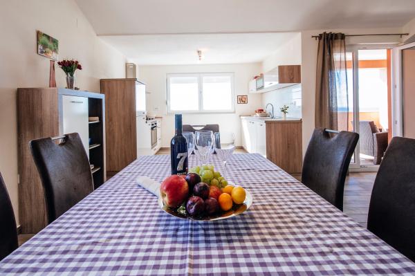 modern ingerichte appartementen met balkon, twee slaapkamers en woonkamer met keuken, uitzicht op zee in een rustig deel van Starigrad. 60 m van zee en 1,5 km van het Nationaal Park. Afstand tot het centrum 500 m. Parkeren mogelijk op het erf.