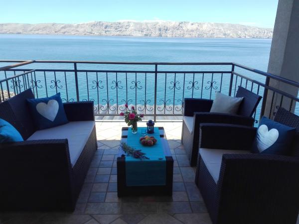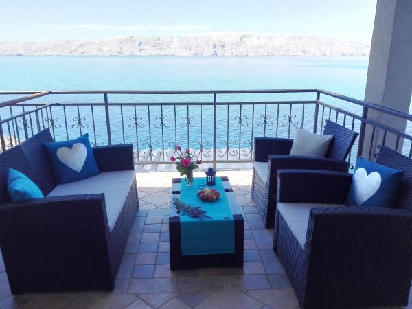 Zeer aardige eigenaren, schoon en gezellig appartement met een ruim balkon met uitzicht op zee. Het appartement heeft een perfecte buitenkeuken met een plek om koel te zitten en een heerlijke relaxte schommel. Het pad naar het strand onder het appartement is deels via een trap, deels via een stenen pad. We hadden bijna een privéstrand. Het water is op deze plaatsen koeler, maar helder. Er zijn andere, warmere stranden op loopafstand, of slechts een klein eindje rijden/zwemmen van de kust :-) Er is geen winkel in de plaats, maar een bestelwagen met gebak arriveert om de dag, twee keer per week FamilyFrost. Grotere winkels ca. 20 km SvetiJuraj of Senj. Een totaal ontspannende vakantie voor ons!