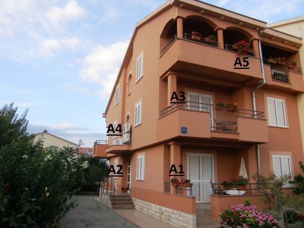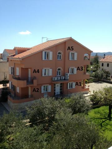 Volledig ingerichte en uitgeruste appartementen in een rustig deel van Sukosan, 90 m boven het strand en 300 m van het centrum. Het huis bestaat uit 5 appartementen A1 (3 + 1, 45m2); A2 (3 + 1, 45m2); A3 (3 + 1, 45m2); A4 (3 + 1, 45m2) en A5 (4 + 2, 75m2) met balkons, eigen omheinde parkeerplaats en barbecue op het erf bestemd voor appartementsgebruikers. Elk appartement beschikt over airconditioning, LED SATTV, koelkast met vriesvak, gratis Wi-Fi internet, magnetron, waterkoker, koffiezetapparaat, föhn, etc.,,,,,