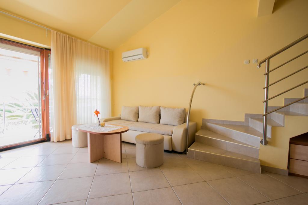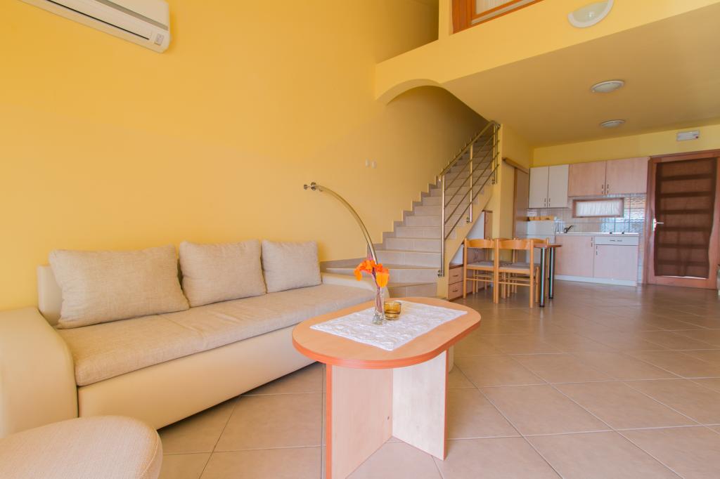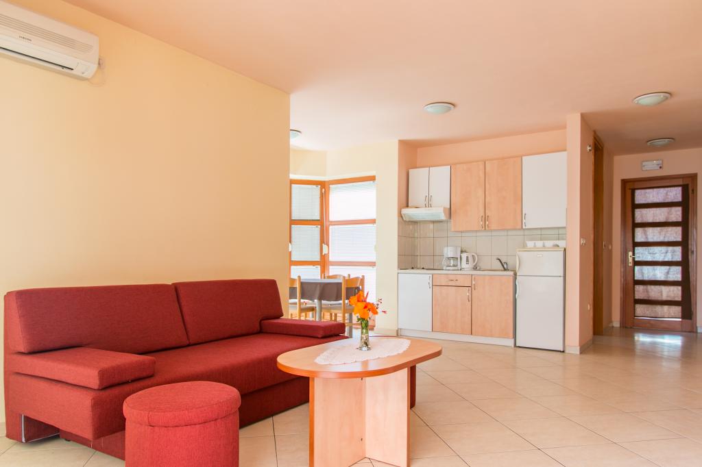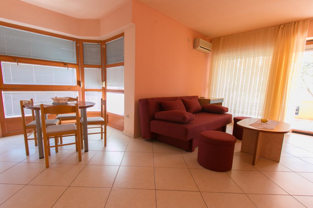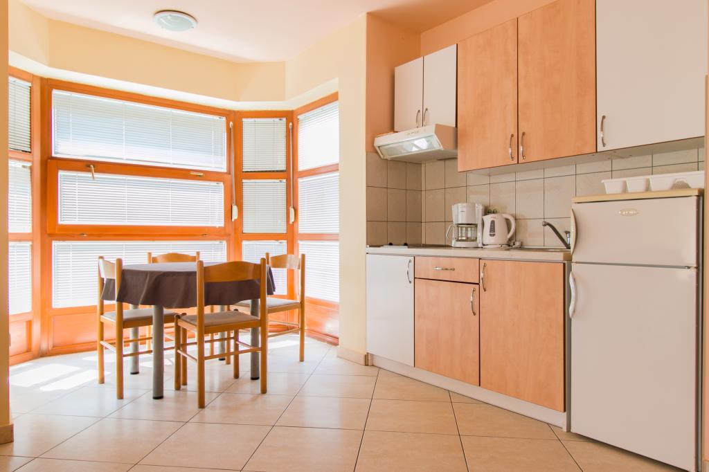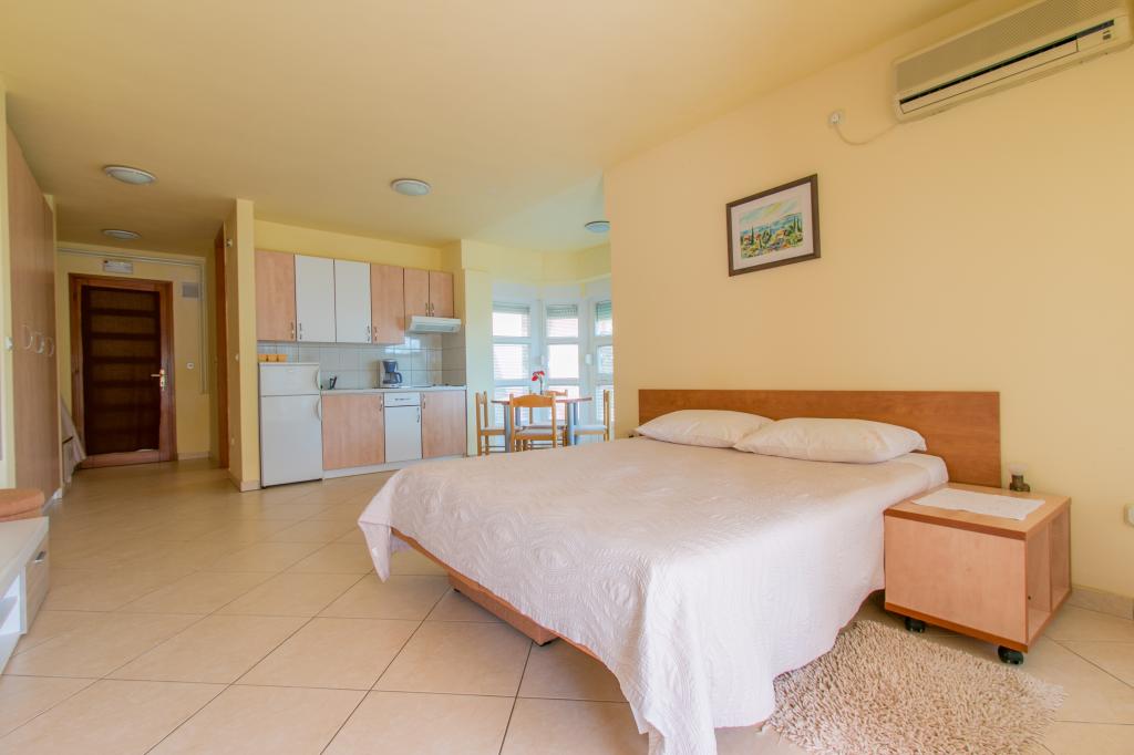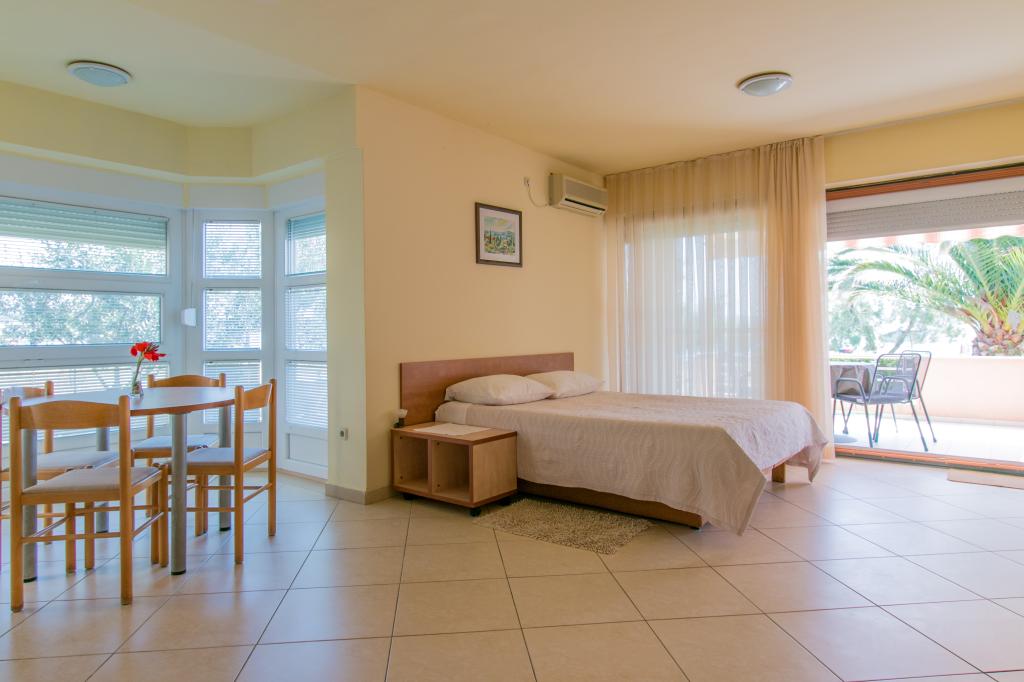 Appartementen Matas liggen op slechts een paar meter van het strand! Het privéstrand is rustig, goed onderhouden en bestaat uit kiezels. Het zandstrand ligt op ongeveer 500 meter afstand. Alle appartementen hebben een slaapkamer (studio-appartementen hebben alleen een woonkamer), een woonkamer, een badkamer, een keuken, een terras of balkon en zijn geschikt voor maximaal 4 personen. Alle appartementen hebben een oppervlakte van 64 m2, twee kamers (slaapkamer en woonkamer/slaapkamer), behalve appartement A2 (32 m2, maximaal 2 personen - slaapkamer/woonkamer). Ze zijn uitgerust met airconditioning, satelliet-tv, wifi en een koffiezetapparaat. Er is ook een wasruimte met een wasmachine in het gebouw. In de tuin bij het strand vindt u een buitendouche en een barbecue. De appartementen zijn volledig uitgerust met bestek, borden, beddengoed en handdoeken, dus u hoeft niets mee te nemen.