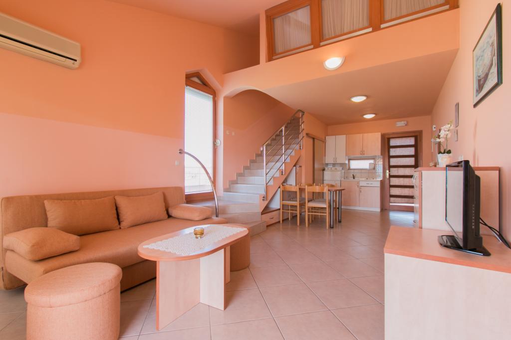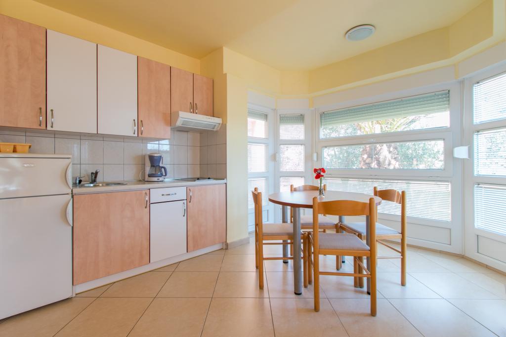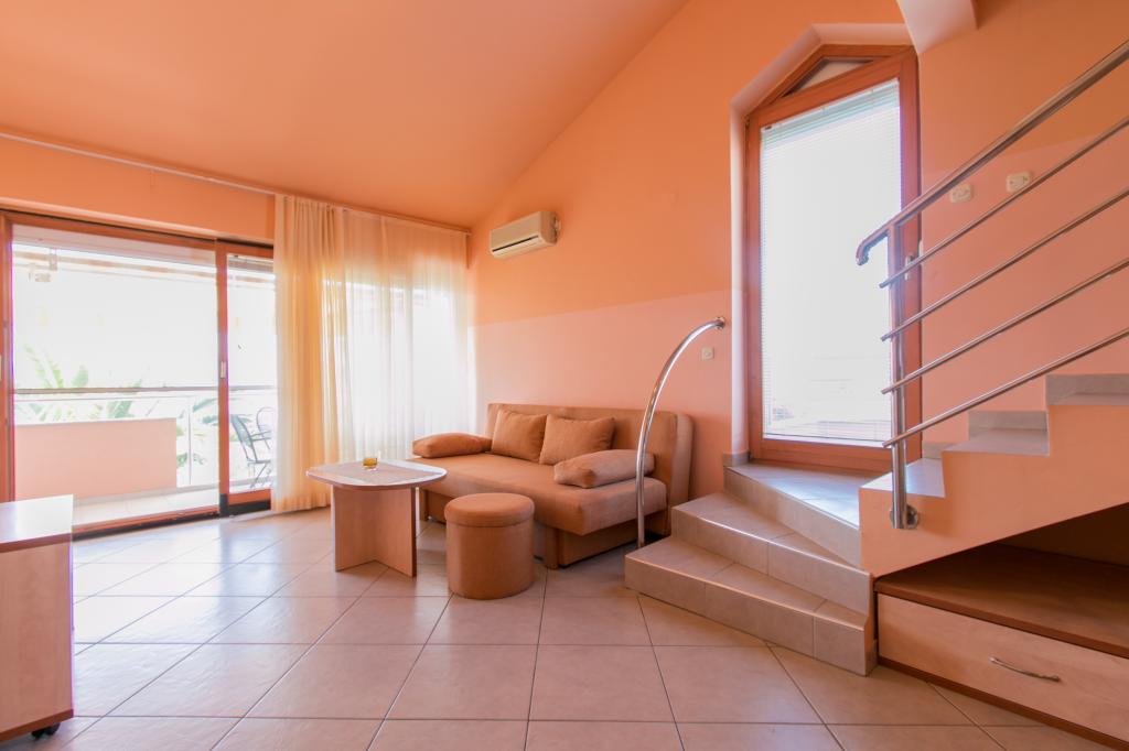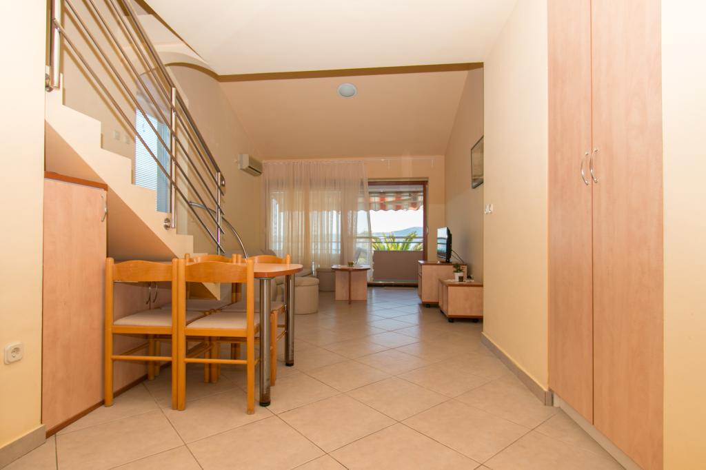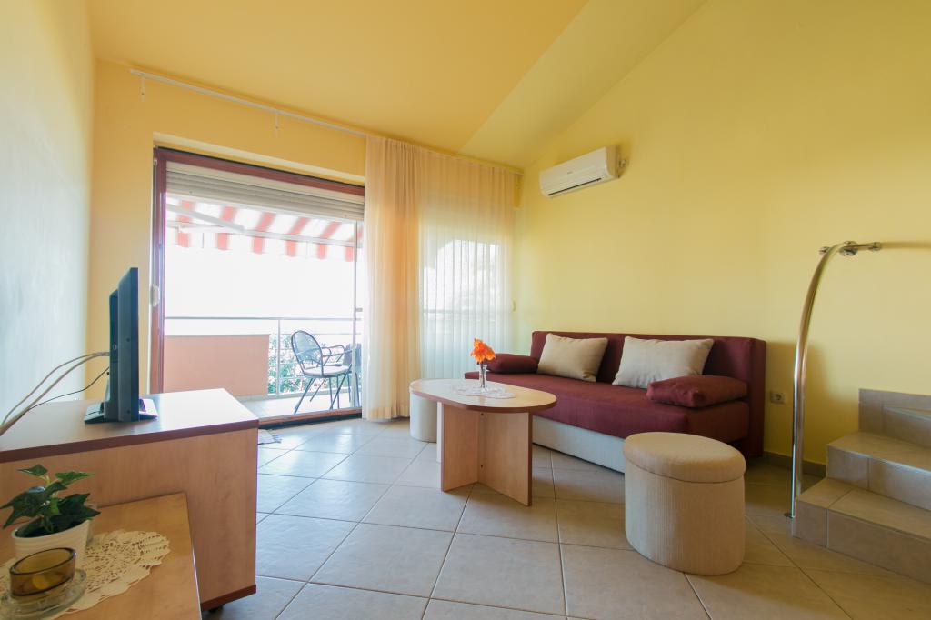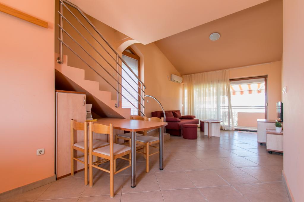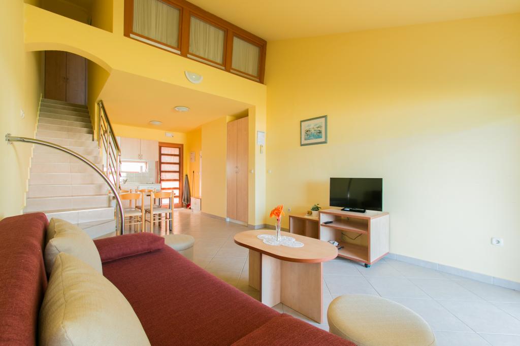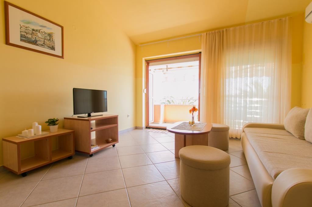 Appartementen Matas liggen op slechts een paar meter van het strand! Het privéstrand is rustig, goed onderhouden en bestaat uit kiezels. Het zandstrand ligt op ongeveer 500 meter afstand. Alle appartementen hebben een slaapkamer (studio-appartementen hebben alleen een woonkamer), een woonkamer, een badkamer, een keuken, een terras of balkon en zijn geschikt voor maximaal 4 personen. Alle appartementen hebben een oppervlakte van 64 m2, twee kamers (slaapkamer en woonkamer/slaapkamer), behalve appartement A2 (32 m2, maximaal 2 personen - slaapkamer/woonkamer). Ze zijn uitgerust met airconditioning, satelliet-tv, wifi en een koffiezetapparaat. Er is ook een wasruimte met een wasmachine in het gebouw. In de tuin bij het strand vindt u een buitendouche en een barbecue. De appartementen zijn volledig uitgerust met bestek, borden, beddengoed en handdoeken, dus u hoeft niets mee te nemen.