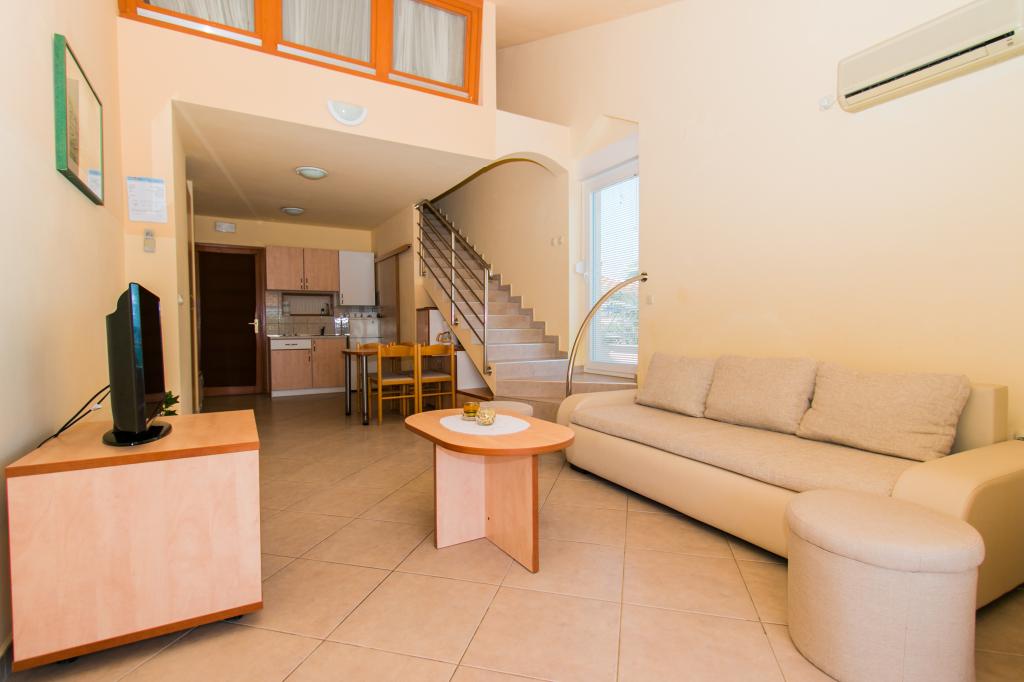 Appartementen Matas A1 en A3 (voor 4 personen) en A2 (voor 2 personen) bevinden zich op de begane grond. Appartementen Matas B1, B2, B3, B4, B5 (voor 4 personen) bevinden zich op de eerste verdieping en zijn duplexwoningen. Een ruime woonkamer met open keuken en eethoek, en grote deuren naar het terras bieden de perfecte plek om te ontspannen. In de appartementen vindt u alles wat u nodig heeft voor uw vakantie. De appartementen zijn volledig voorzien van airconditioning en uitgerust met satelliet-tv, draadloos internet, fornuis, koelkast en servies. De appartementen bestaan uit een slaapkamer (2 personen), woonkamer (bank voor 2 personen), keuken, badkamer en een ruim terras met een prachtig uitzicht op de archipel van Zadar. Appartement A2 is een studio voor 2 personen. Indien nodig hebben we ook een kinderbedje voor kinderen tot 2 jaar.