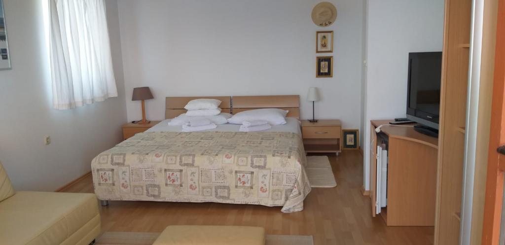Fantastische plek om een vakantie door te brengen voor het hele gezin. We verbleven in appartement A9 op de tweede verdieping. Mooi ruim appartement, compleet met balkon en zeezicht. Grote tuin, parkeerplaats, buitendouche, trappen naar het strand. We waren hier voor de eerste keer, maar hopelijk niet de laatste keer. Zeer aardige eigenaar. We raden het vooral aan aan degenen die graag zo dicht mogelijk bij het strand zijn. Nabijgelegen restaurants, bakker, kraam met verse groenten en fruit. Een zeer geslaagde vakantie, het beste appartement dat we ooit in Kroatië hebben gehuurd. Beste wensen aan de eigenaar.