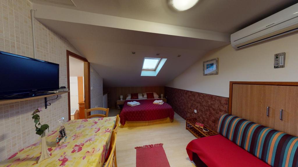 HOTEL APPARTEMENTEN CASA DEL SOL SUKOŠAN, een nieuwe faciliteit, en werkt als een Bed & Breakfast, gecomponeerd door appartementen en kamers en een restaurant Tavern, gelegen in de kelder van het gebouw. Dit is een authentieke taverne sfeer ontspannen en intieme sfeer, we serveren ontbijt en diner aan de orders. Op de vierde verdieping is een dakterras, dat een prachtig uitzicht op de zee en de eilanden, evenals het uitzicht op de jachthaven Dalmacija heeft.