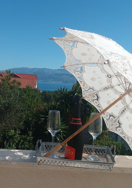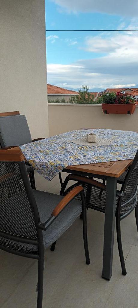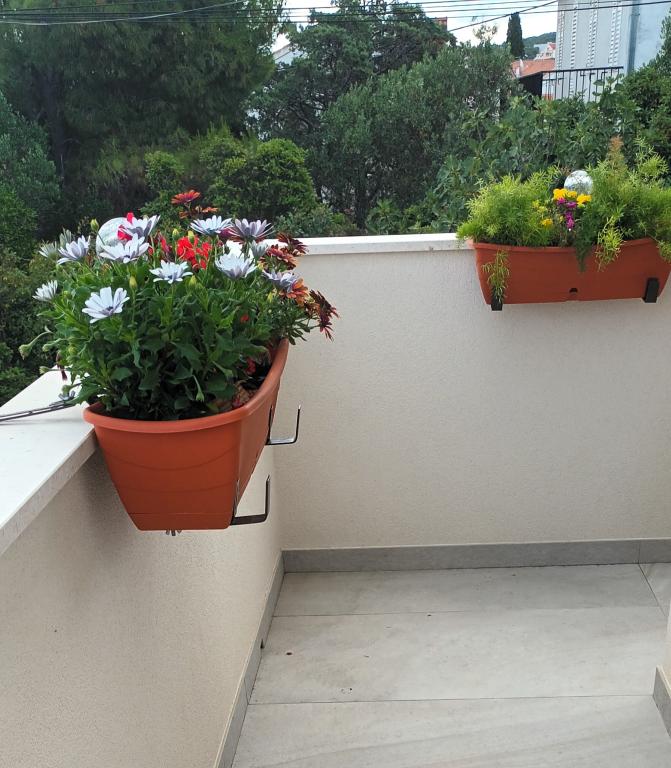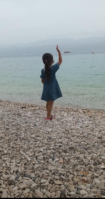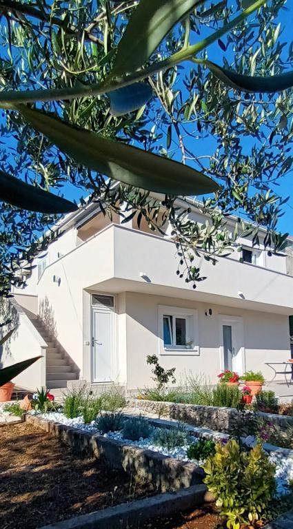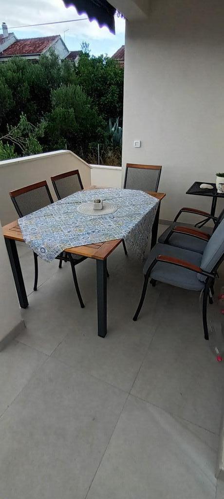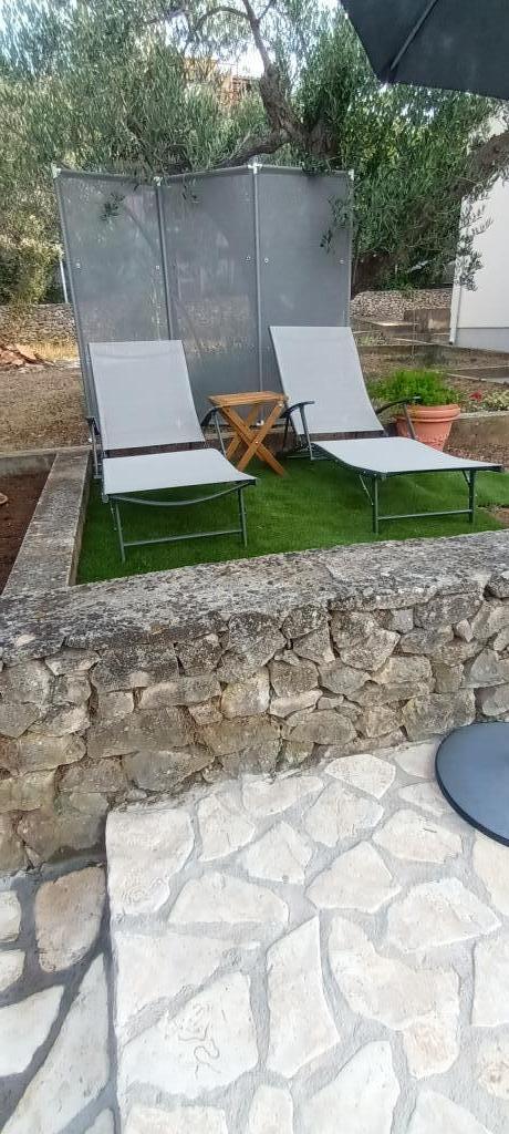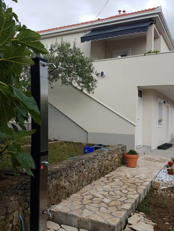 Op de eerste verdieping van het huis staat een volledig uitgerust, onlangs gerenoveerd appartement te huur met uitzicht op zee. De hele verdieping voor jou. Er is slechts één ander studio-appartement op de begane grond, dat af en toe alleen door de eigenaren wordt gebruikt. Het appartement ligt in een rustige omgeving, op 300 m van de zee - strand. Alles is binnen 3 tot 10 minuten lopen bereikbaar (supermarkt, bank, postkantoor, restaurants, cafés en uitgaansgelegenheden). Het appartement is geschikt voor 5 personen; Alle kamers zijn voorzien van airconditioning, evenals de woon- en eetkamer met een volledig uitgeruste keuken (vaatwasser, grote koelkast, magnetron, koffiezetapparaat, waterkoker, enz.). TV met gratis internet; Grote badkamer met toilet met inloopdouche, bidet en wasmachine. Balkon en terras met uitzicht op zee, voorzien van een eettafel. Binnenplaats met ligstoelen, buitendouche op zonne-energie, barbecue en gratis afsluitbare parkeerplaats. Dit is de juiste plek om te ontspannen, uit te rusten en te genieten van de mediterrane sfeer met de geuren van lavendel, rozemarijn, salie, laurier en vijgen rechtstreeks van de boom.
