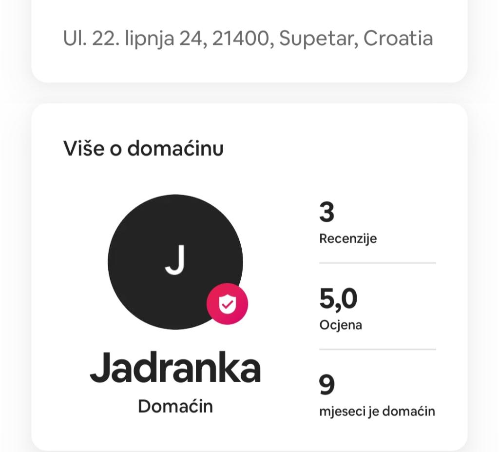 We verbleven in een zeer mooi en modern ingericht appartement, waar werkelijk alles tot in de puntjes verzorgd was. De ruimte is schoon, comfortabel en functioneel, en het meubilair en de apparatuur zijn nieuwer en zorgvuldig geselecteerd, wat een huiselijk gevoel geeft. De eigenaren zijn buitengewoon vriendelijk, toegankelijk en behulpzaam, dus we voelden ons zeer welkom. We hebben geen opmerkingen - alleen maar lof. Alles verliep soepel, van de communicatie tot de accommodatie zelf. We komen graag terug en bevelen het appartement aan iedereen aan die een aangename vakantie in een geweldige omgeving wil.