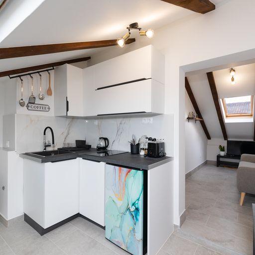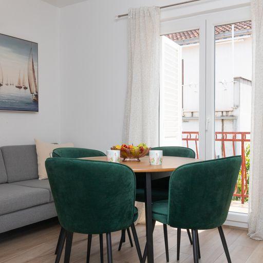 Villa Familia is een familievilla met 3 volledig en modern ingerichte appartementen. De villa is gelegen in een rustig deel van de stad. Het ligt in de directe omgeving van het stadscentrum, winkels, kinderspeelplaats, resort, taverne en bakkerij. Het strand en de zee, die een uitstekende keuze zijn voor gezinnen met kinderen, liggen op 3 minuten lopen.Ook is het mogelijk om gebruik te maken van de buitengrill en tuinmeubelen (tuinhokje, ligstoelen). Voor elk appartement is parkeergelegenheid voorzien. De gepubliceerde foto's tonen de werkelijke staat en als u aanvullende informatie nodig heeft, neem dan gerust contact met ons op.