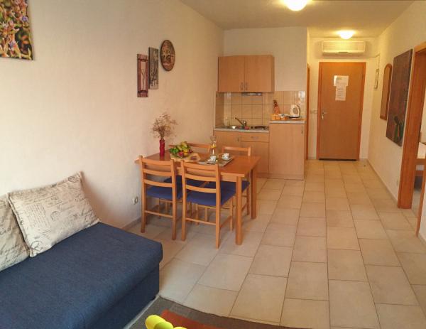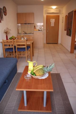 Lees meer Accommodatie eenhedenVooruitbetaling voor boeking van een appartement is 20%. De prijs is inclusief: elektriciteit en water, handdoeken in de badkamer, toiletpapier en handdoeken zeep, beddengoed, wekelijkse verandering van beddengoed, schoonmaak van het appartement op de dag van vertrek, gebruik van het klimaat. Internetgebruik is mogelijk via de web-n wandelstok en is niet inbegrepen in de prijs van het appartement. De keuken is volledig uitgerust met potten, kookpotten, bestek, vaten, borden, kleding, waterkoker, koelkast, vriezer, kachel ... Appartement kan worden genomen vanaf 12 uur. Op de dag van vertrek dient het appartement om 10 uur te worden verlaten.