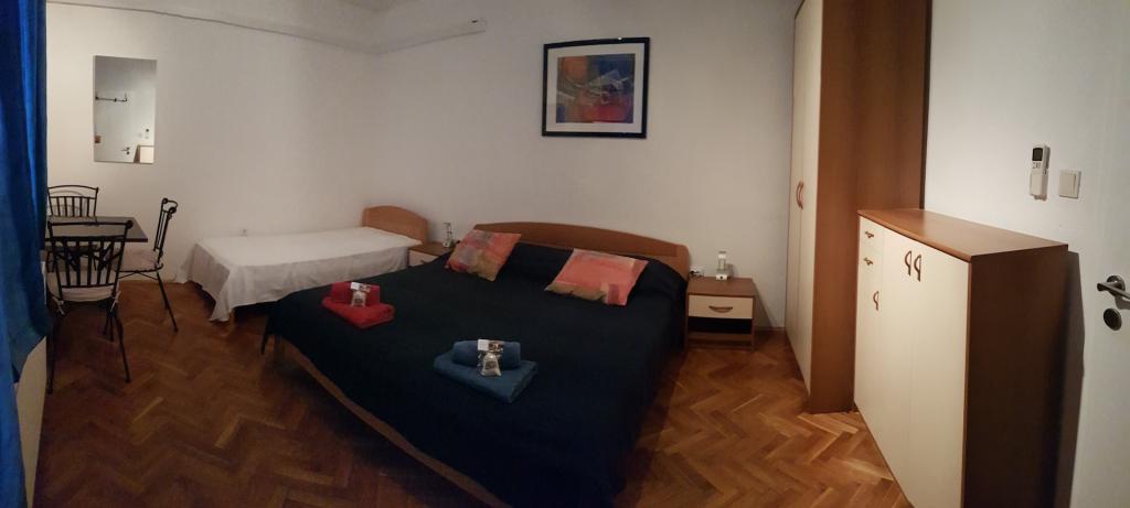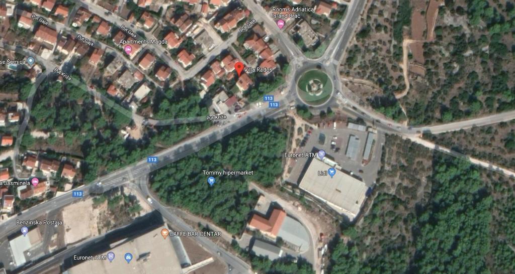VILLA RADOŠ, 4 sterren, is gelegen in het oostelijke deel van Supetar tegenover de groene gordel. Het is slechts een paar minuten lopen van het centrum en het strand. Het heeft in totaal 4 appartementen: 2 verdiepingen tellende 4-kamer appartementen voor max. 6-8 personen, 1 tweepersoonskamer voor max. 2-4 personen en 1 studio voor max. 2 personen. Al onze appartementen hebben grote, volledig en modern uitgeruste kamers en maken zo een ontspannen vakantie mogelijk. Elk maisonnette-appartement heeft 3 slaapkamers (2 driepersoons- en 1 tweepersoonskamer), het souterrain-appartement heeft 1 driepersoonskamer en een woonkamer met een bank, en de studio heeft 1 tweepersoonskamer met een bank. Elk duplex appartement heeft 2 badkamers, een moderne keuken (broodrooster, koffiezetapparaat, magnetron, vaatwasser...), een woonkamer (SAT-smart-TV, hifi, DVD, enz.), en een groot terras en balkon. , en op de begane grond een grote tuin met diverse bloemen en citrusvruchten. Kleinere appartementen hebben elk 1 badkamer en nieuwe apparatuur. Voor de hoofdingang is de parkeerplaats voor 6 auto's en aan de overkant van de straat bevinden zich de grootste supermarkten LIDL, TOMMY en KONZUM.
