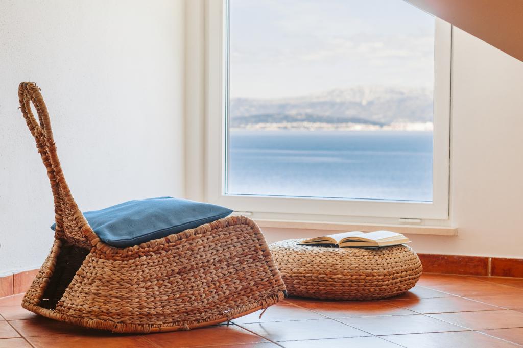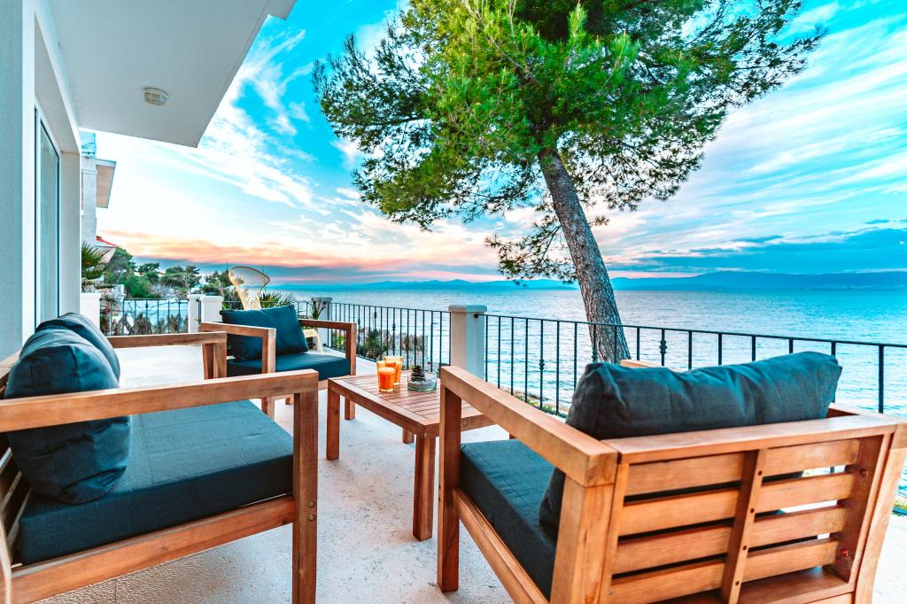 Appartement met spectaculair uitzicht op de zee, een eigen ingang en tuin. Word wakker met de geur van lavendel en rozemarijn en in slaap vallen op het terras met het geluid van de zee en het uitzicht op de glinsterende lichten van Split aan de kust.