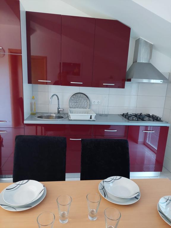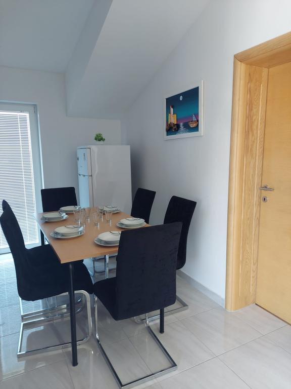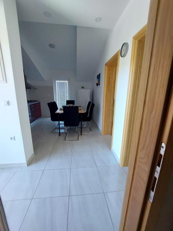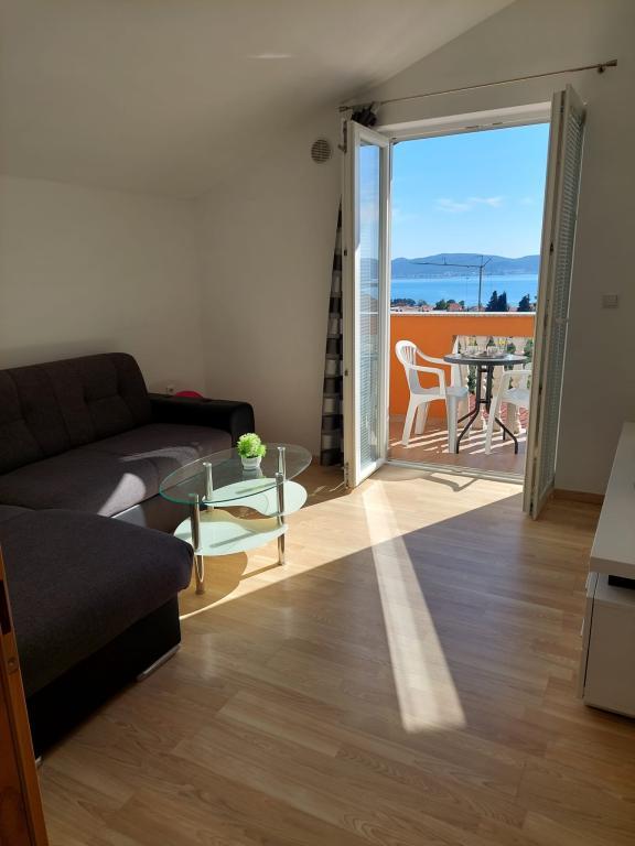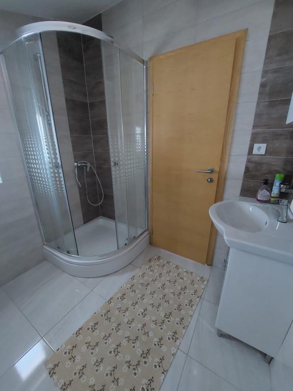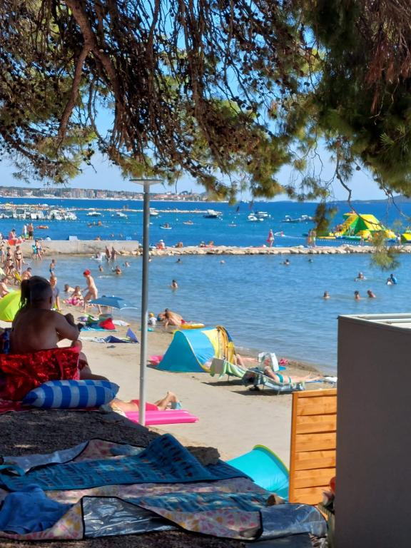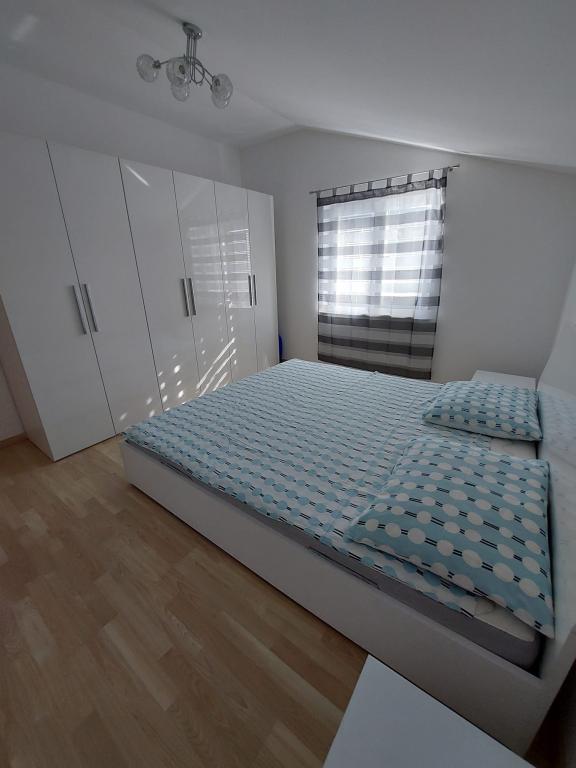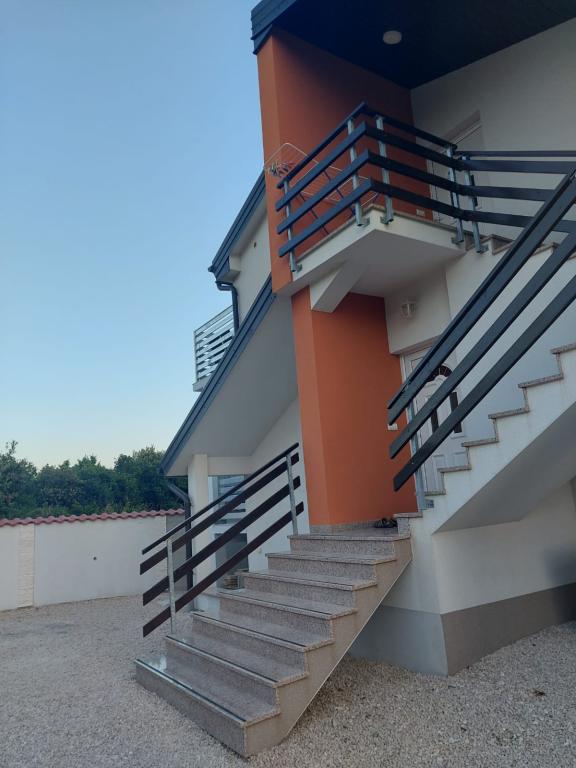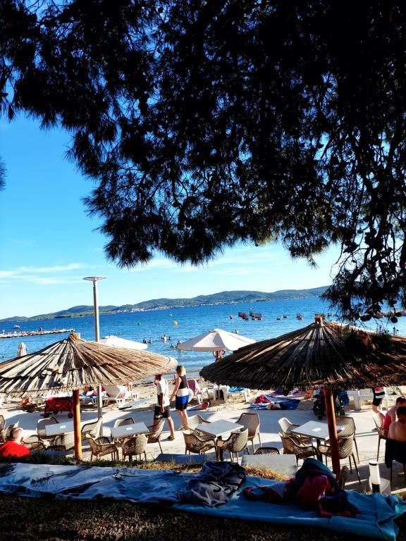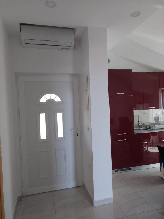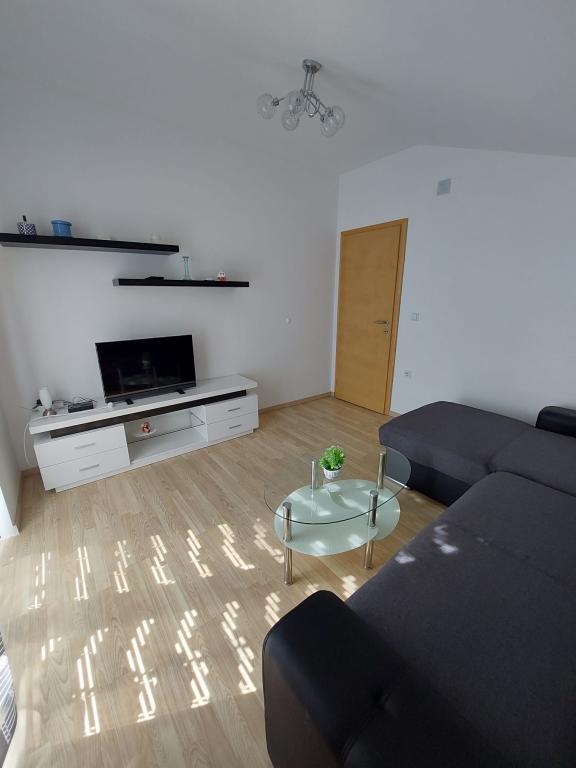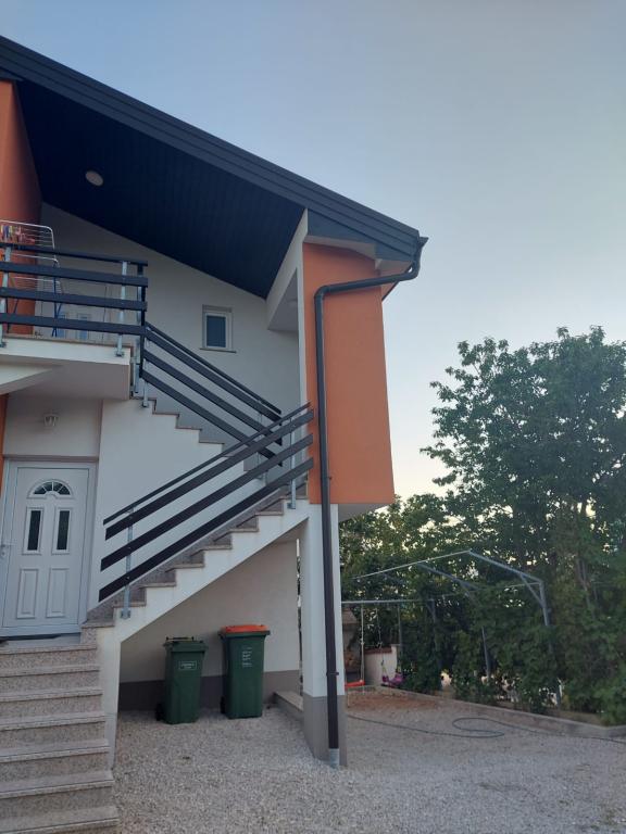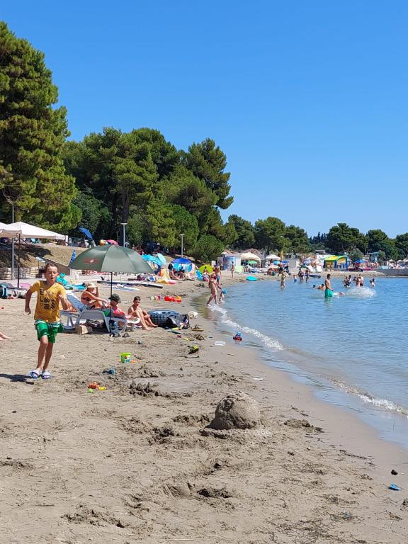 Het appartement is nieuw gebouwd, oppervlakte 45 m2, plus balkon en terras 10 m2, gelegen op de tweede verdieping, bestaat uit een keuken met eetkamer, badkamer, slaapkamer en woonkamer. Het appartement heeft een balkon met uitzicht op zee en een groot terras vanuit de keuken eveneens met uitzicht op zee. Het is ongeveer 10 minuten lopen naar het strand en voor parkeren in het centrum en op het strand kunt u handig een wekelijkse parkeerkaart krijgen. Er is privéparkeergelegenheid in de tuin, evenals het gebruik van een barbecue en een schommel voor de kinderen. Lidl, Kaufland, Plodine, Konzum, restaurants en een markt liggen op 1 km afstand.