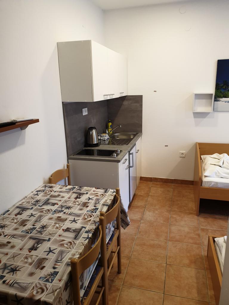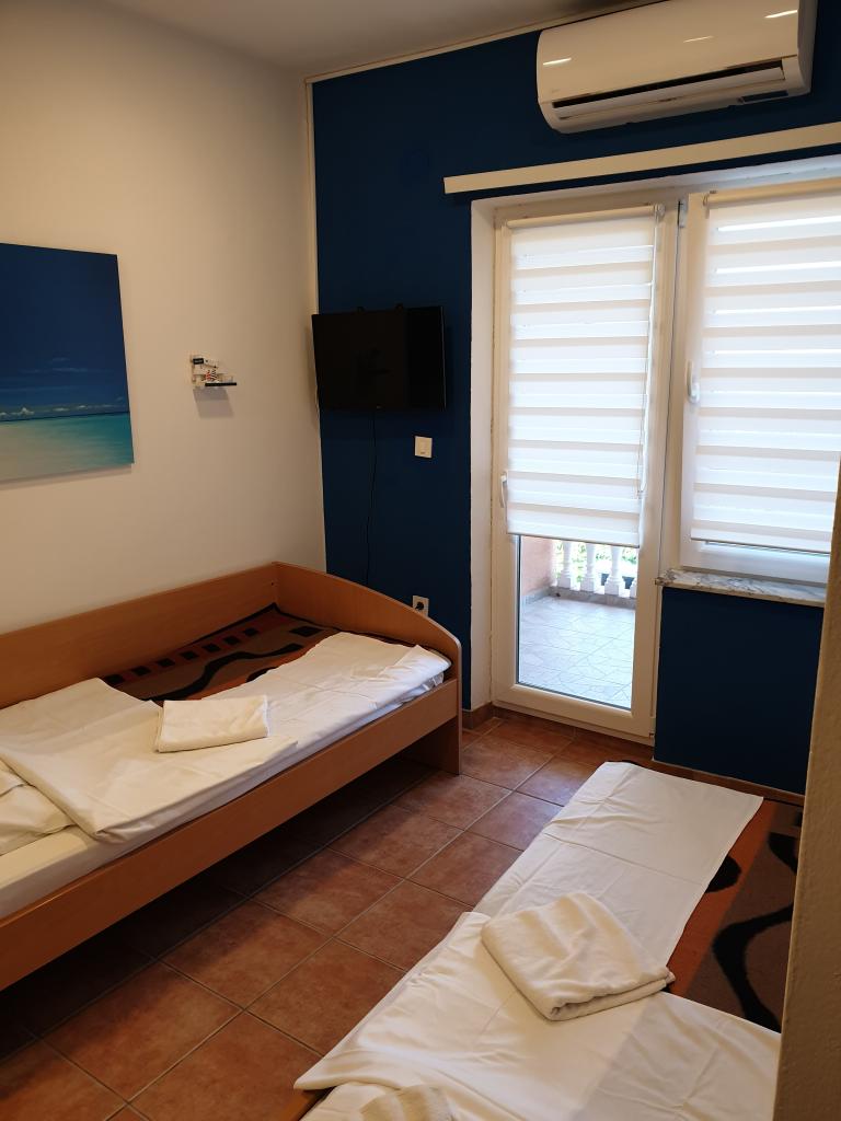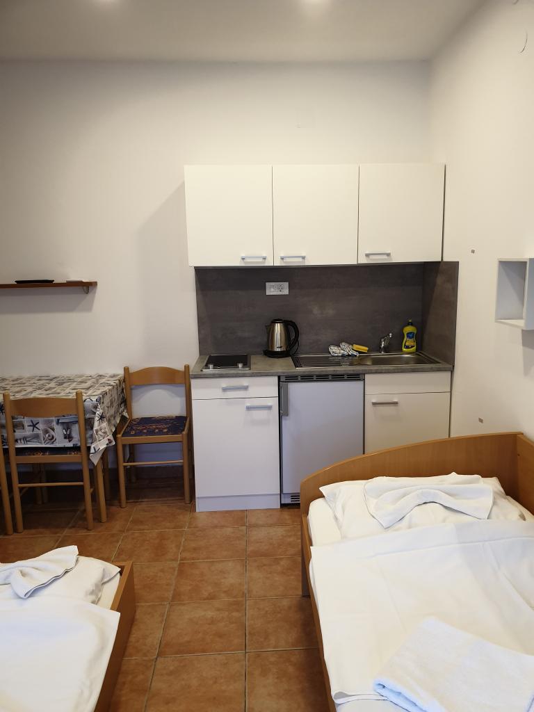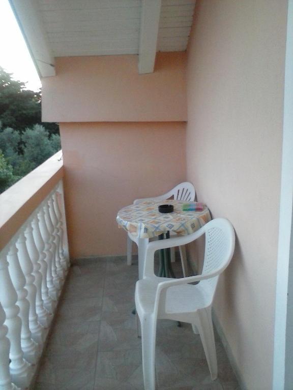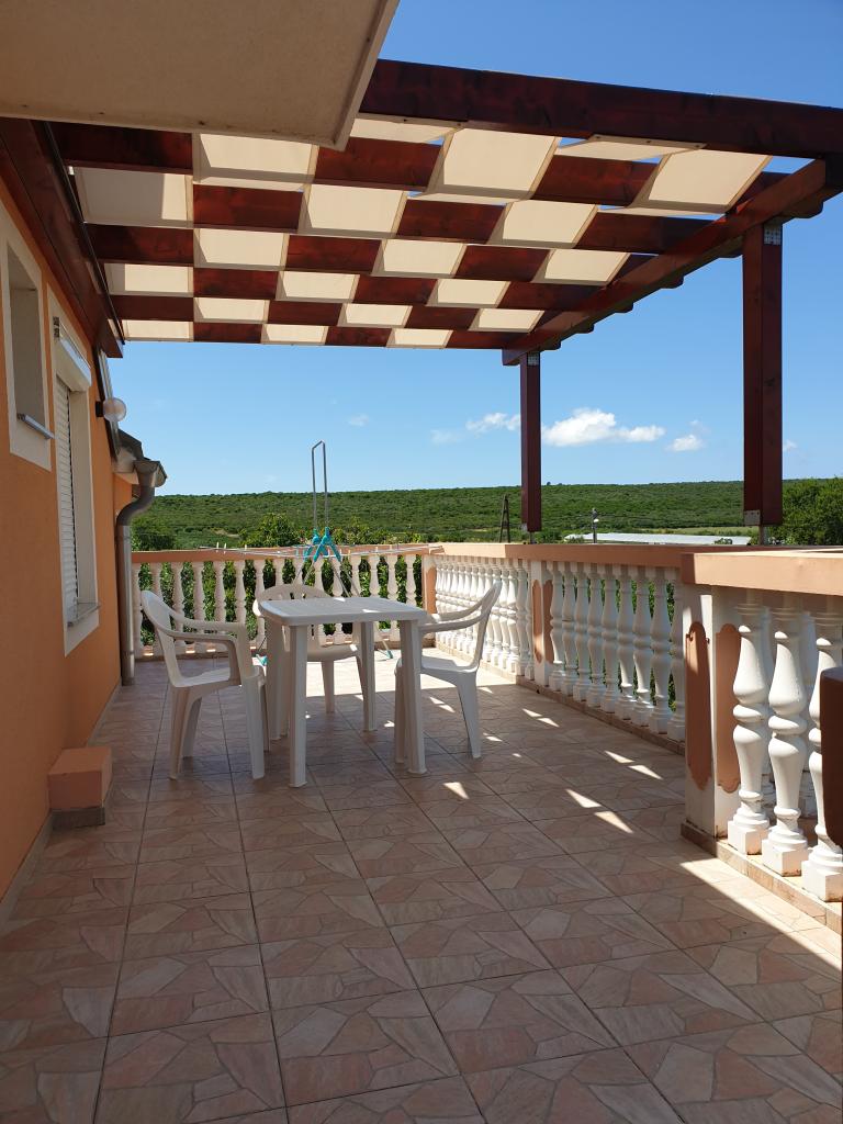 Er zijn drie parkeerplaatsen op het erf van de woning. Achter het huis is er een grill en oven voor gezamenlijk gebruik, evenals een schommel voor de kinderen. Op de eerste verdieping van het huis bevinden zich drie appartementen. Elk appartement heeft een eigen ingang en sleutel uit dezelfde inkomhal. Elk appartement heeft een keuken met twee elektrische kookplaten, badkamer met douche, tafel en stoelen om te eten, TV met satelliet en lokale programma's, en airconditioning. In appartement 1 is het tweepersoonsbed 180 cm breed en in de andere appartementen 160 cm breed. Alle appartementen hebben koelkasten met een vriesvak van maximaal 10 liter. Appartement 1 heeft een deel van het entreeterras met een pergola, die een prachtig uitzicht biedt op Ravne kotare en Velebit. In appartement 2 (studio 2+2) is het tweepersoonsbed zo geplaatst dat de kinderen uit het stapelbed het niet kunnen zien, en iedereen de tv aan de muur kan zien. Het heeft een balkon van 6 m x 1,2 m. Appartement 3 heeft een aparte kamer met nog twee bedden in de eetkamer en er is ook een loggia waar u kunt eten.