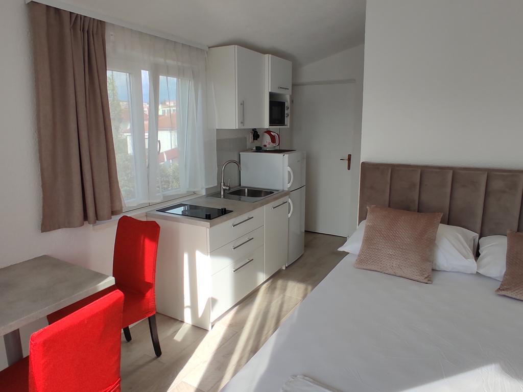 Het appartementencomplex ligt naast de zee op de grens van Turnu en Sv. Philip en James in een stil niet-verkeer. Slechts 300 meter van het centrum en 50 meter van het strand. Elk appartement heeft een balkon met uitzicht op zee, volledig uitgerust, air-conditioning, wiffi gratis. Parkeren, Grill op het gebruik. .