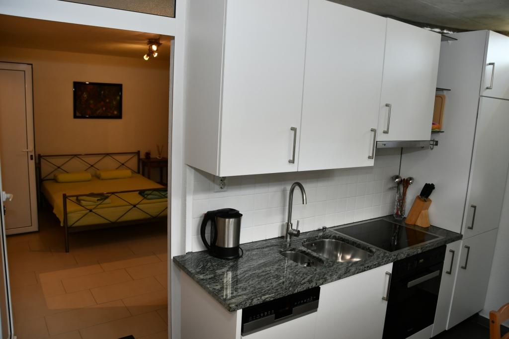 In de kelder van het huis bevindt zich het studio-appartement (appartement) dat volledig en modern is uitgerust. De keuken is uitgerust met kookgerei en bestek, servies, waterkoker, magnetron, oven, vaatwasser, koelkast, enz. Slaapkamer: beddengoed, handdoeken, tv, satellietschotel, airconditioning, internet. Alles is inbegrepen in de prijs van de overnachting, er zijn geen extra kosten.
