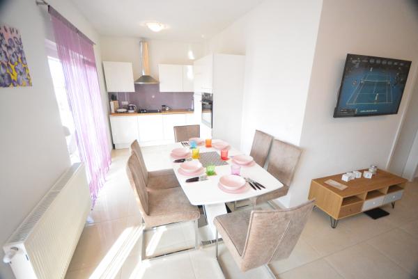 Het appartement heeft nieuw, schoon, netjes nieuw meubilair en een groot terras. Alle voorzieningen zijn voorzien van een keuken. Dicht bij het strand, rustig gelegen. Paula en haar familie zijn erg aardig. Bedankt we zullen volgend jaar terugkomen! Hutvágner familie uit Hongarije
