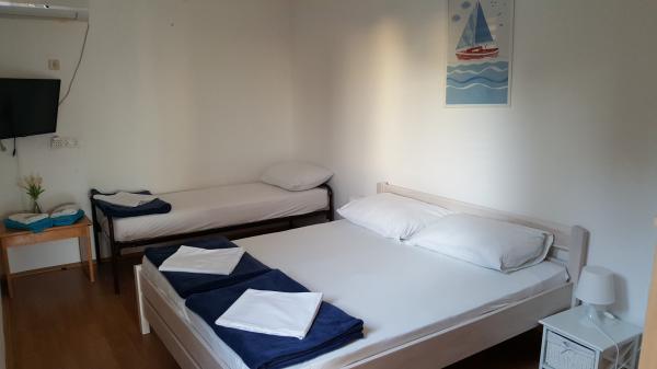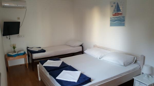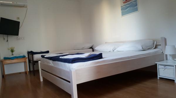 Dit was onze eerste vakantie in Kroatië. Het was lastig om op het laatste moment een accommodatie te vinden, maar het is ons hier gelukt. We waren een beetje nerveus, omdat we het zomaar hadden geboekt, maar de communicatie vanaf het begin was zo goed dat we ons meteen op ons gemak voelden. Bij aankomst werden we verwelkomd door de vriendelijke eigenaresse, die ons onze kamer liet zien en de formaliteiten afhandelde. Tijdens ons verblijf was ze constant bereikbaar via e-mail en andere kanalen, waardoor we altijd terecht konden met vragen. We konden gemakkelijk in het Engels communiceren en als iemand een taal niet begreep, konden we e-mail/een vertaler gebruiken. Het appartement zelf was prima voor de prijs. De kamer was niet de nieuwste, maar de bedden waren comfortabel, alles was redelijk schoon, er waren handdoeken aanwezig en een kleine, volledig uitgeruste keuken – alles wat je nodig hebt. Het was warm bij aankomst, maar nadat het later afkoelde, werkte de airconditioning prima. We gebruikten hem soms als we naar buiten gingen en terugkwamen in een koel appartement. Airconditioning gebruiken met kinderen kan ze gemakkelijk ziek maken en dat wilden we, zoals altijd, vermijden. De eigenaren hebben ons hier niet op gewezen, hoewel de regels het gebruik van het zwembad na vertrek verboden. Ik denk echter dat ze een compromis hebben gesloten en het ons niet kwalijk nemen, net zoals wij probeerden ons aan het compromis te houden door het zwembad te gebruiken. Alle ongemakken worden ruimschoots gecompenseerd door het uitzicht op zee vanaf de bovenste verdieping en het terras, waar mijn vrouw en ik 's avonds genoten van het sfeervolle geluid van cicaden – een heerlijke ervaring :) De omgeving is mooi, wel een beetje steil naar het appartement, maar dat vonden wij geen probleem, de kinderen soms wat wel. Het strand is op ongeveer 10-12 minuten lopen in een rustig tempo. Alles is in de buurt te vinden: een rustig strand, zowel zandig als rotsachtig, helder water, heerlijk ijs, een ruime keuze aan restaurants, zowel goedkoop als duur, een boulevard voor avondwandelingen, geen grote drukte, boottochten naar de Kornati-eilanden en goede lokale producten die door de eigenaren worden aanbevolen. 's Avonds was het er heerlijk rustig en vredig, en als je tijdens ons verblijf de stad in wilde, was er een oogstfeest, een concert of een vuurwerkshow, dus we hebben echt van alles meegemaakt ;) Aan het begin van ons verblijf werden de kinderen hartelijk verwel