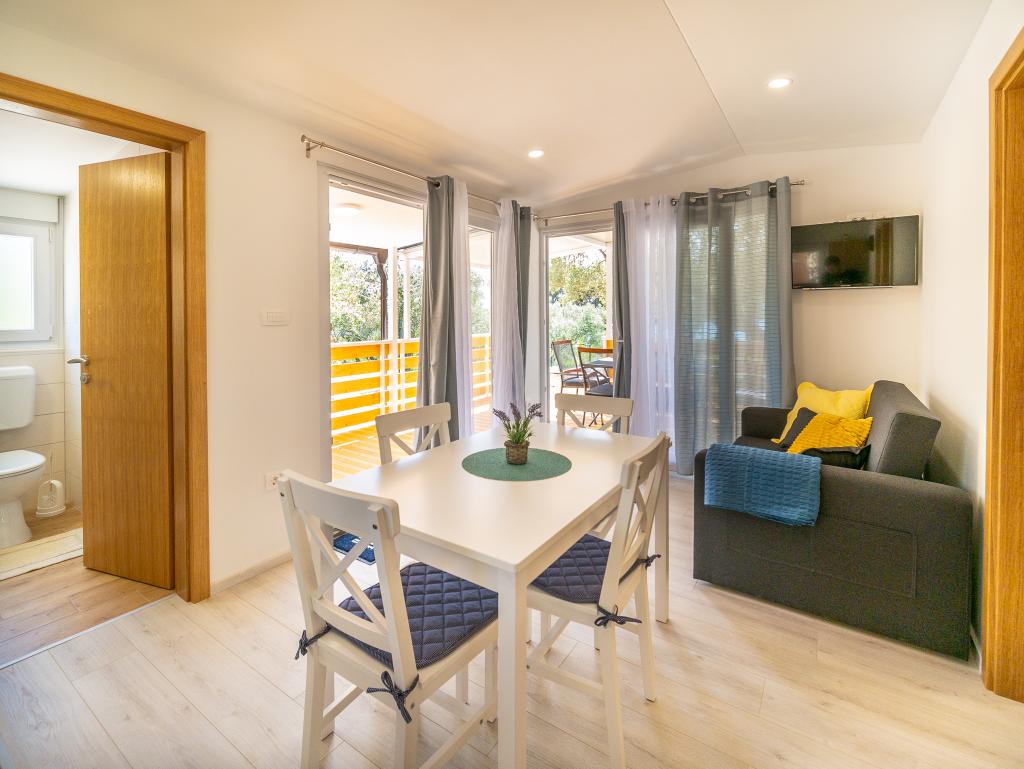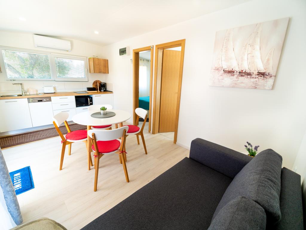 Nieuwbouw appartement in een mooie en rustige wijk in Sv. Filip en Jakov eerste rij naar de zee, zandstranden op ongeveer 50 meter afstand, en hetzelfde weefsel heeft kiezelstranden. Het appartement is geschakeld aan de gezinswoning, het gebouw heeft een eigen tuin en parkeerplaats. Het stadscentrum ligt op 5 minuten loopafstand, evenals de nodige voorzieningen zoals een winkel, postkantoor, sportveld en een dokter. Nieuw in 2019 zijn 3 geprefabriceerde huizen op een rij voor 4 personen, 40 m2 met terras, zeer uitgeruste faciliteiten, airconditioning, 2 slaapkamers met bed 160x200, woonkamer, keuken, badkamer, tv, satelliet, W-fi en beschermend gaas op de ramen (klamboe). Aparte privacy van elk gebouw met barbecue en parkeerplaats. De woning heeft een extra toilet met douche. Tegen een toeslag kunt u gebruikmaken van een wasmachine en droger. In geval van schade is bij aankomst een borg van EUR 100 vereist, die bij vertrek wordt terugbetaald.