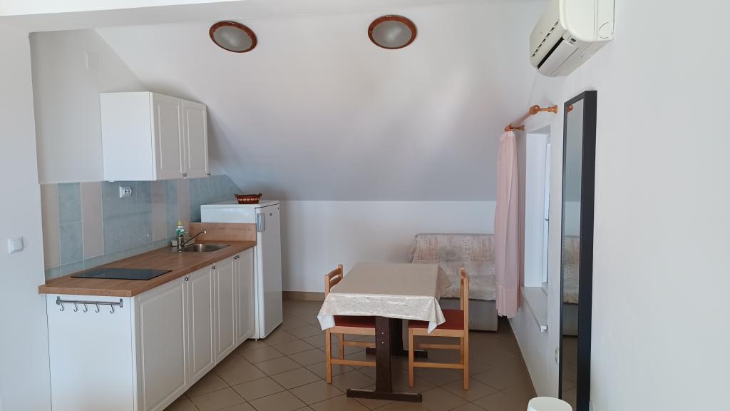 Eengezinswoning, op twee minuten lopen van de zee. Een zeer mooie en rustige toeristische bestemming. Het zolderappartement (S2+1) bestaat uit een grote kamer met een tweepersoonsbed, een slaapbank en een televisie. Er is een keuken met eethoek aanwezig. Er is een grote badkamer met douche en bidet. De oppervlakte bedraagt 26m2. Het grote terras (25m2) biedt uitzicht op het eiland Pašman en Ugljan. Het studio-appartement (S2) bestaat uit één grote kamer met een kleine keuken en een badkamer. Er is een tweepersoonsbed en een televisie. Het heeft een groot terras met uitzicht op de zee en het eiland Pašman. De studio is 20m2 en het terras is 14m2. Het appartement met één slaapkamer (A2) bestaat uit een slaapkamer met een tweepersoonsbed en een televisie, een keuken met een eethoek en een grote badkamer. Het appartement heeft een kleiner terras en is aan de zijkant van het huis gelegen. Het appartement is 25m2 en het terras is 3m2. Koken gebeurt elektrisch. Beddengoed is aanwezig. Voor elke gast is er een parkeerplaats beschikbaar. De grill is voor gezamenlijk gebruik. Er zijn diverse nationale parken en natuurparken in de buurt, ideaal voor een dagtocht.