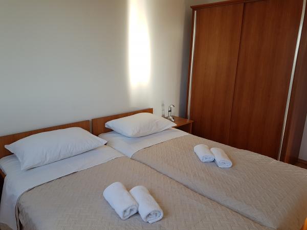 We verbleven hier aan het einde van de 6e maand! We werden begroet door een zeer schoon en netjes appartement, de accommodatie komt overeen met de foto's! Gezien de eerste rij naar zee is de prijs zeer redelijk! Het strand ligt op slechts een paar meter van het appartement, wat geweldig is als u met kinderen bent! De plaats is erg rustig en dat is precies waarom we het leuk vonden! De gastheren zijn aardig en behulpzaam en we hopen nog een paar keer te kunnen komen! We hebben een goede herinnering!