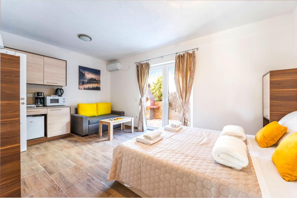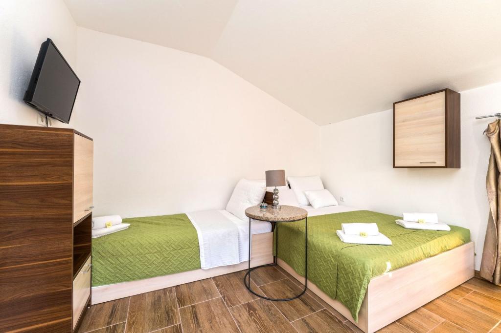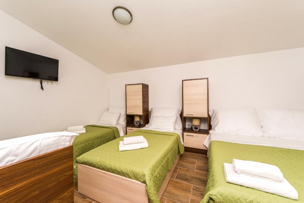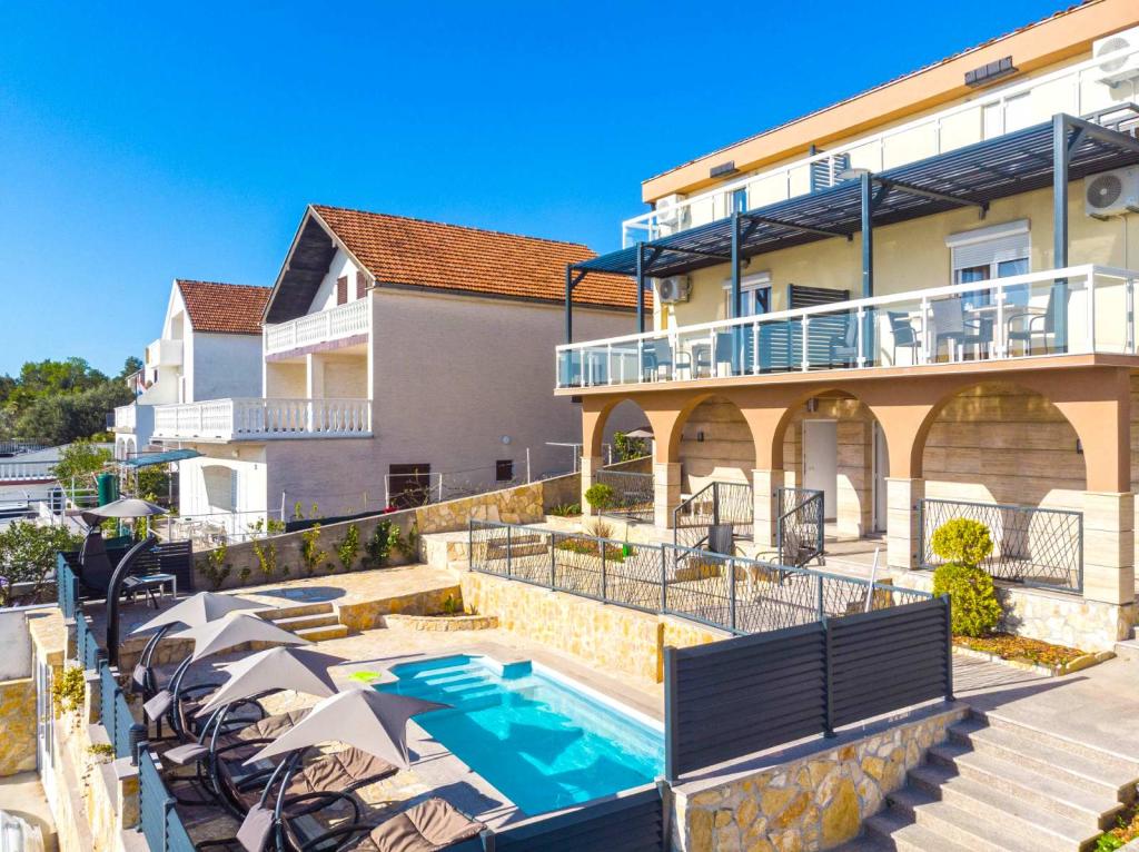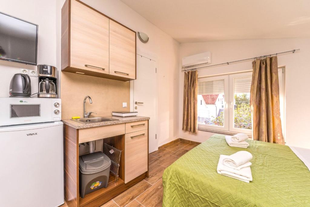 Villa Maris ligt in Sveti Petar, tussen Zadar en Biograd. Het biedt ideale omstandigheden voor een rustige en ontspannen vakantie weg van de drukte. De appartementen bevinden zich op de tweede rij naar de zee op 100 meter van het strand. De faciliteit biedt 3 appartementen en 4 studio-appartementen voor zelfstandig wonen. Alle appartementen hebben een volledig uitgeruste keuken, badkamer, slaapkamer. Gratis WI-FI, airconditioning, een eigen parkeerplaats, tuin met barbecue en zwembad geven de volledige inhoud van onze faciliteit. Als u in het centrum van entertainment wilt zijn, zijn er Fun Park Mirnovec in Biograd na Moru (11 km) en de stad Zadar (18 km) die vol staat met historische bezienswaardigheden.