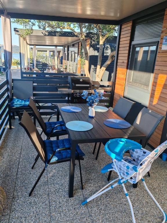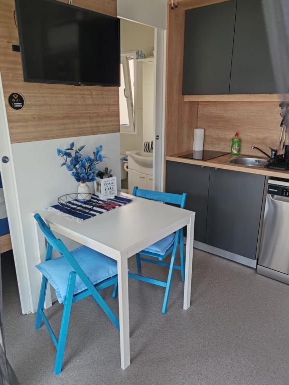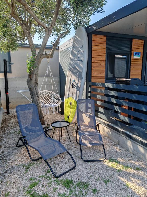 Uitstekende ligging van stacaravan EMMI aan het zand- en kiezelstrand (20 meter), ideaal voor kinderen, zelfs voor de minst dappere zwemmers. De eigenaren zijn vriendelijk en hebben hun gasten alles gegeven wat ze nodig hebben voor een vakantie (strandstoelen, parasol, sup, gasbarbecue en comfortabel meubilair op het terras van het huis, alles wat je nodig hebt). Wie geïnteresseerd is in een familievakantie zonder lawaai en stress, boekt best meteen, je maakt geen fout. Mijn familie komt terug en ik hoop volgend jaar langer dan 7 dagen te blijven.
