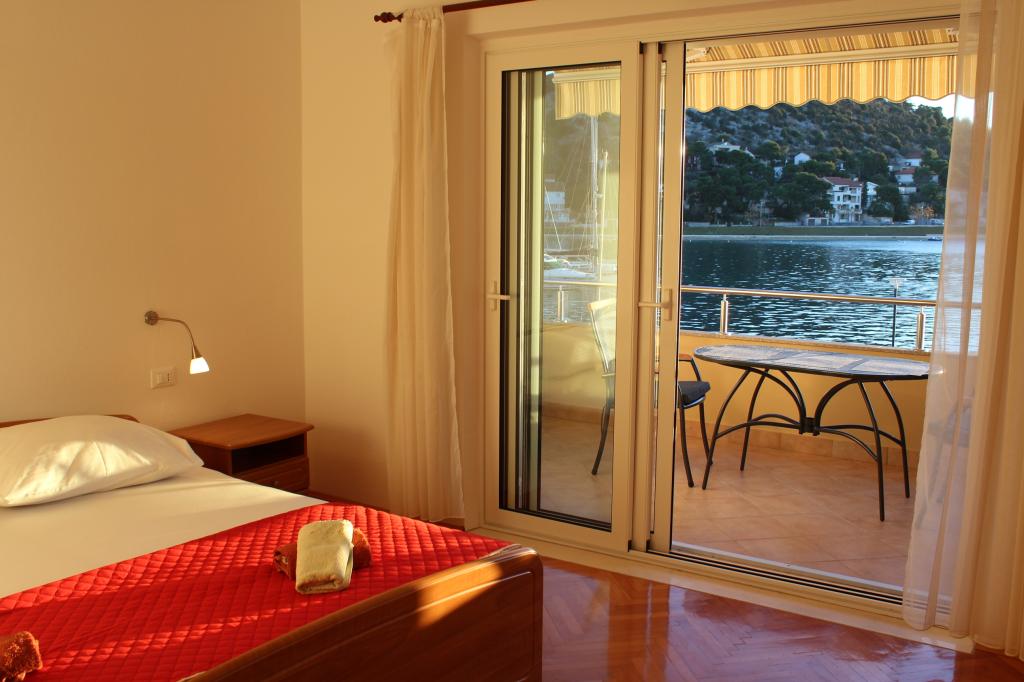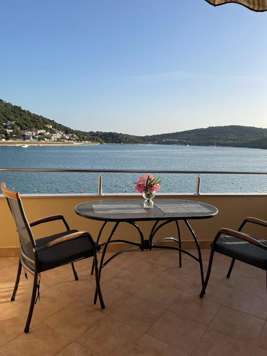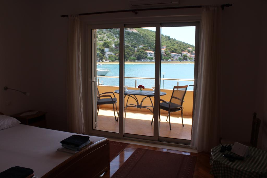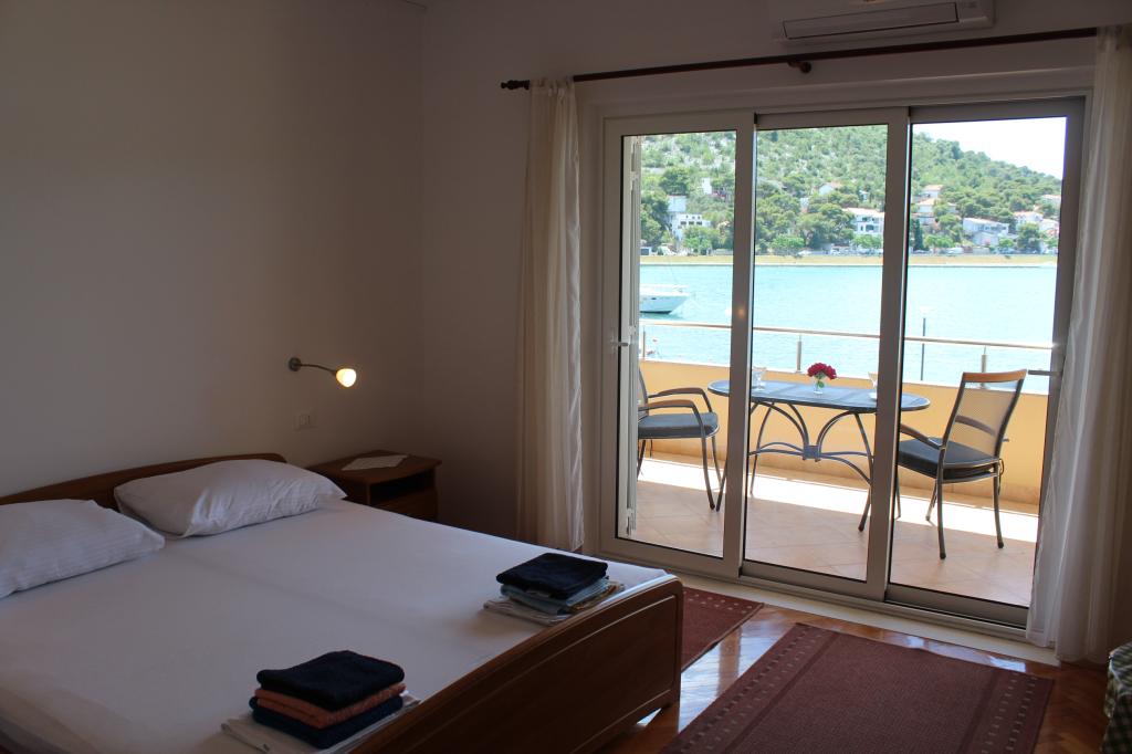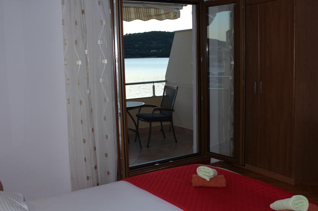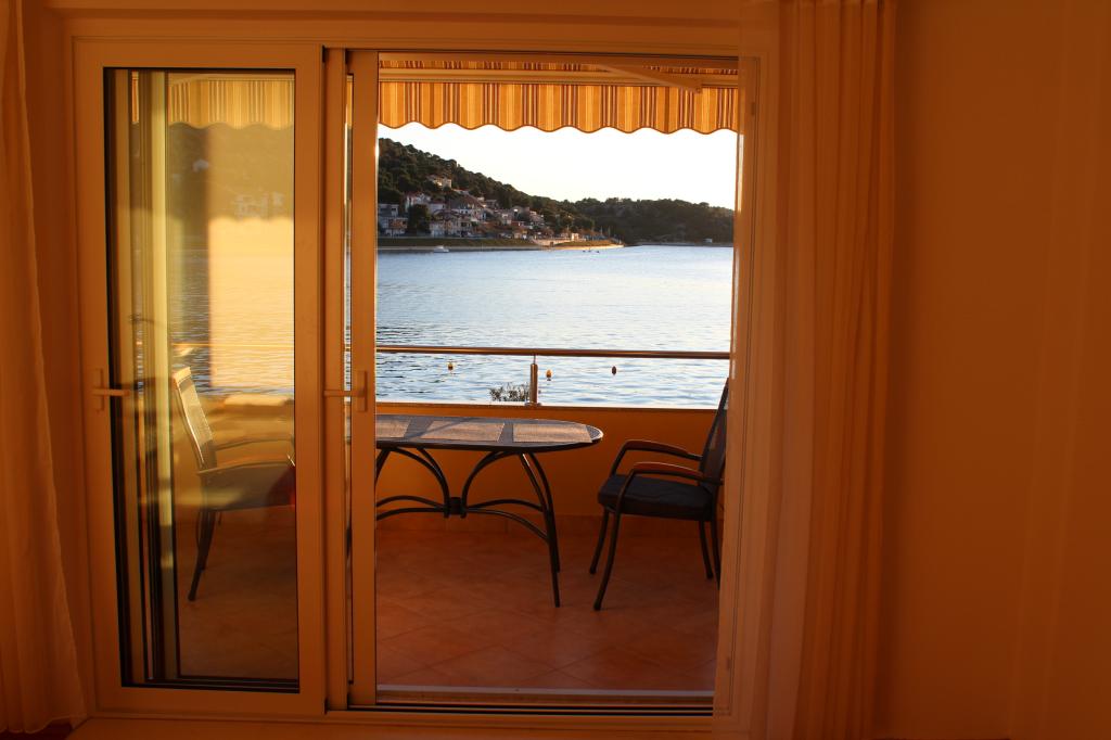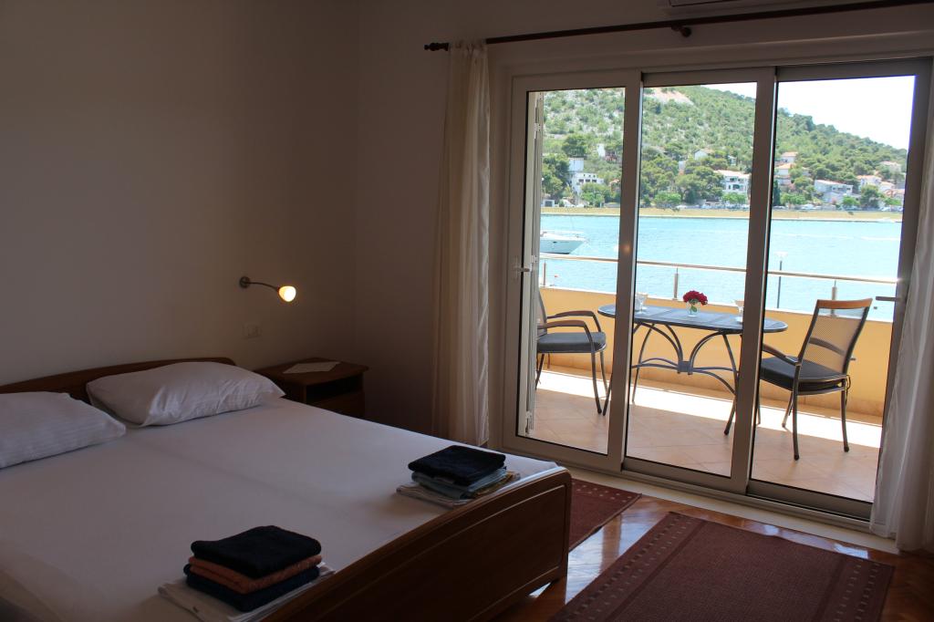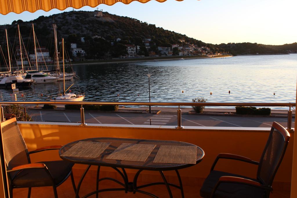 Het huis ligt vlakbij het water, mooi uitzicht op dorpje Tisno en eiland Murter. Het appartement is netjes en schoon. Met 2x ruime balkon, goede shutters voor het raam en airco. Vanaf balkon mooi uitzicht, vooral \'s avonds de zonsondergang. We hadden recht voor het appartement een ligplaats voor onze boot, dat was super! Jere is erg aardig en behulpzaam, en woont zelf ook in het gebouw. We kregen tussendoor extra schoon beddengoed en handdoeken. Bakker, supermarkt, restaurants etc allemaal op loopafstand. Er is genoeg te zien en te beleven in de omgeving. Wij vonden het geweldig hier, komen dit jaar weer terug, en dan langer!