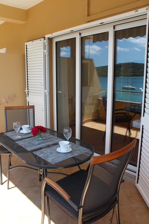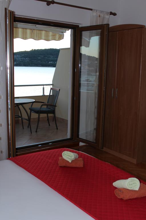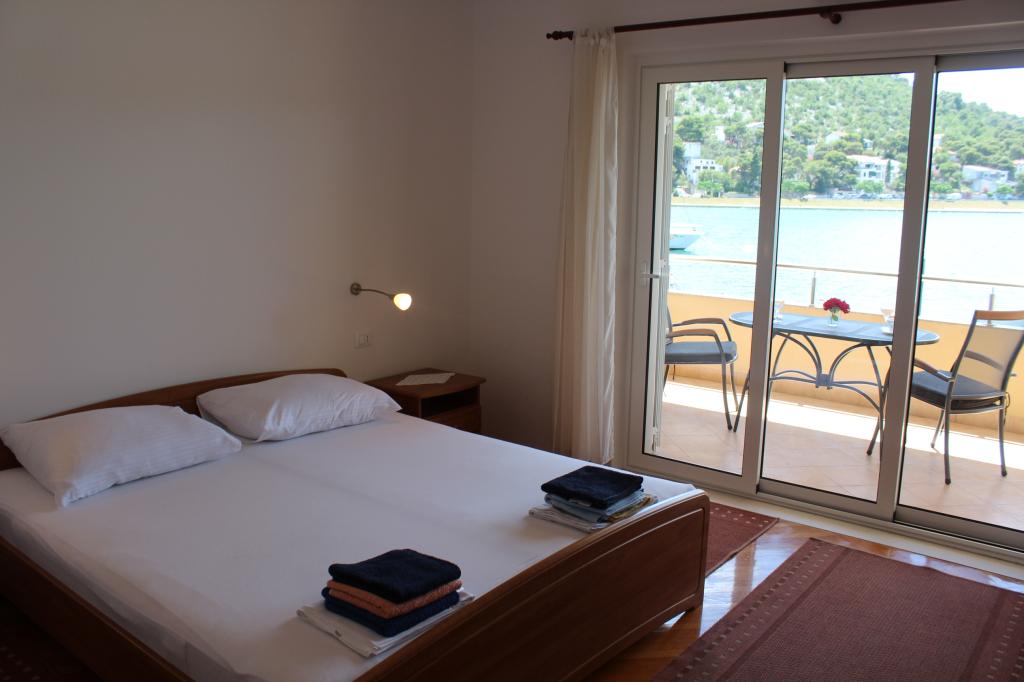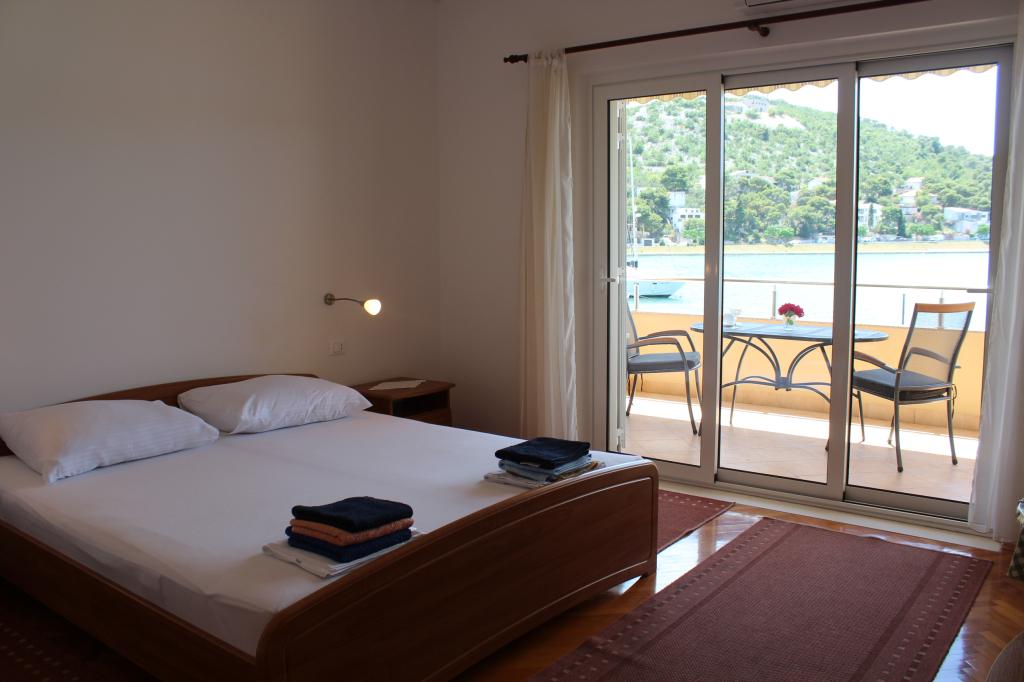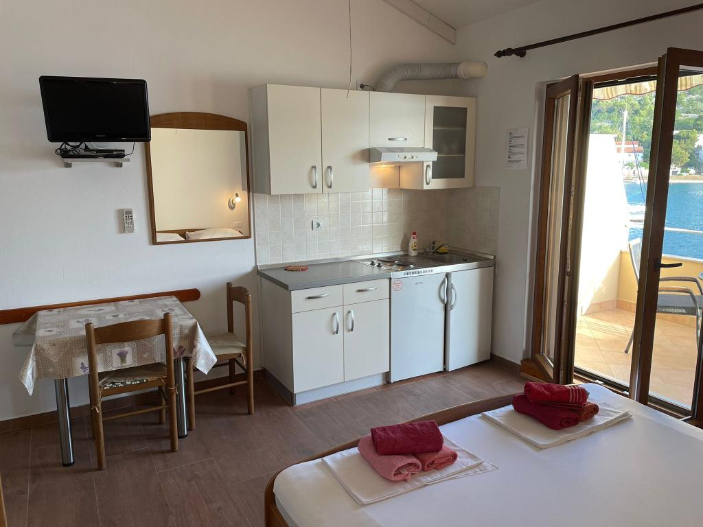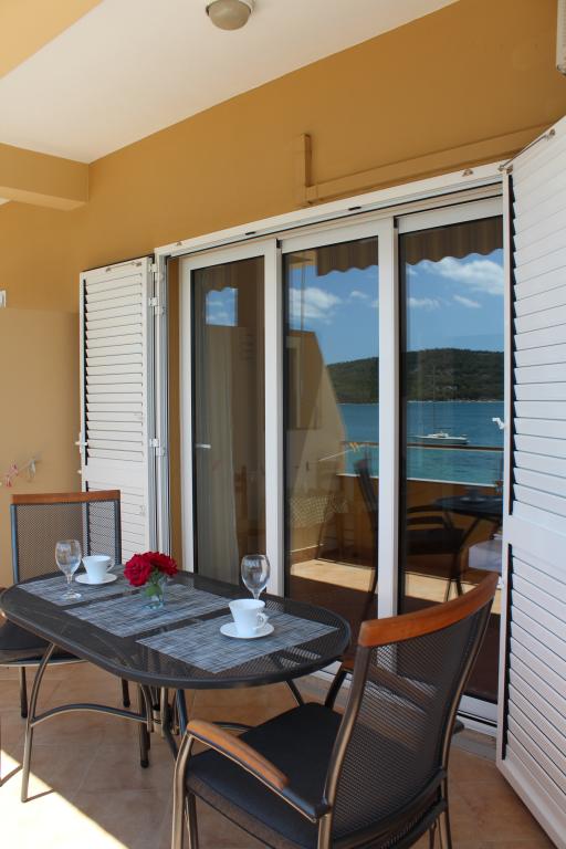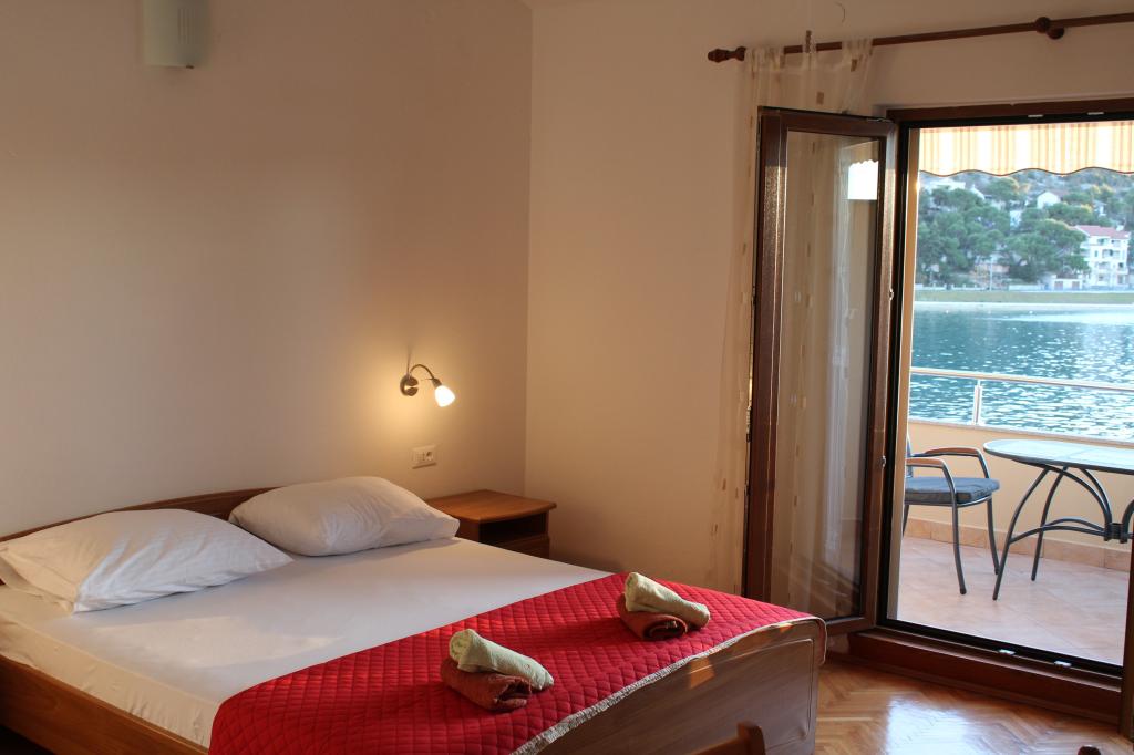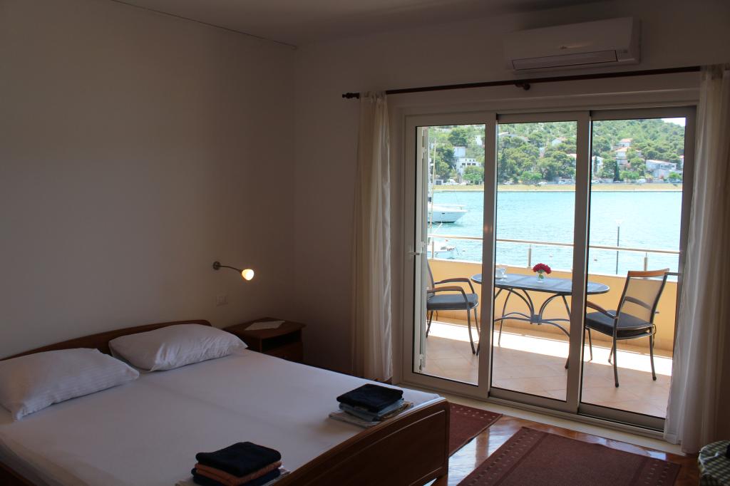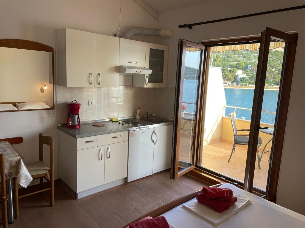 Het huis ligt vlakbij het water, mooi uitzicht op dorpje Tisno en eiland Murter. Het appartement is netjes en schoon. Met 2x ruime balkon, goede shutters voor het raam en airco. Vanaf balkon mooi uitzicht, vooral \'s avonds de zonsondergang. We hadden recht voor het appartement een ligplaats voor onze boot, dat was super! Jere is erg aardig en behulpzaam, en woont zelf ook in het gebouw. We kregen tussendoor extra schoon beddengoed en handdoeken. Bakker, supermarkt, restaurants etc allemaal op loopafstand. Er is genoeg te zien en te beleven in de omgeving. Wij vonden het geweldig hier, komen dit jaar weer terug, en dan langer!