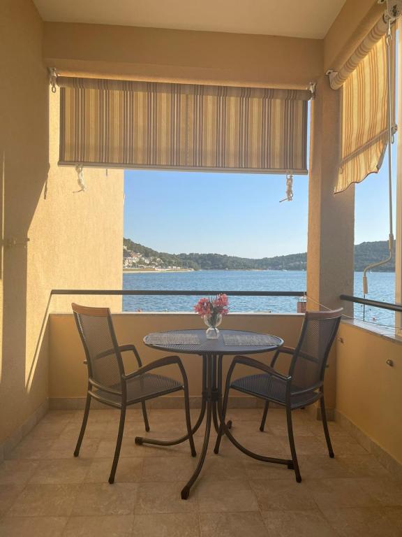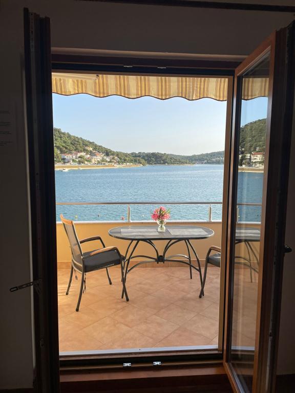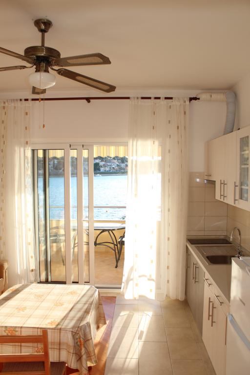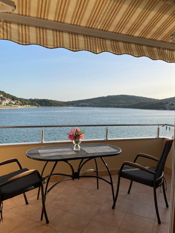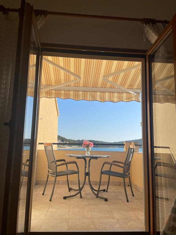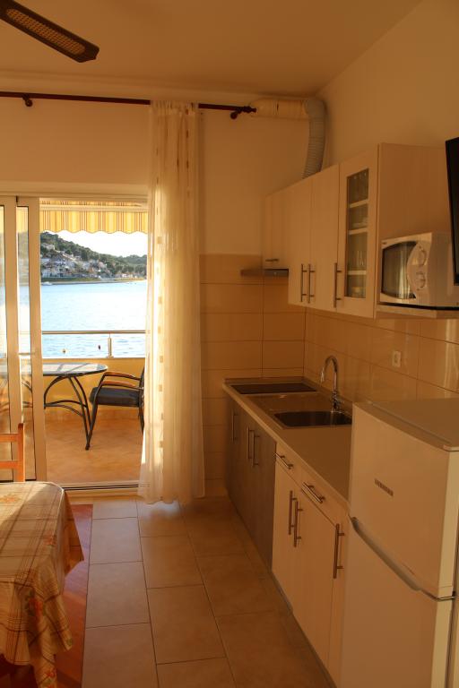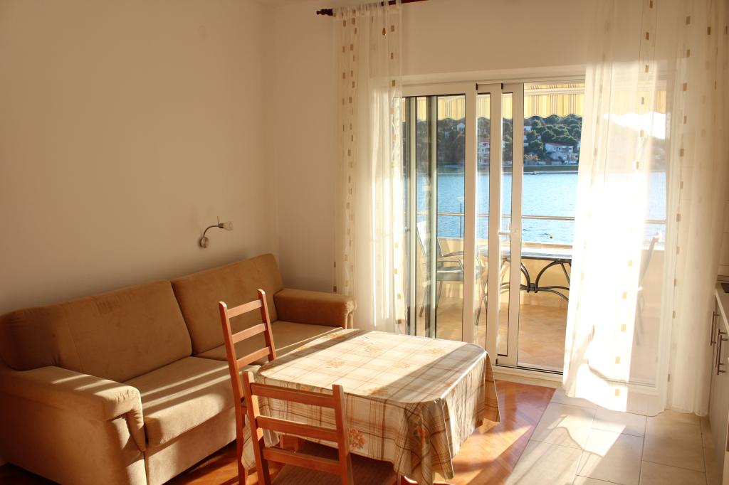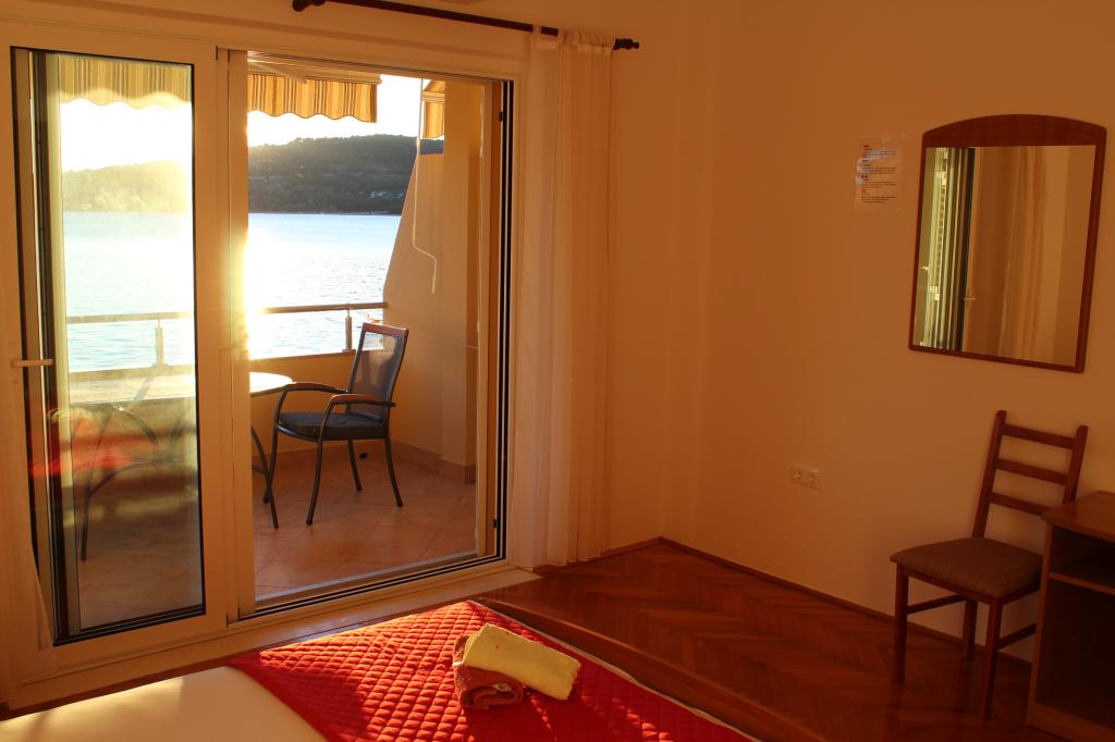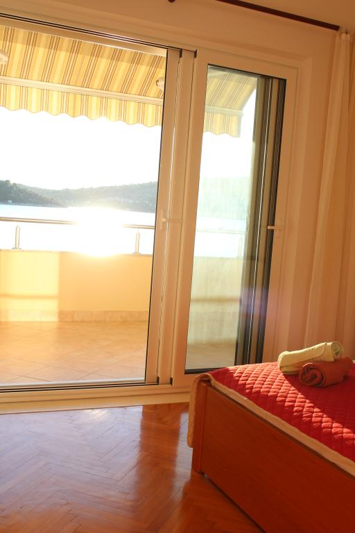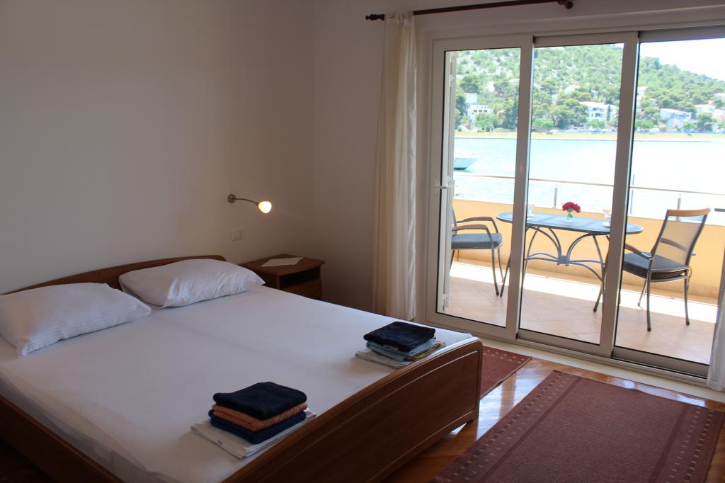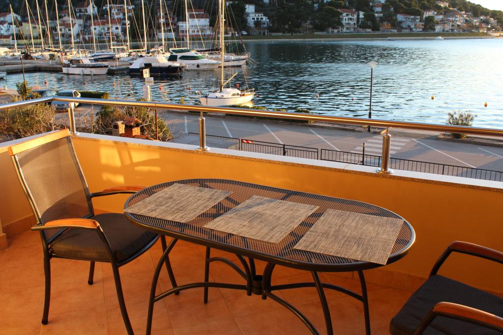 Het huis ligt vlakbij het water, mooi uitzicht op dorpje Tisno en eiland Murter. Het appartement is netjes en schoon. Met 2x ruime balkon, goede shutters voor het raam en airco. Vanaf balkon mooi uitzicht, vooral \'s avonds de zonsondergang. We hadden recht voor het appartement een ligplaats voor onze boot, dat was super! Jere is erg aardig en behulpzaam, en woont zelf ook in het gebouw. We kregen tussendoor extra schoon beddengoed en handdoeken. Bakker, supermarkt, restaurants etc allemaal op loopafstand. Er is genoeg te zien en te beleven in de omgeving. Wij vonden het geweldig hier, komen dit jaar weer terug, en dan langer!