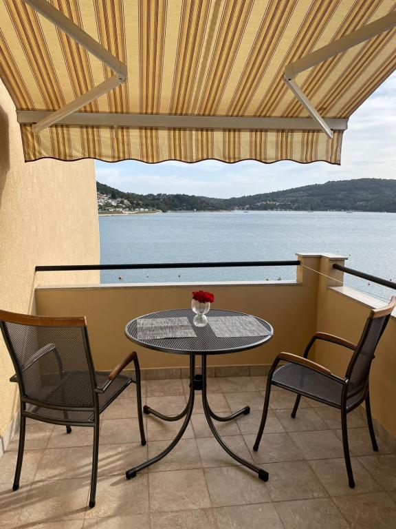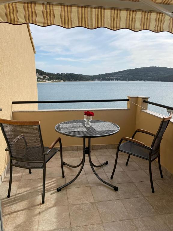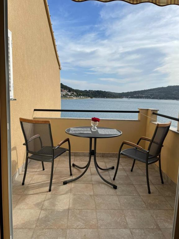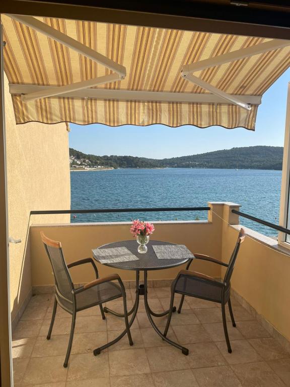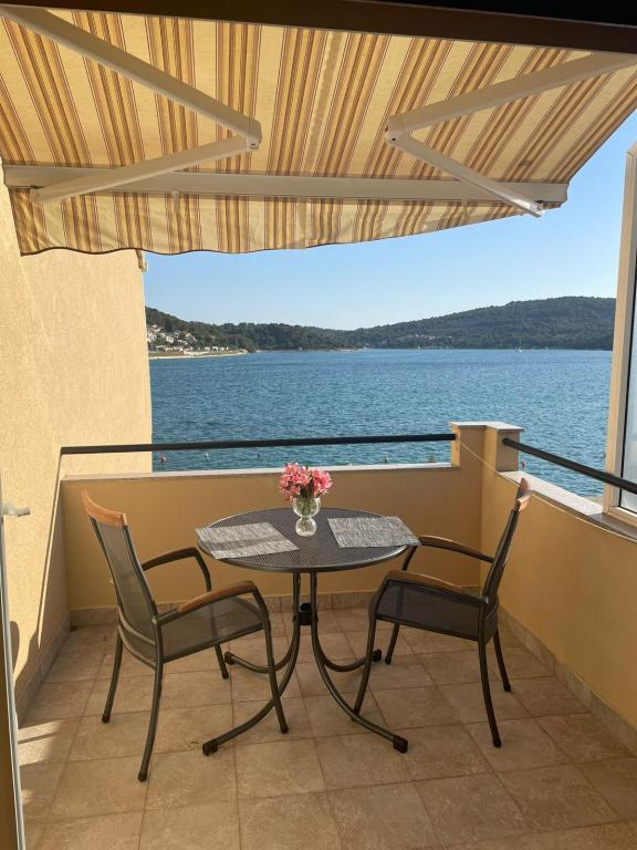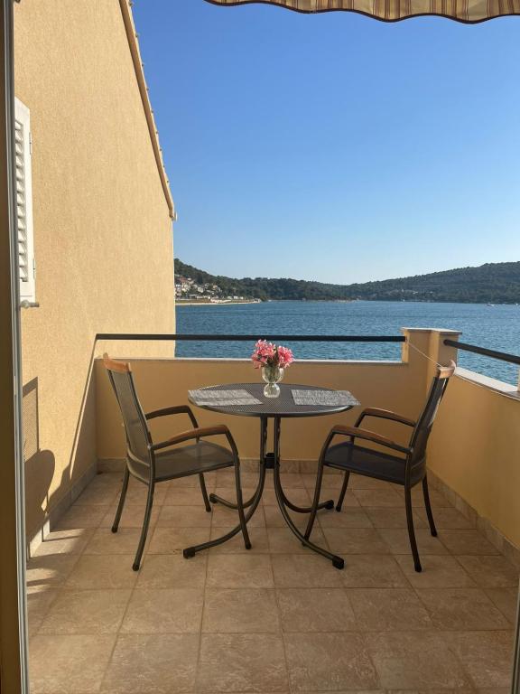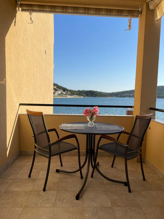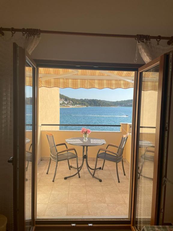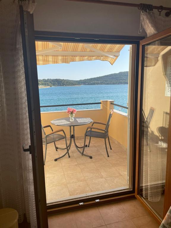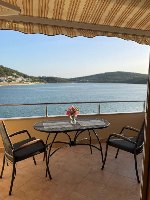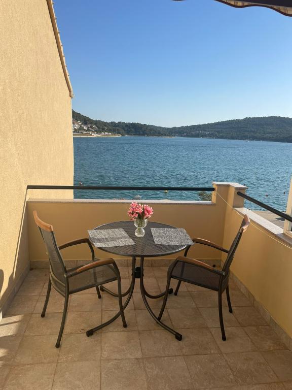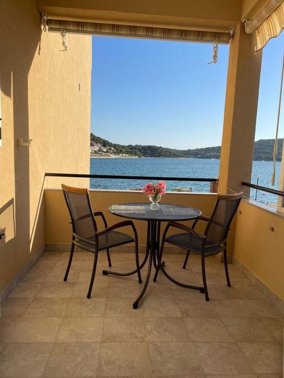 Het huis ligt vlakbij het water, mooi uitzicht op dorpje Tisno en eiland Murter. Het appartement is netjes en schoon. Met 2x ruime balkon, goede shutters voor het raam en airco. Vanaf balkon mooi uitzicht, vooral \'s avonds de zonsondergang. We hadden recht voor het appartement een ligplaats voor onze boot, dat was super! Jere is erg aardig en behulpzaam, en woont zelf ook in het gebouw. We kregen tussendoor extra schoon beddengoed en handdoeken. Bakker, supermarkt, restaurants etc allemaal op loopafstand. Er is genoeg te zien en te beleven in de omgeving. Wij vonden het geweldig hier, komen dit jaar weer terug, en dan langer!