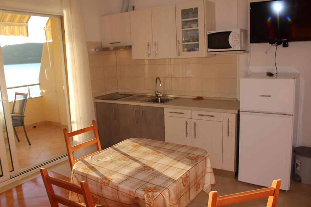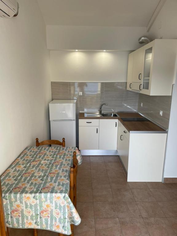 Het appartement was erg schoon en bestaat uit een slaapkamer en een keuken met een koelkast en vriezer, evenals toegang tot het balkon met uitzicht op zee. Parkeerplaats op het terrein. Zeer vriendelijke eigenaar.