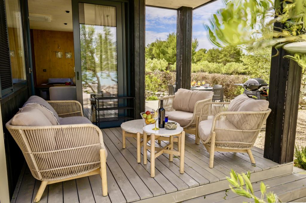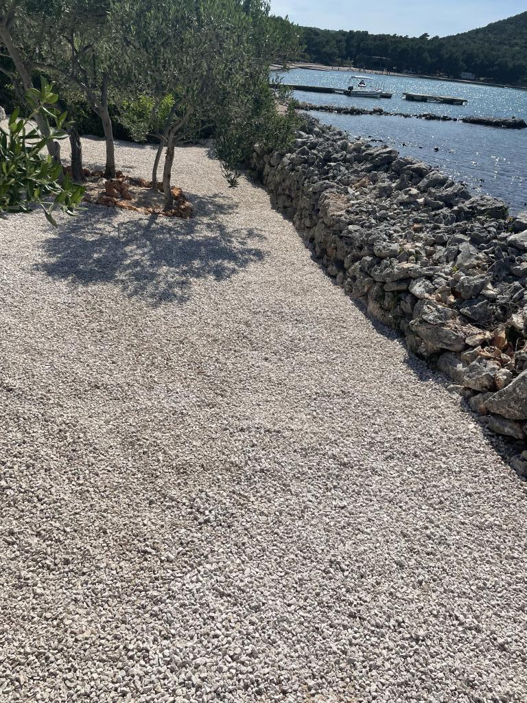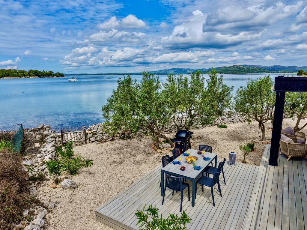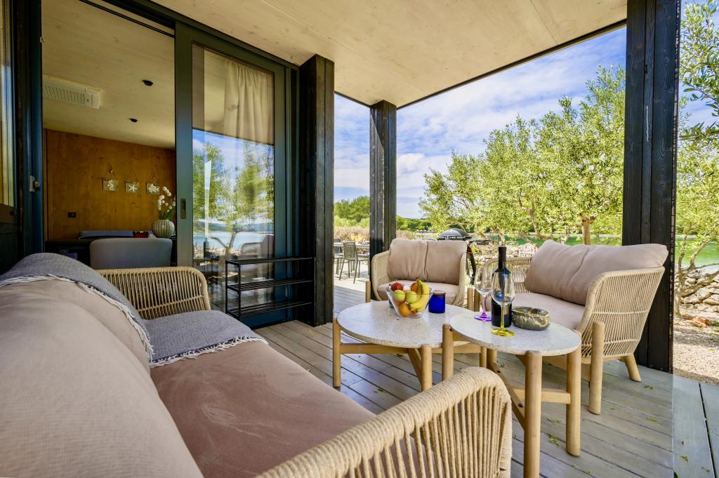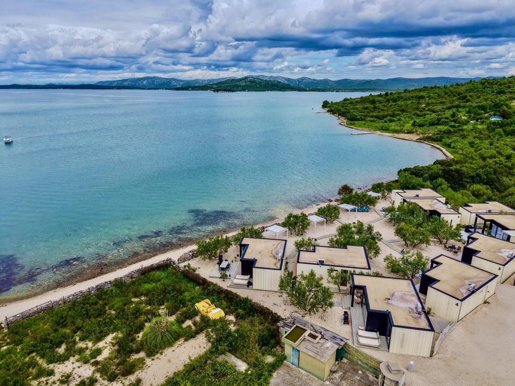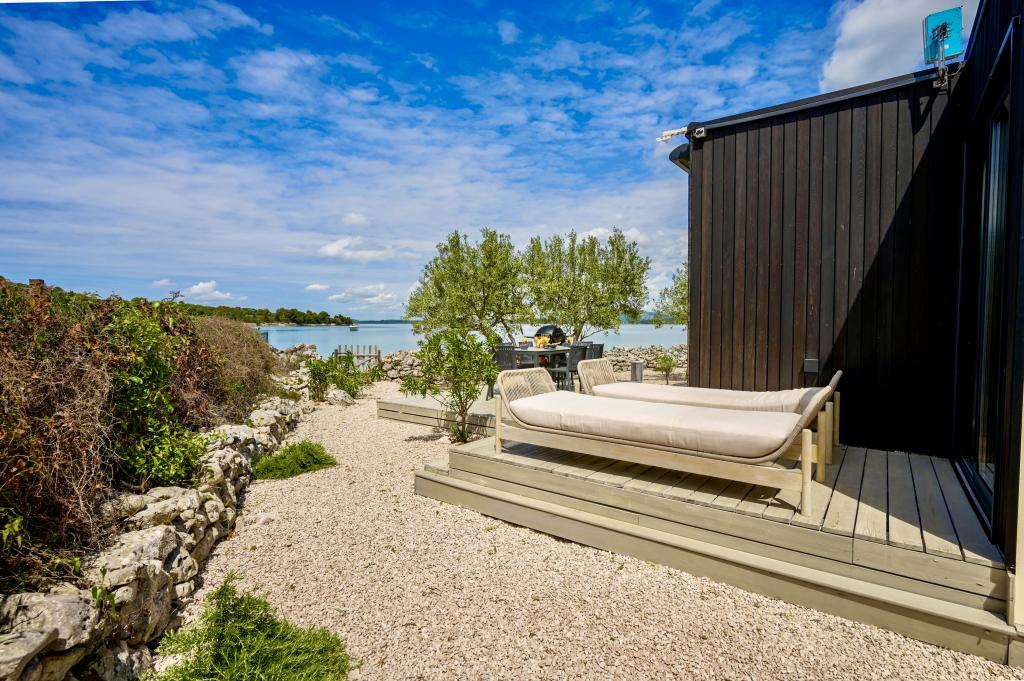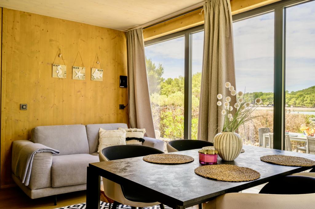 De stacaravan ligt op een steenworp afstand van de zee. Het moderne interieur van het appartement is typisch Dalmatisch. Omringd door witte kiezels en groene olijfbomen, en aan de voorkant is alleen het eindeloze blauw. Zee, zon en wind zorgen voor een onbeschrijfelijk spel dat alle zintuigen streelt. Ongeacht of u in een van de twee slaapkamers slaapt, kunt u genieten van het blauw van de zee en de gloed van de zon in de ochtend. En vanuit de volledig uitgeruste keuken met alles wat u nodig heeft (o.a. vaatwasser en vriezer) en de ruime eettafel, heeft u een onbeschrijfelijk uitzicht op het terras en alle charmes die de zon en de zee te bieden hebben. Of u nu een maaltijd bereidt in de keuken of grillt op het terras, u heeft gegarandeerd volledige rust en privacy. Het doel van iedere vakantie is om de dagelijkse sleur en routine achter u te laten. Dat is precies wat onze accommodatie biedt. Hoewel het complex omringd is door 8 gelijksoortige gebouwen, geniet u hier van volledige privacy en rust, omdat iedereen u beschermt. De enige grens die u ziet, is de lucht en de zee.