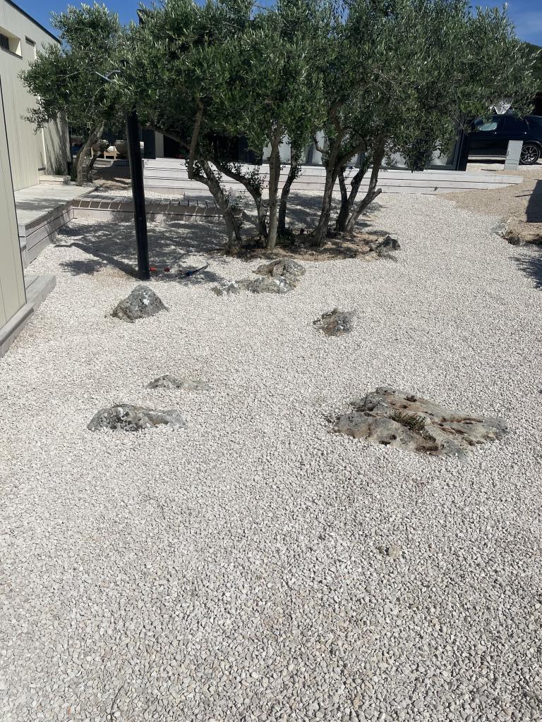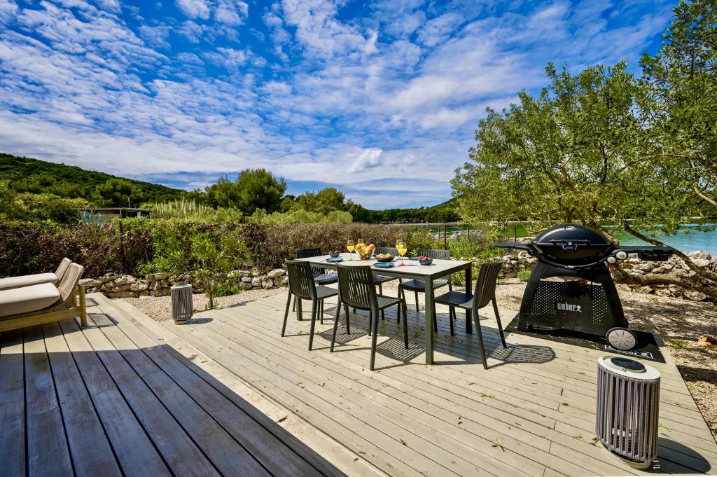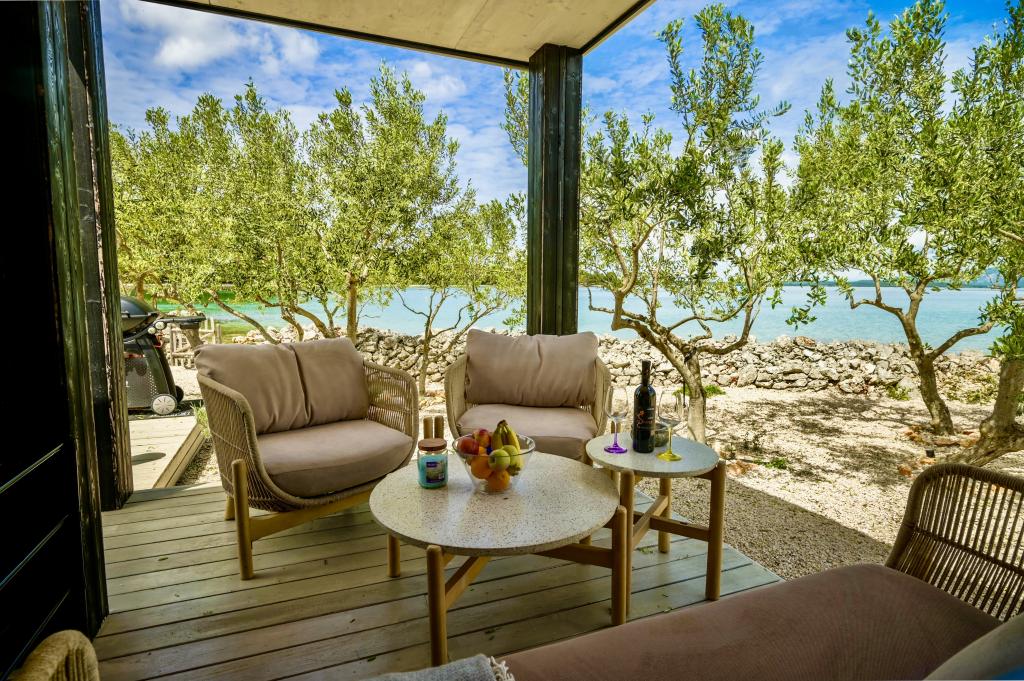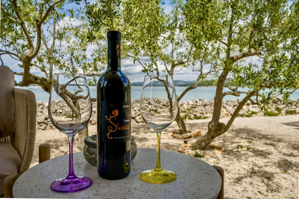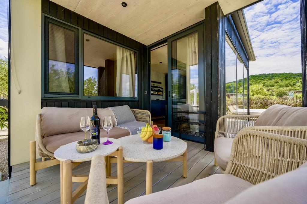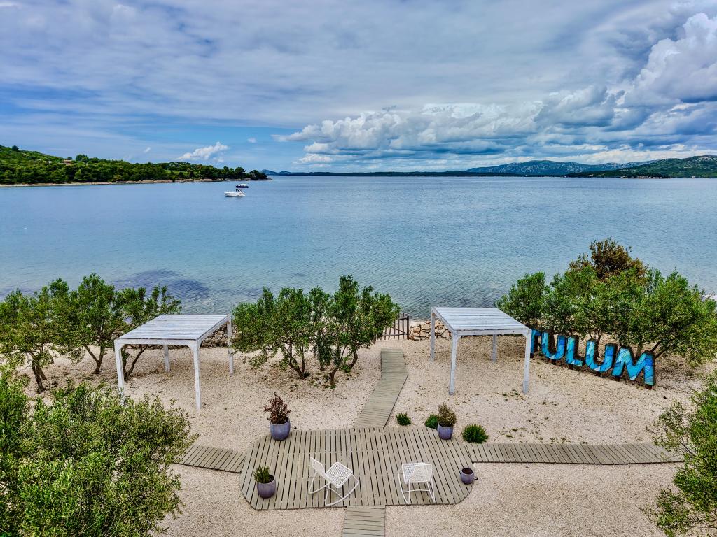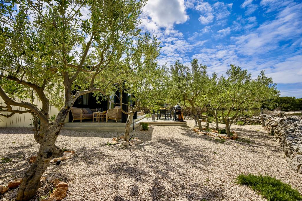 De stacaravan ligt op een steenworp afstand van de zee. Het moderne interieur van het appartement is typisch Dalmatisch. Omringd door witte kiezels en groene olijfbomen, en aan de voorkant is alleen het eindeloze blauw. Zee, zon en wind zorgen voor een onbeschrijfelijk spel dat alle zintuigen streelt. Ongeacht of u in een van de twee slaapkamers slaapt, kunt u genieten van het blauw van de zee en de gloed van de zon in de ochtend. En vanuit de volledig uitgeruste keuken met alles wat u nodig heeft (o.a. vaatwasser en vriezer) en de ruime eettafel, heeft u een onbeschrijfelijk uitzicht op het terras en alle charmes die de zon en de zee te bieden hebben. Of u nu een maaltijd bereidt in de keuken of grillt op het terras, u heeft gegarandeerd volledige rust en privacy. Het doel van iedere vakantie is om de dagelijkse sleur en routine achter u te laten. Dat is precies wat onze accommodatie biedt. Hoewel het complex omringd is door 8 gelijksoortige gebouwen, geniet u hier van volledige privacy en rust, omdat iedereen u beschermt. De enige grens die u ziet, is de lucht en de zee.