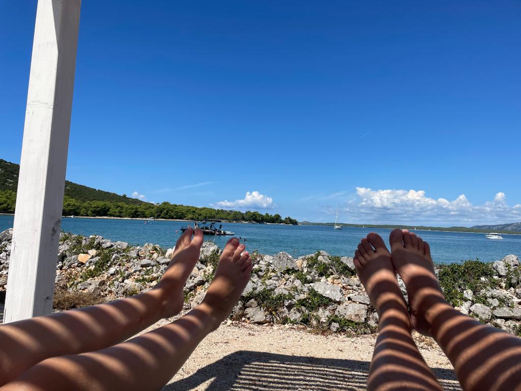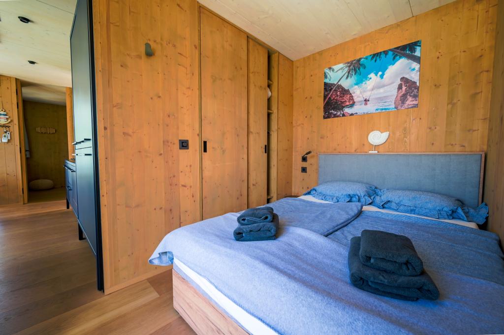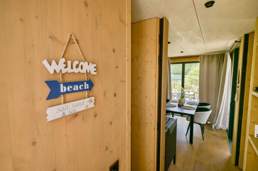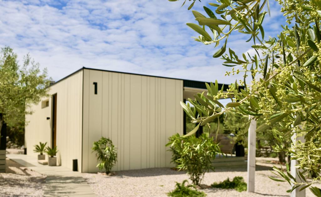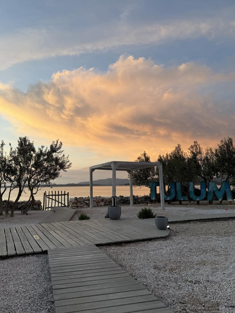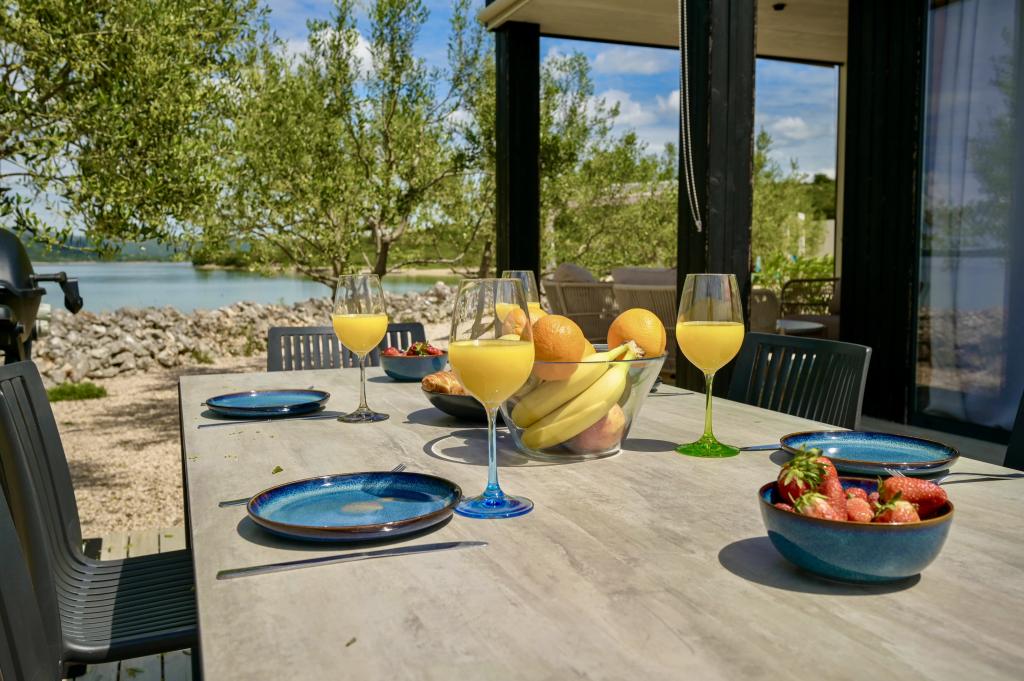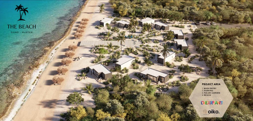 De stacaravan ligt op een steenworp afstand van de zee. Het moderne interieur van het appartement is typisch Dalmatisch. Omringd door witte kiezels en groene olijfbomen, en aan de voorkant is alleen het eindeloze blauw. Zee, zon en wind zorgen voor een onbeschrijfelijk spel dat alle zintuigen streelt. Ongeacht of u in een van de twee slaapkamers slaapt, kunt u genieten van het blauw van de zee en de gloed van de zon in de ochtend. En vanuit de volledig uitgeruste keuken met alles wat u nodig heeft (o.a. vaatwasser en vriezer) en de ruime eettafel, heeft u een onbeschrijfelijk uitzicht op het terras en alle charmes die de zon en de zee te bieden hebben. Of u nu een maaltijd bereidt in de keuken of grillt op het terras, u heeft gegarandeerd volledige rust en privacy. Het doel van iedere vakantie is om de dagelijkse sleur en routine achter u te laten. Dat is precies wat onze accommodatie biedt. Hoewel het complex omringd is door 8 gelijksoortige gebouwen, geniet u hier van volledige privacy en rust, omdat iedereen u beschermt. De enige grens die u ziet, is de lucht en de zee.