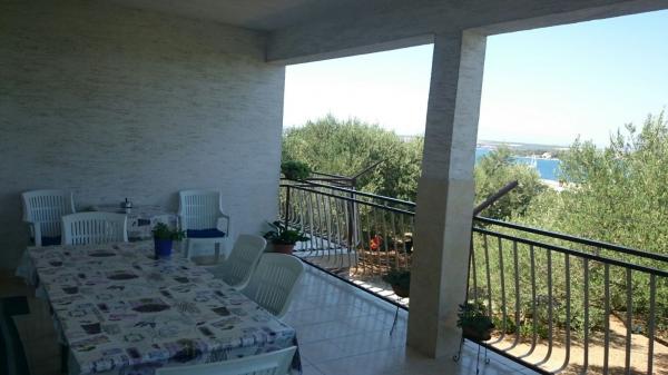 Het huis ligt op slechts 5 minuten lopen van de stranden en het centrum. Het is omgeven door olijfbomen en verborgen voor het zicht van voorbijgangers. Er is parkeergelegenheid voor het huis. Het is mogelijk om de buitengrill te gebruiken. Het grotere appartement 1/4 1 bevindt zich op de eerste verdieping van het huis. Vanaf het mooie, ruime terras heeft u een prachtig uitzicht op de zee en de stad Biograd. Het appartement is schoon, comfortabel en volledig uitgerust voor een verblijf.
