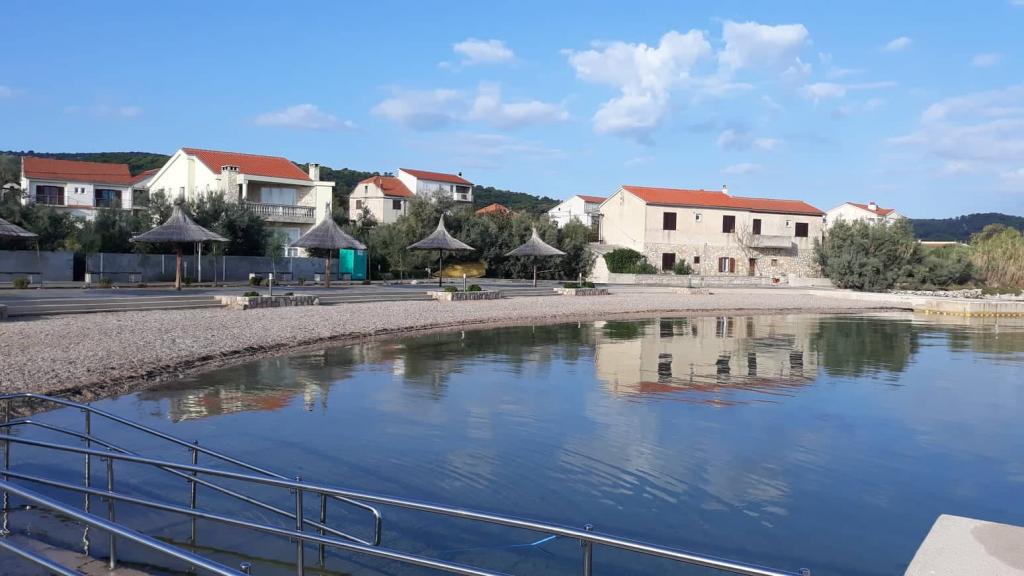 De appartementen zijn gelegen in een klein dorp niet ver van Ugrinić Tkon op het eiland Pasman. De appartementen liggen in een gezinswoning gedurende 3 minuten naar het strand. Beach nieuw ingericht met parasols. (Pjeskovitošljunčana) Auto parkeren in de tuin aan de voorkant van het appartement. We hebben een ligplaats voor kleine boten. Toen de eigenaar kan kopen: aardappelen, uien tomaten, olijfolie, zelfgemaakte rode en witte wijn, gedroogde vijgen en de rest van de eigen productie.