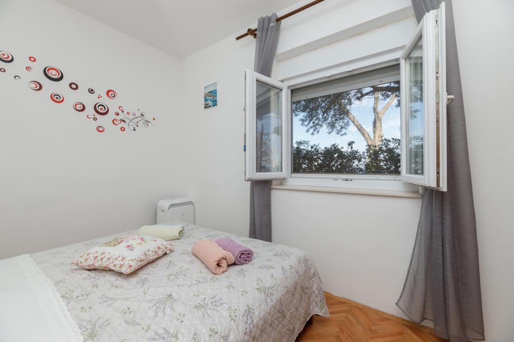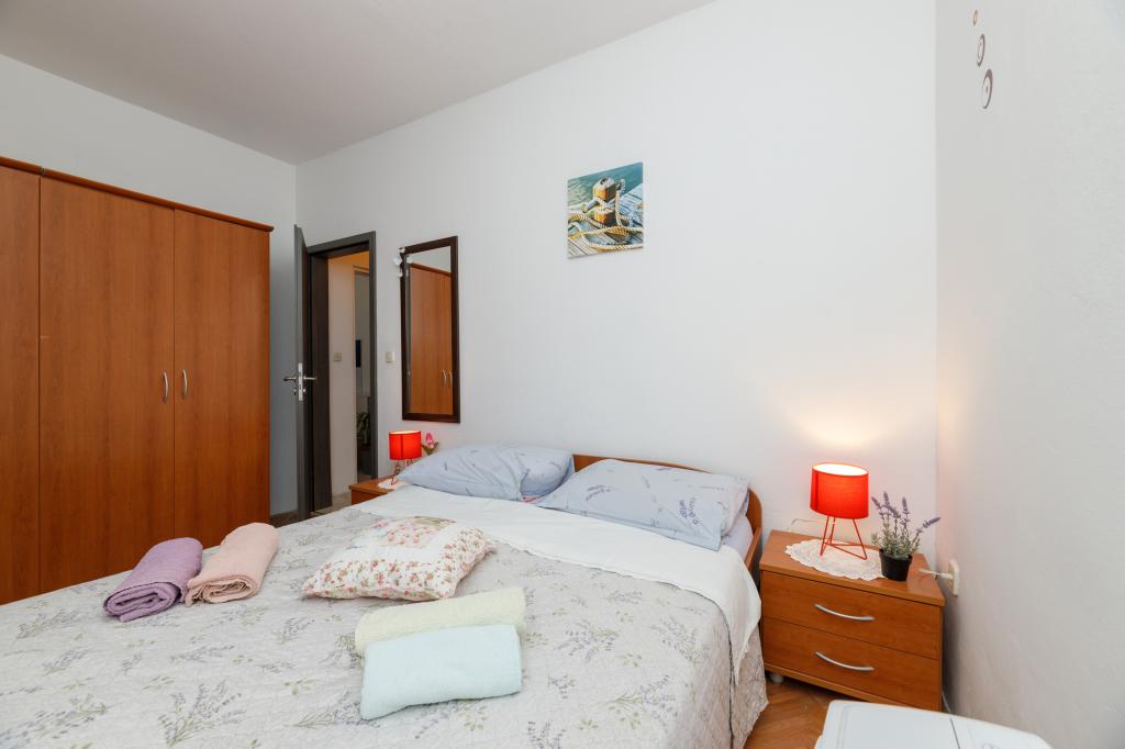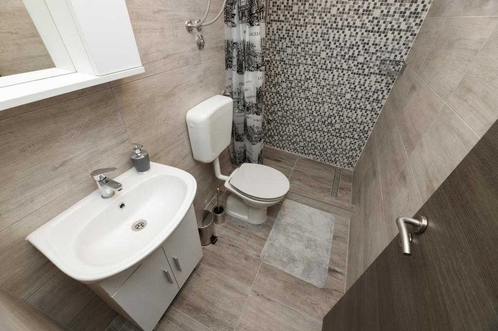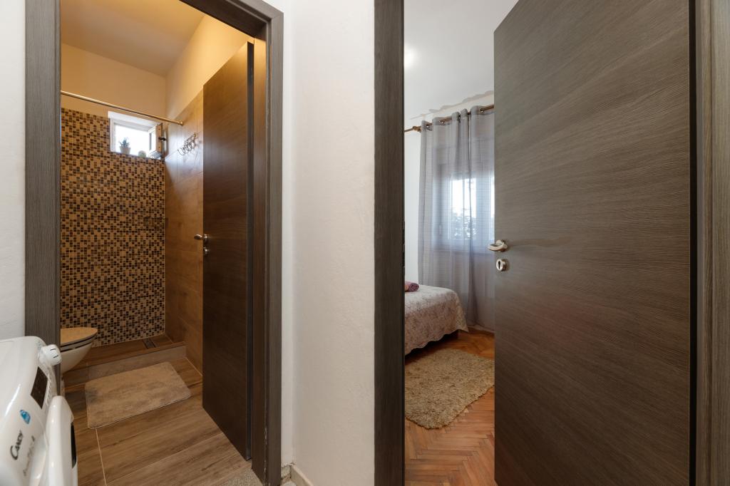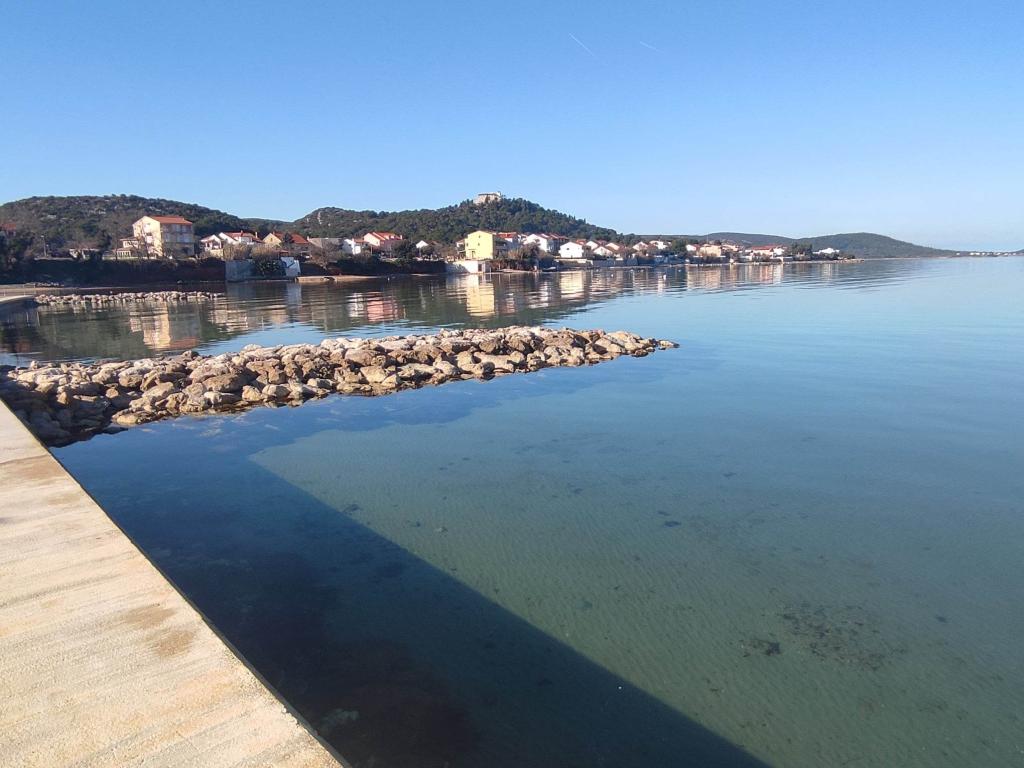 Een slaapkamer appartement in Tkon op het eiland Pasman, 20 m van het zandstrand en 50 m van het centrum van Tkon, bevindt zich op de begane grond. Het heeft een kamer met een tweepersoonsbed voor twee personen en een slaapbank voor twee personen. Badkamer met douche, wasmachine, keuken met oven en vaatwasser. Het appartement is van alle gemakken voorzien, heeft tv, internet, airconditioning, parking, grill. Het heeft een terras met uitzicht op zee. In de buurt van het appartement zijn alle benodigde faciliteiten, winkels, restaurants, tavernes, koffiebars, bakker, patisserie, slager, apotheek, kliniek. In Tkon kunnen gasten genieten van de vele zandstranden in de baaien, fietsen langs de fietspaden langs het eiland, diverse evenementen en festiviteiten in de zomer en het nabijgelegen Kornati National Park bezoeken met een georganiseerde boot vanuit Tkon. Ze kunnen ook een bezoek brengen aan het natuurpark Vrana Lake.