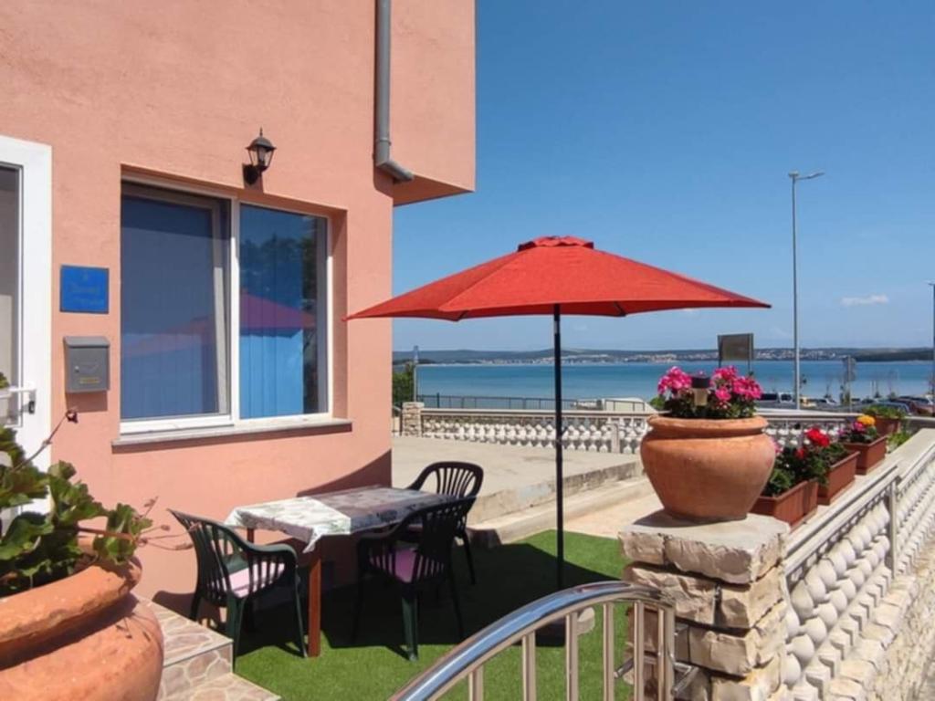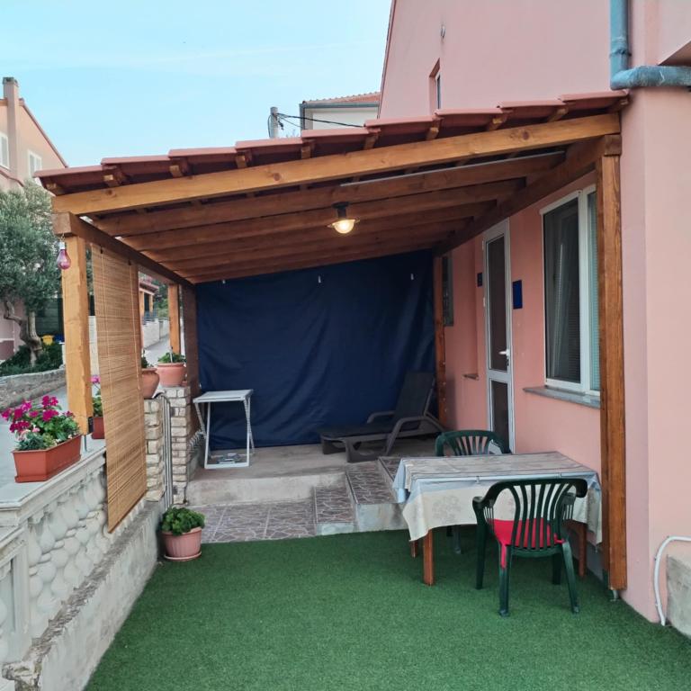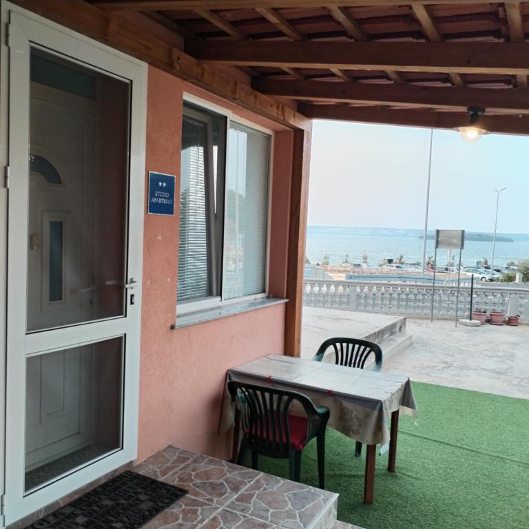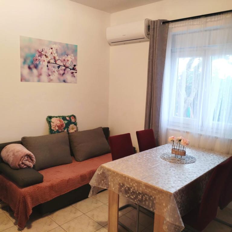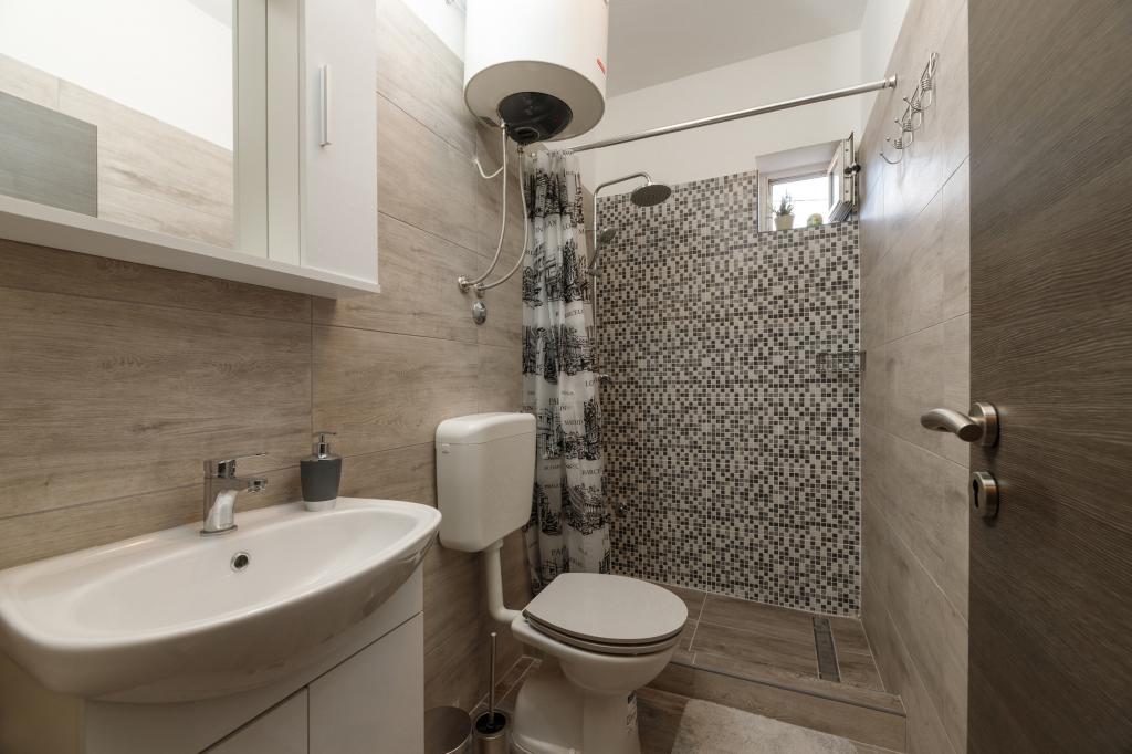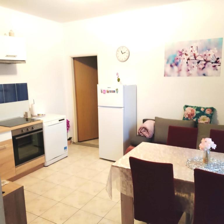 Een slaapkamer appartement in Tkon op het eiland Pasman, 20 m van het zandstrand en 50 m van het centrum van Tkon, bevindt zich op de begane grond. Het heeft een kamer met een tweepersoonsbed voor twee personen en een slaapbank voor twee personen. Badkamer met douche, wasmachine, keuken met oven en vaatwasser. Het appartement is van alle gemakken voorzien, heeft tv, internet, airconditioning, parking, grill. Het heeft een terras met uitzicht op zee. In de buurt van het appartement zijn alle benodigde faciliteiten, winkels, restaurants, tavernes, koffiebars, bakker, patisserie, slager, apotheek, kliniek. In Tkon kunnen gasten genieten van de vele zandstranden in de baaien, fietsen langs de fietspaden langs het eiland, diverse evenementen en festiviteiten in de zomer en het nabijgelegen Kornati National Park bezoeken met een georganiseerde boot vanuit Tkon. Ze kunnen ook een bezoek brengen aan het natuurpark Vrana Lake.