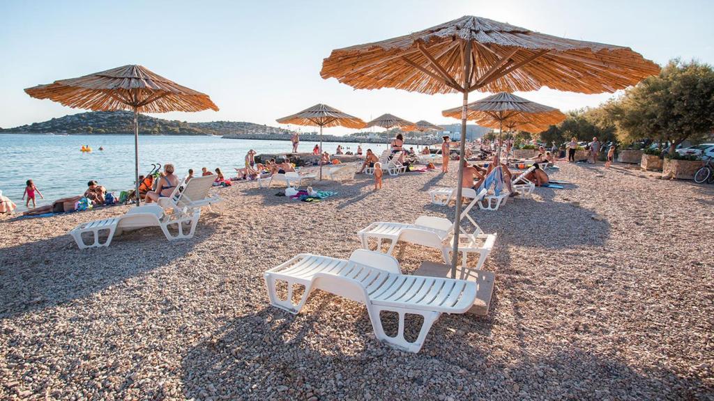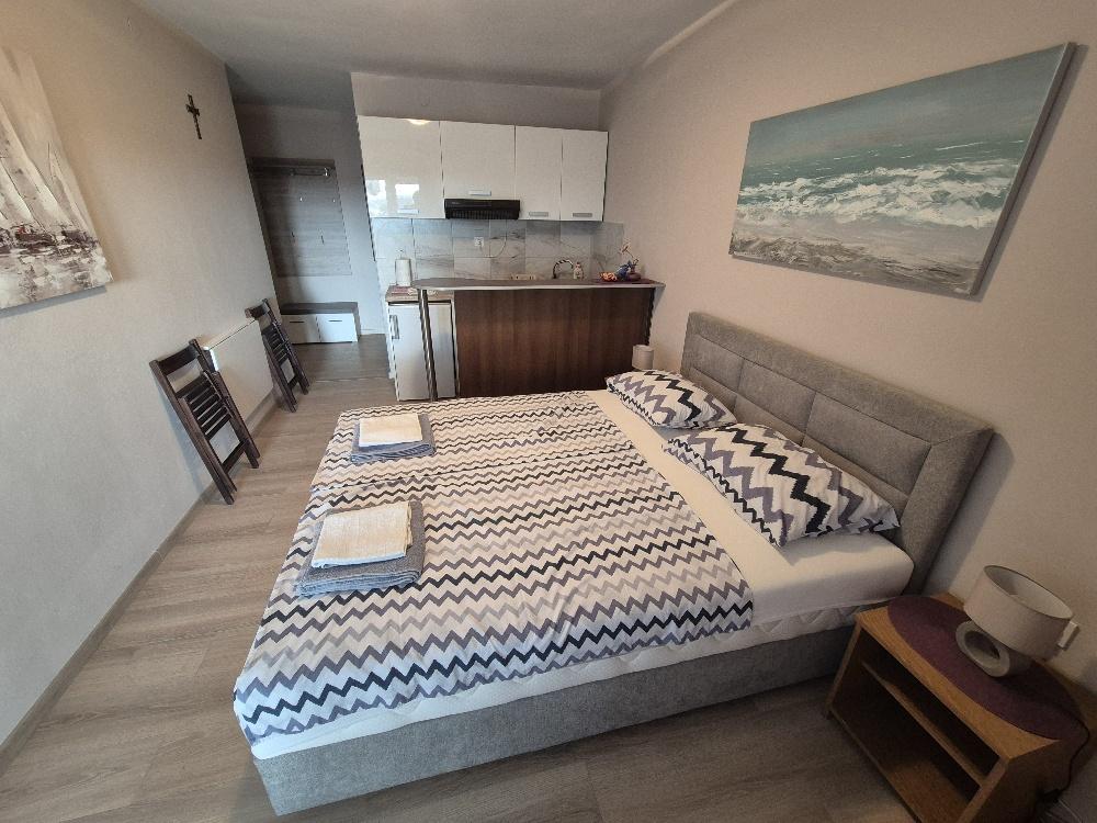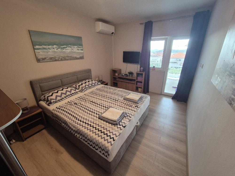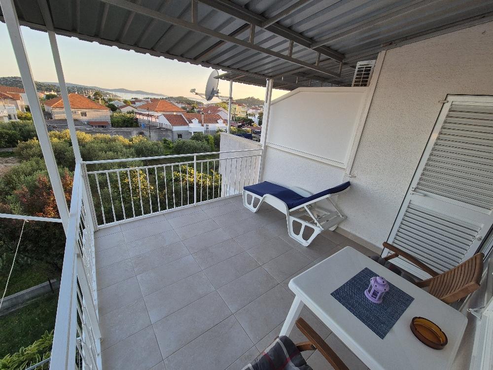 We huren een charmant appartement met twee slaapkamers in Tribunj, een pittoresk vissersdorpje aan de kust, niet ver van het pittoreske Vodice en bekend om zijn traditionele vrachtrace. Gelegen op de tweede verdieping van een kleiner gebouw, biedt dit appartement een ruim terras met een prachtig uitzicht op de zee en het omliggende landschap, dat reikt tot aan Vodice, Šibenik, Prvić en een aantal andere eilanden, terwijl de kerk van St. Nikole schijnt 's nachts in de verte. Gasten hebben toegang tot airconditioning, parkeergelegenheid en een moderne lcd-tv/satellietantenne voor aangename avonden vol ontspanning. De keuken is volledig uitgerust met een gasfornuis, een koelkast met vriesvak en alle benodigde accessoires voor het bereiden en serveren van eten en drinken. De badkamer is comfortabel, voorzien van een douchecabine en functioneel sanitair. De prijs is inclusief toeristenbelasting, gebruik van airconditioning en parkeren, en een voorschot van 30% van de prijs garandeert de reservering. Tribunj biedt prachtige stranden en alle noodzakelijke voorzieningen voor een aangenaam verblijf - winkels, geldautomaten, kliniek, apotheek,