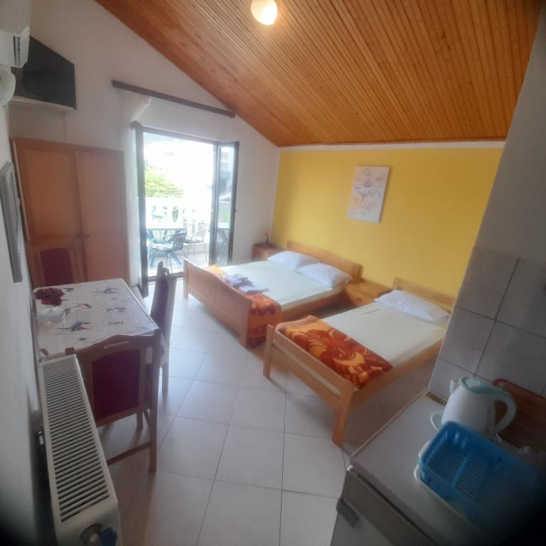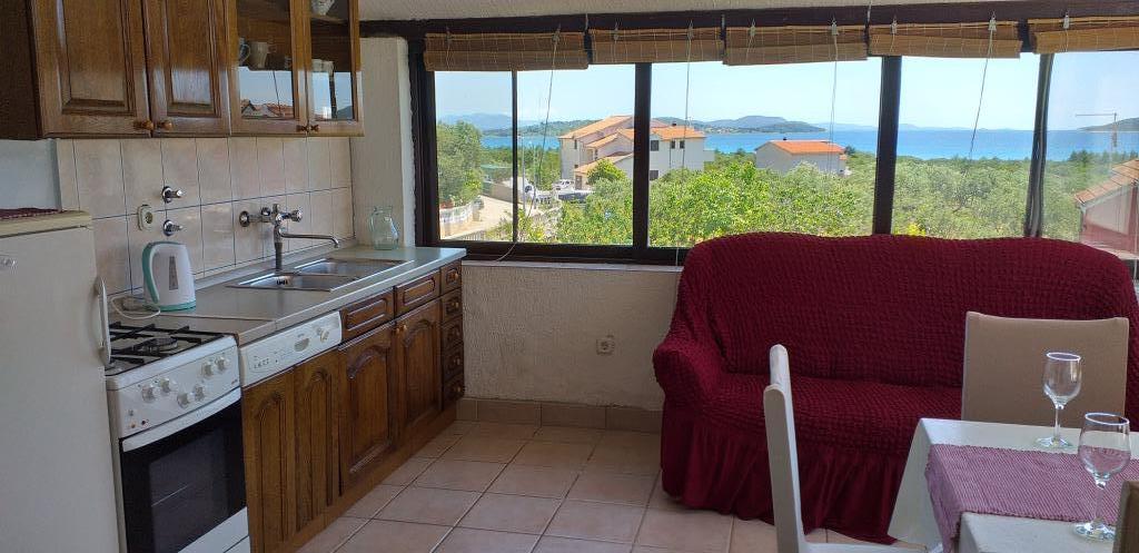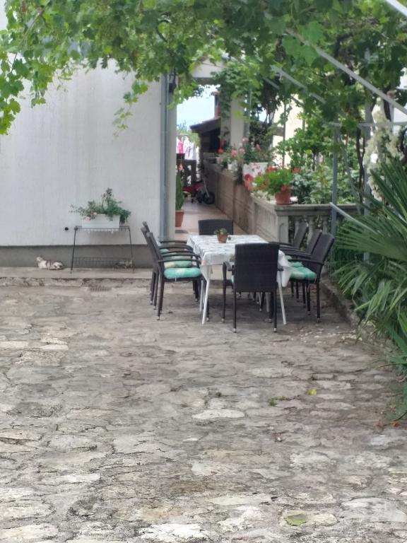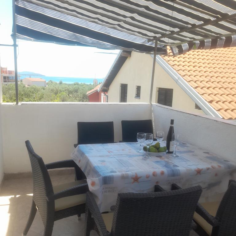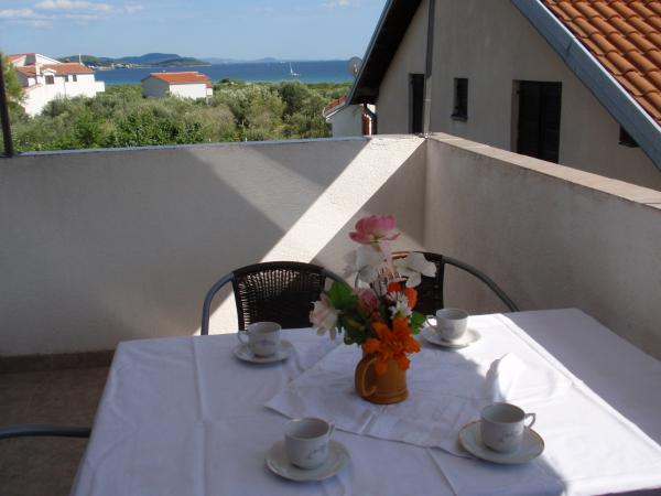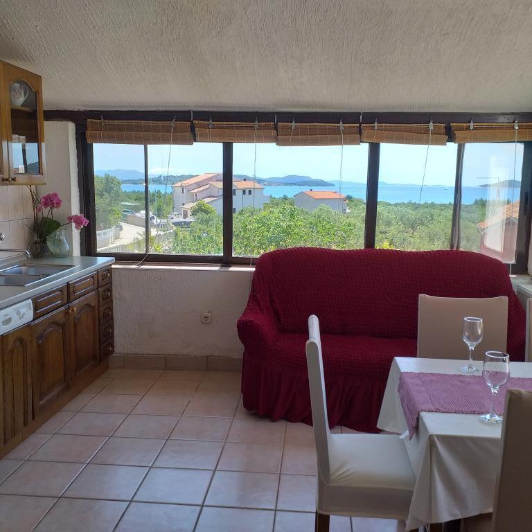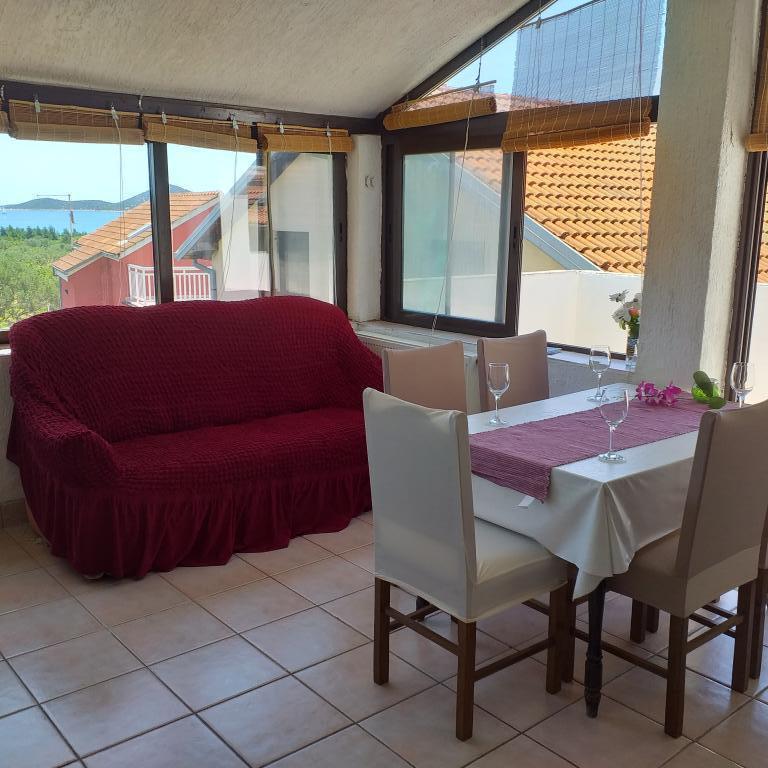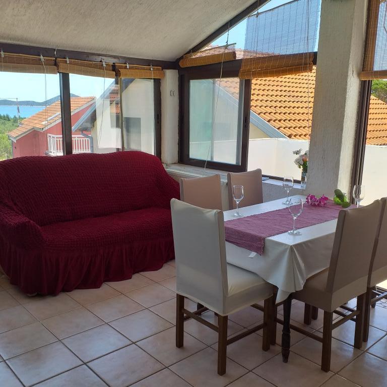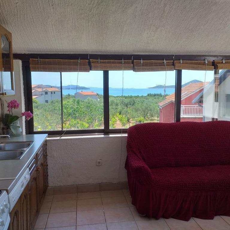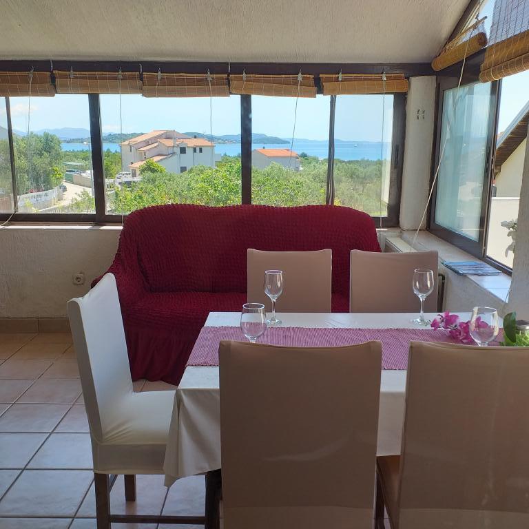 Villa Antonela ligt in een rustig en prachtig deel van Tribunj, op een privéperceel van 2500 m2. De appartementen met twee slaapkamers bieden een uitzonderlijk mooi uitzicht op onze wijngaard, olijfgaard, zee en archipel. Het is omgeven door de schoonheid van de natuur: wijnranken en olijfbomen... Er zijn 3 appartementen met twee slaapkamers (3x A4) met een terras met zeezicht en twee appartementen met één slaapkamer (A2). Alle appartementen hebben een terras of balkon. Voor grotere groepen zijn er tafels in de schaduw voor het huis en de tuin is omheind zodat kinderen veilig kunnen spelen. De appartementen zijn volledig uitgerust: satelliet-lcd-tv, airconditioning, internet (w-lane), centrale verwarming en parkeergelegenheid. Er is een grote privé-parkeerplaats, een barbecue en een omheinde tuin in de schaduw met een tafel en stoelen, ideaal voor gasten om te socialiseren en voor kinderen om te spelen. We verkopen lokale producten zoals olijfolie... Welkom!