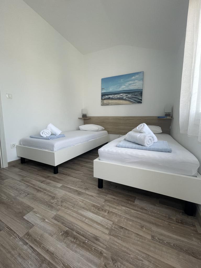 Volledig en modern ingerichte appartementen in een rustige omgeving, op slechts 300 meter van het strand met diverse voorzieningen. De appartementen bevinden zich op de tweede verdieping van een gezinswoning. In de omheinde tuin kunt u genieten van een overdekte ruimte om te socialiseren, compleet met buitenkeuken en barbecue. Er is privéparkeergelegenheid voor de deur. Op 50 meter van het huis is een bushalte en op 200 meter de eerste winkel. Het stadscentrum ligt op 800 meter afstand en is bereikbaar via de weg of via de boulevard langs de zee. We houden van dieren, maar huisdieren zijn niet toegestaan.
