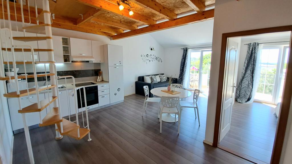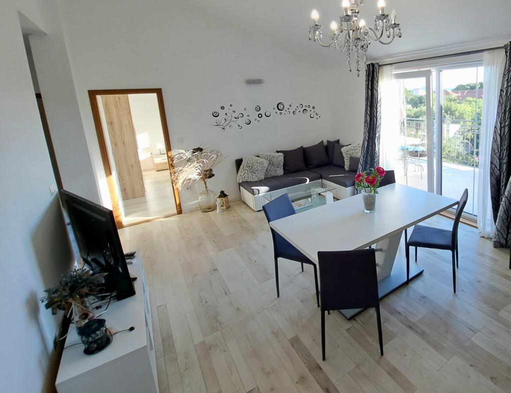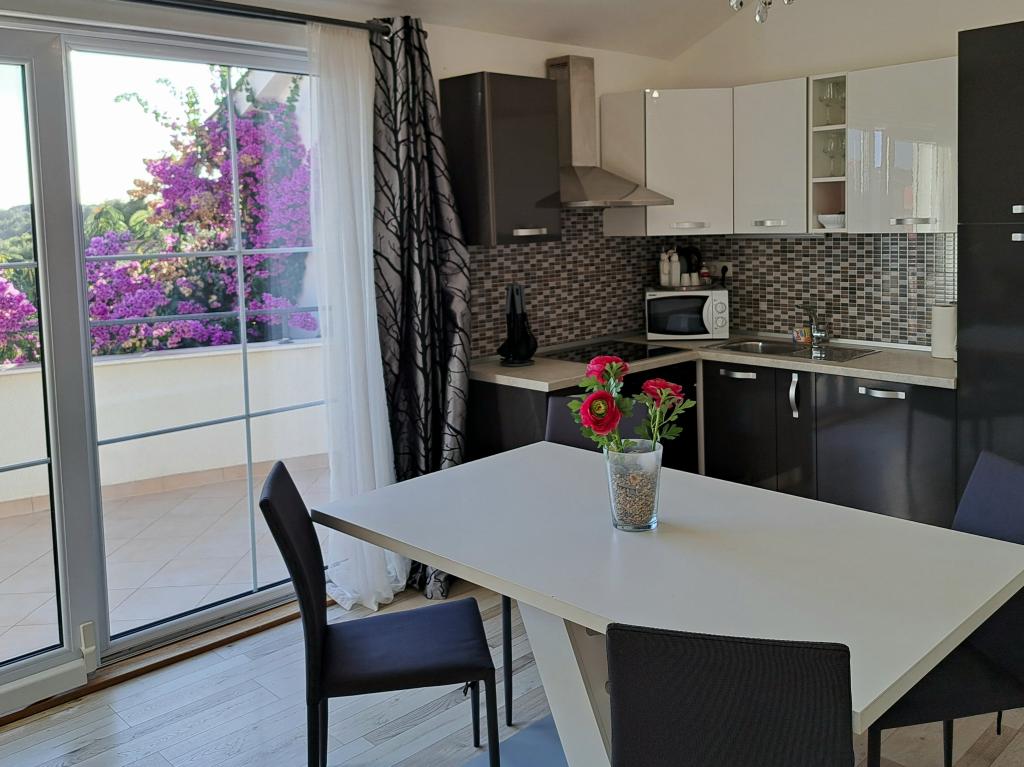 De appartementen "OAZA MIRA" bevinden zich in een particulier familiehuis en bestaan uit 3 appartementen met een capaciteit van 4 tot 18 personen. Omgeven door groen en bloemen, een oase van rust voor ogen en oren. Hier valt u in slaap en wordt u wakker door het gezang van de vogels. De appartementen die wij aanbieden zijn 65 m² groot, waarvan twee appartementen twee verdiepingen tellen (galerijen met een slaapkamer van circa 20 m²). Alle appartementen hebben twee slaapkamers, een eetkamer, een volledig uitgeruste keuken met alles wat u nodig heeft (magnetron, broodrooster, oven, koffiezetapparaat, wasmachine) en ruime badkamers. De appartementen zijn ruim en voorzien van airconditioning. Gratis internet (wifi) en satelliet-tv zijn beschikbaar. Alle appartementen hebben een terras of balkon met uitzicht op de zee, de tuin en de heuvels. Er is gratis privéparkeergelegenheid in het gebouw en reserveren is niet nodig.
