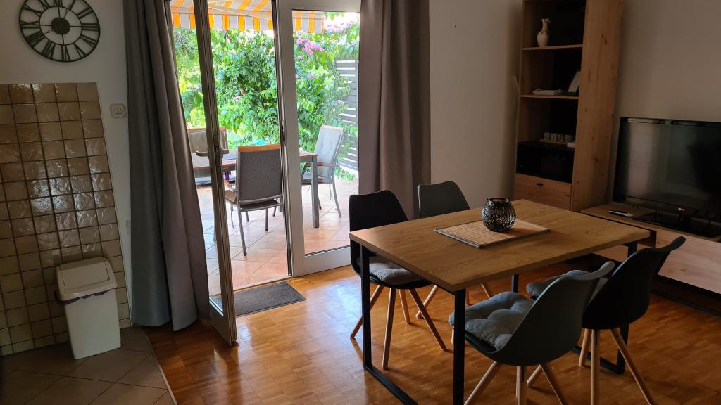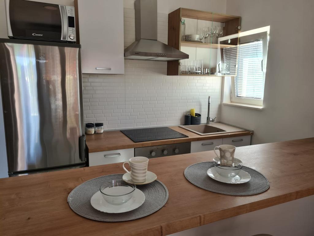 We hadden het grote genoegen om 13 heerlijke dagen in het appartement 2 + 2 door te brengen. Fantastisch, buitengewoon leuk en behulpzame gastheren, zeer schoon (op een schaal van 10 geef ik 20) en smaakvol ingericht appartement. De auto staat in de schaduw dankzij de overdekte parkeerplaats. Loop naar het strand (ongeveer 5 minuten met een hond), een charmant, rustig stadje, kristalhelder water in de zee. Het belangrijkste is dat het dankzij het kleine aantal verhuurde appartementen (3) rustig en gemoedelijk is. In de appartementen vindt u alles wat u nodig heeft: handdoeken, een haardroger, een strijkijzer, een magnetron, een broodrooster, een wasdroger, een wasmachine en zelfs een EHBO-doos. We begroeten Mera en Dragan van harte en bevelen een verblijf in uw appartementen van harte aan. Iwona en Jan en onze hond Psotek POLSKA