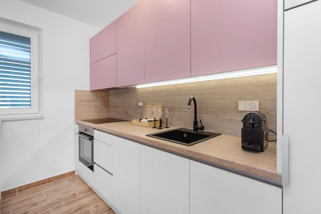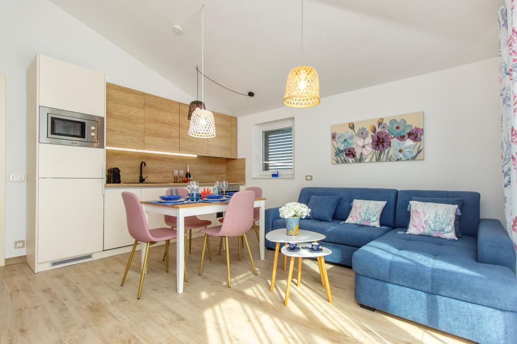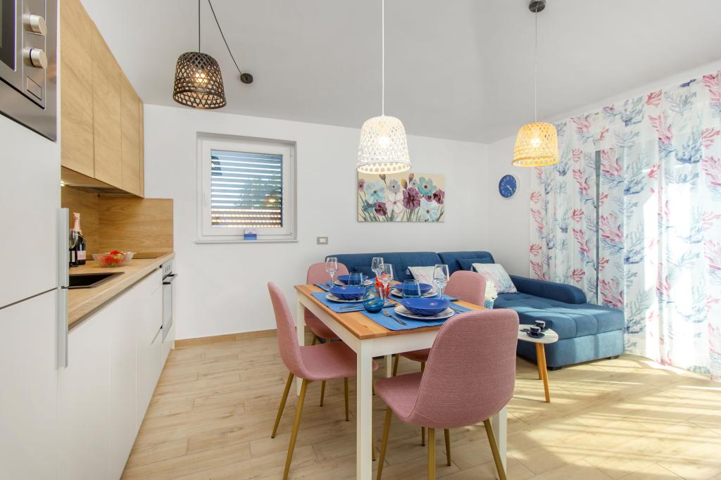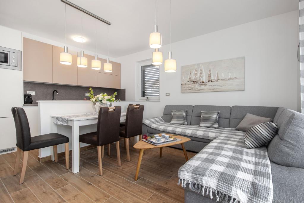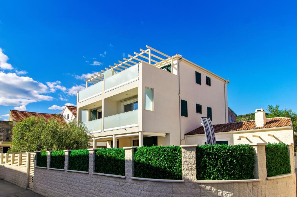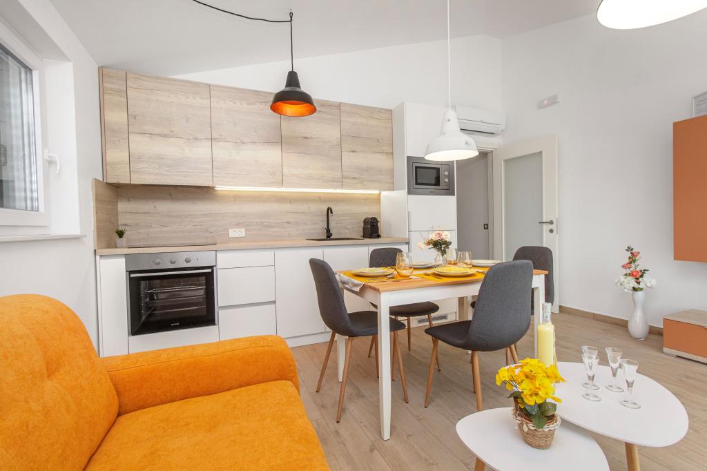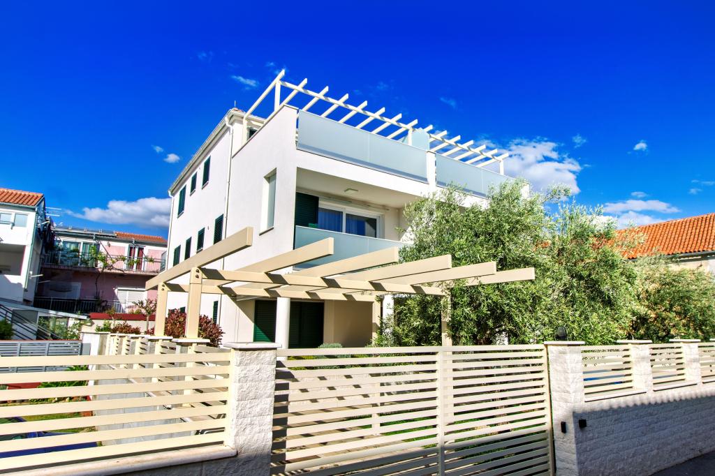 De Three Olives-faciliteit is een nieuw gebouw en opent vanaf de zomer van 2024 voor het eerst haar deuren voor gasten. Op het erf van het gebouw staan drie oude olijfbomen, hout dat zo typerend is voor de Kroatische kust en eilanden, uit de vruchten waarvan de olie van de beste kwaliteit wordt verkregen, vaak "vloeibaar goud" genoemd. De naam Three Olives suggereert een omgeving van vrede, rust en overvloed. De appartementen in het gebouw zijn uniek, modern en volledig functioneel ingericht zodat u zich net als in uw eigen huis op uw gemak voelt! Het object is uitstekend gepositioneerd; het ligt op 150 meter van de zee en 200 meter van het stadscentrum. Er zijn geen grote uitvalswegen of zakelijke voorzieningen in de directe omgeving, waardoor gasten dag en nacht verzekerd zijn van rust. Kortom alles is klaar voor uw complete vakantie.