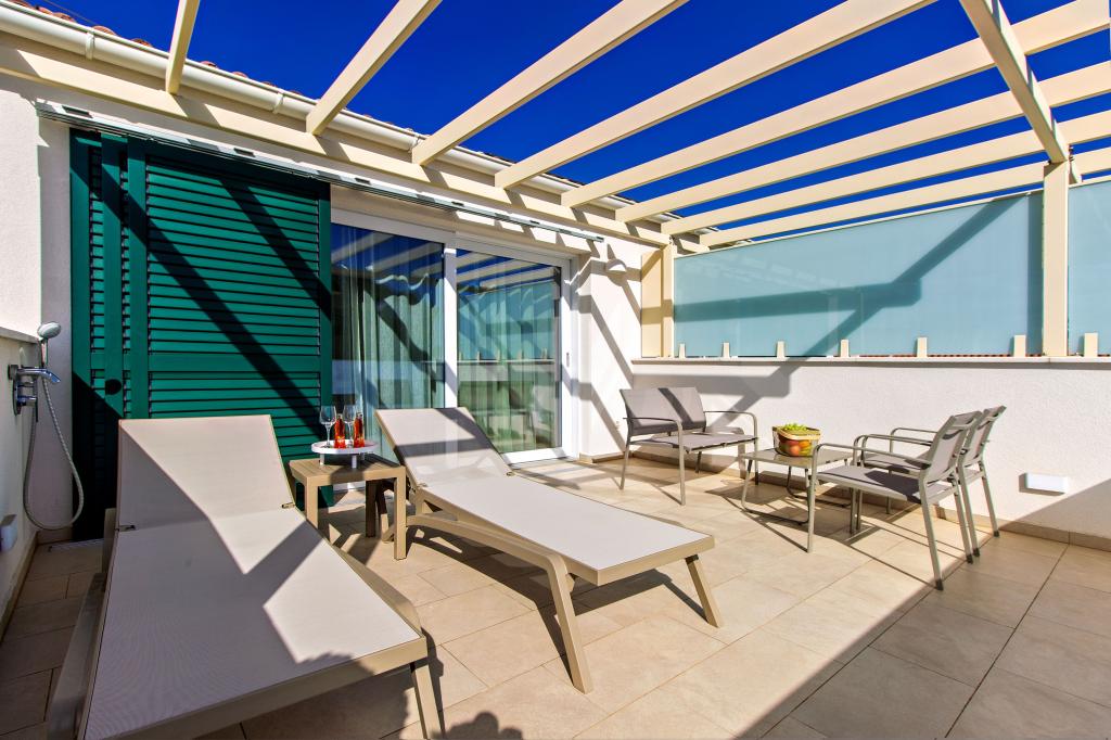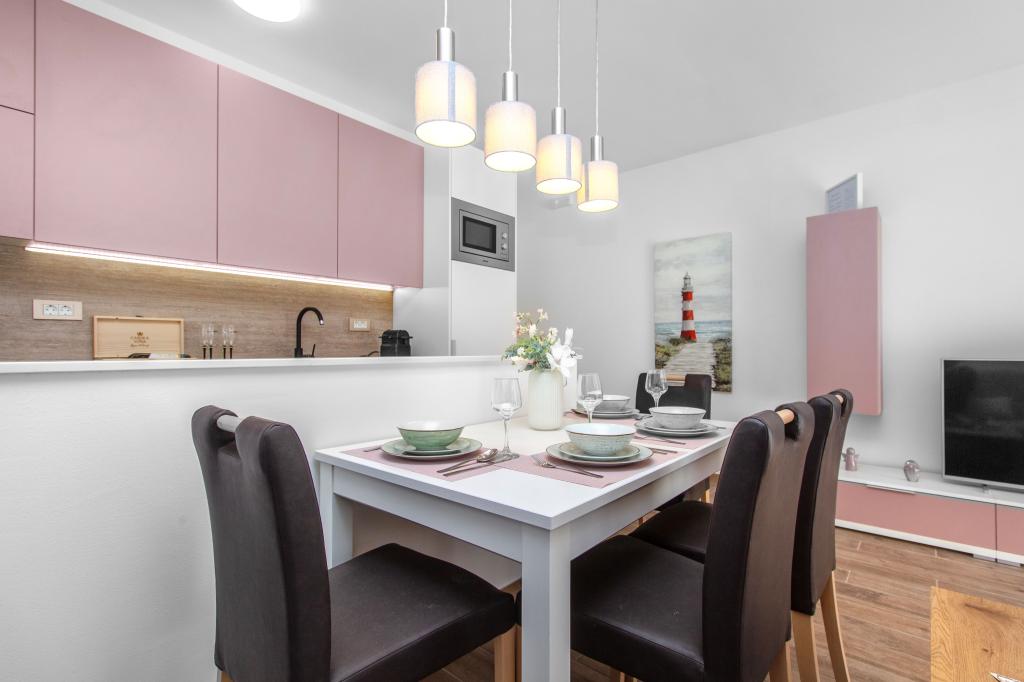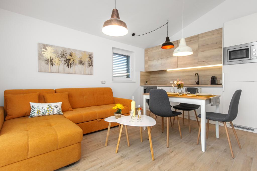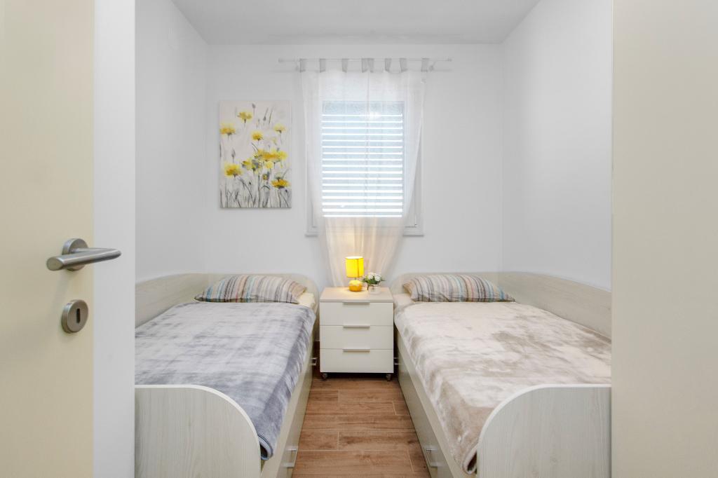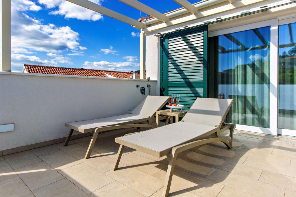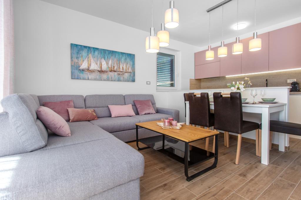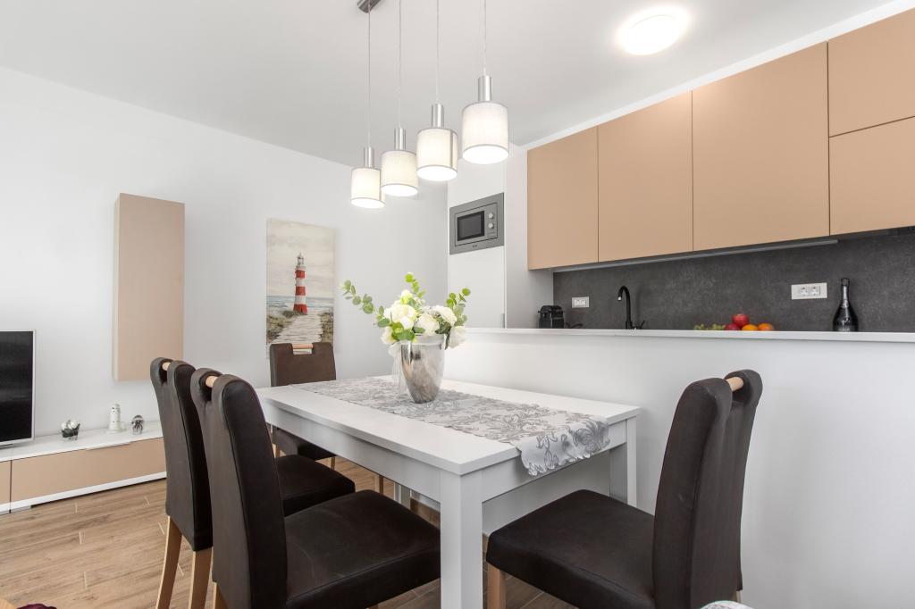 De Three Olives-faciliteit is een nieuw gebouw en opent vanaf de zomer van 2024 voor het eerst haar deuren voor gasten. Op het erf van het gebouw staan drie oude olijfbomen, hout dat zo typerend is voor de Kroatische kust en eilanden, uit de vruchten waarvan de olie van de beste kwaliteit wordt verkregen, vaak "vloeibaar goud" genoemd. De naam Three Olives suggereert een omgeving van vrede, rust en overvloed. De appartementen in het gebouw zijn uniek, modern en volledig functioneel ingericht zodat u zich net als in uw eigen huis op uw gemak voelt! Het object is uitstekend gepositioneerd; het ligt op 150 meter van de zee en 200 meter van het stadscentrum. Er zijn geen grote uitvalswegen of zakelijke voorzieningen in de directe omgeving, waardoor gasten dag en nacht verzekerd zijn van rust. Kortom alles is klaar voor uw complete vakantie.