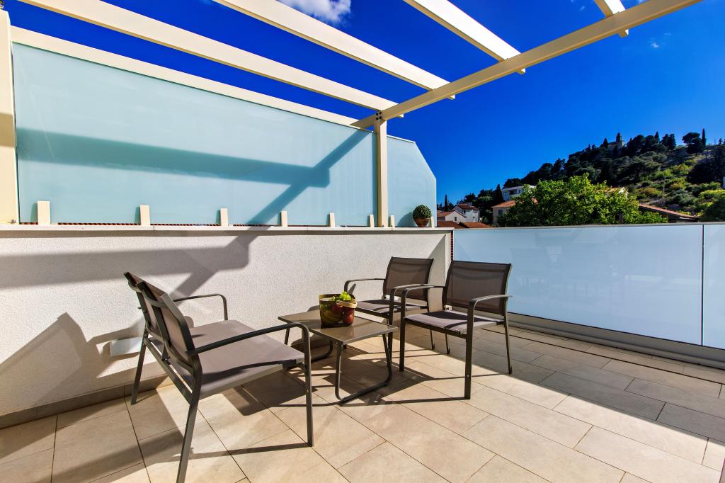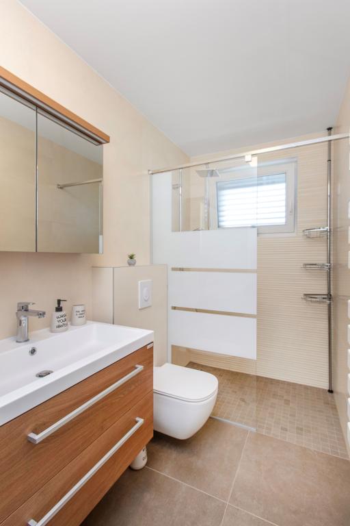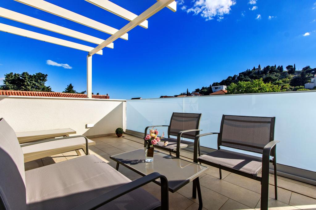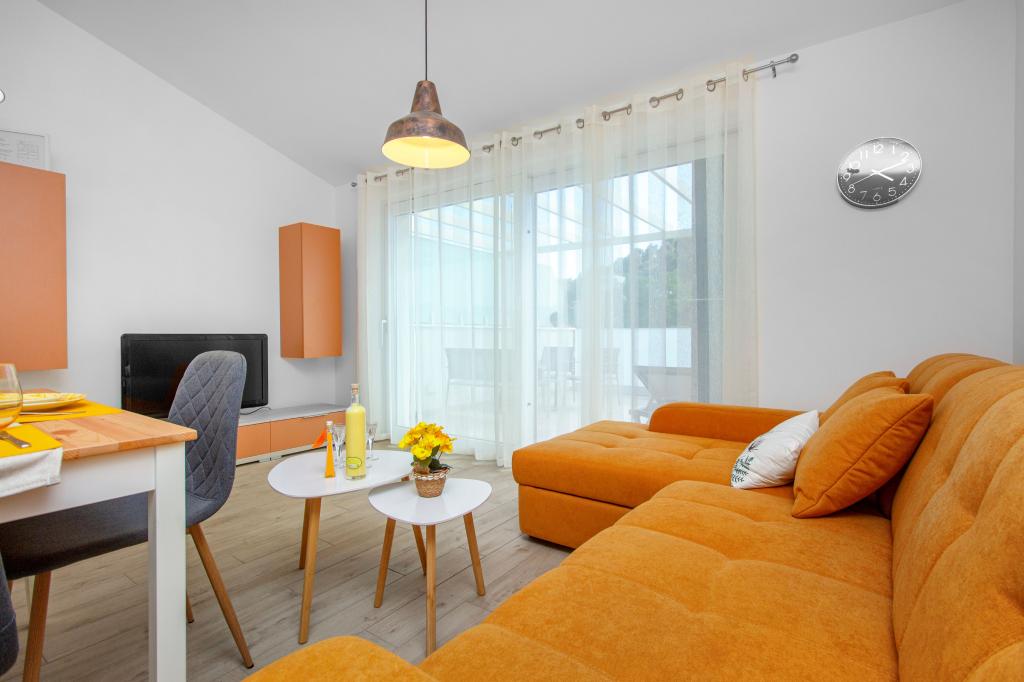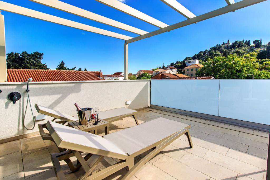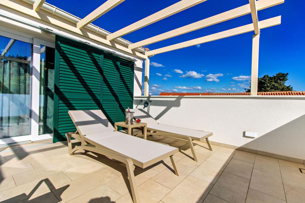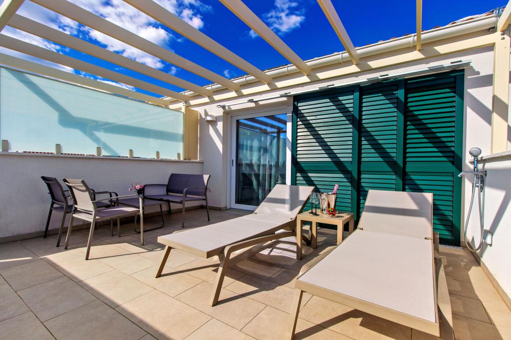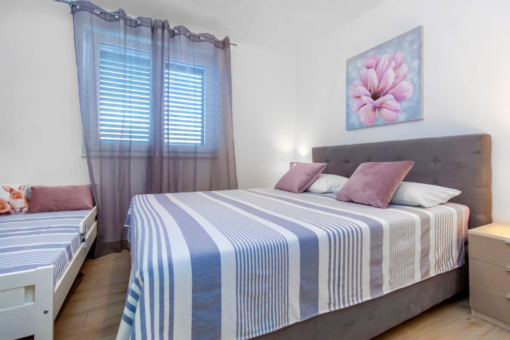 De Three Olives-faciliteit is een nieuw gebouw en opent vanaf de zomer van 2024 voor het eerst haar deuren voor gasten. Op het erf van het gebouw staan drie oude olijfbomen, hout dat zo typerend is voor de Kroatische kust en eilanden, uit de vruchten waarvan de olie van de beste kwaliteit wordt verkregen, vaak "vloeibaar goud" genoemd. De naam Three Olives suggereert een omgeving van vrede, rust en overvloed. De appartementen in het gebouw zijn uniek, modern en volledig functioneel ingericht zodat u zich net als in uw eigen huis op uw gemak voelt! Het object is uitstekend gepositioneerd; het ligt op 150 meter van de zee en 200 meter van het stadscentrum. Er zijn geen grote uitvalswegen of zakelijke voorzieningen in de directe omgeving, waardoor gasten dag en nacht verzekerd zijn van rust. Kortom alles is klaar voor uw complete vakantie.