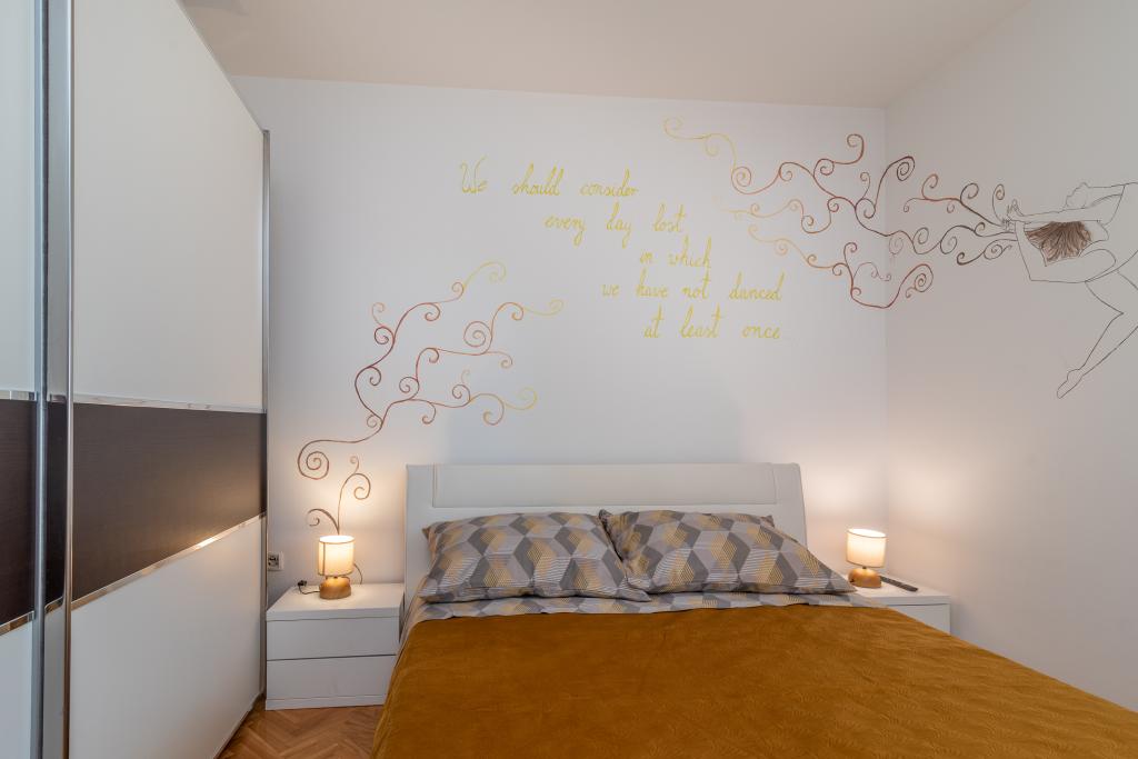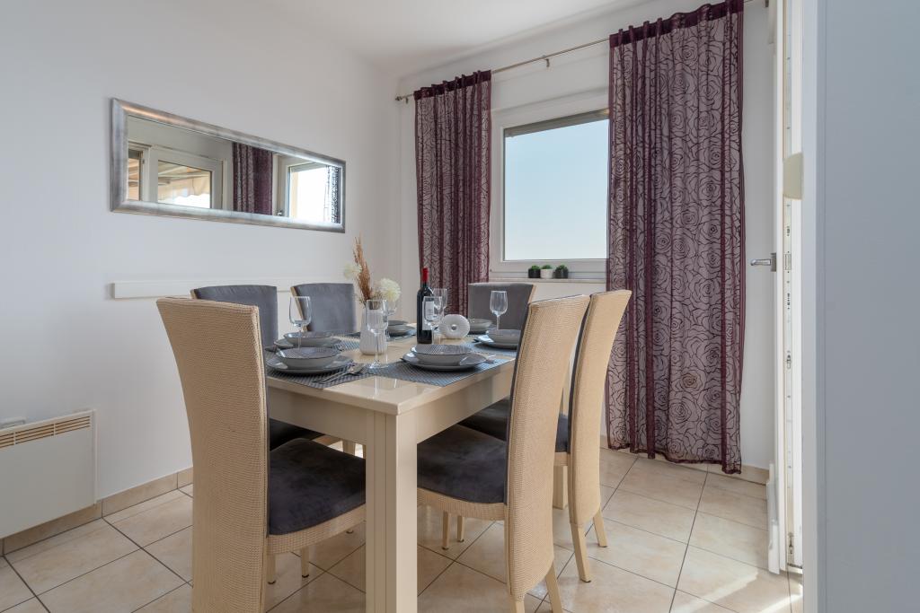 Het onlangs gerenoveerde appartement Anđela voor 5 personen ligt in de baai van Saldun op het eiland Čiovo, verbonden door twee bruggen. Het appartement bestaat uit 2 slaapkamers, twee badkamers, een keuken, een woonkamer en een balkon met prachtig uitzicht op de zee. Het ligt op 900 meter of 10 minuten lopen van het centrum van de oude binnenstad van Trogir, dat wordt beschermd door UNESCO, op 7 km van de luchthaven van Split en op 1,5 km van het busstation van Trogir.
