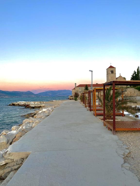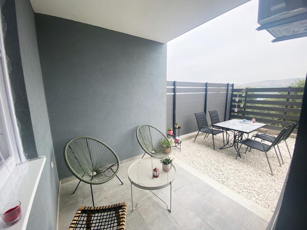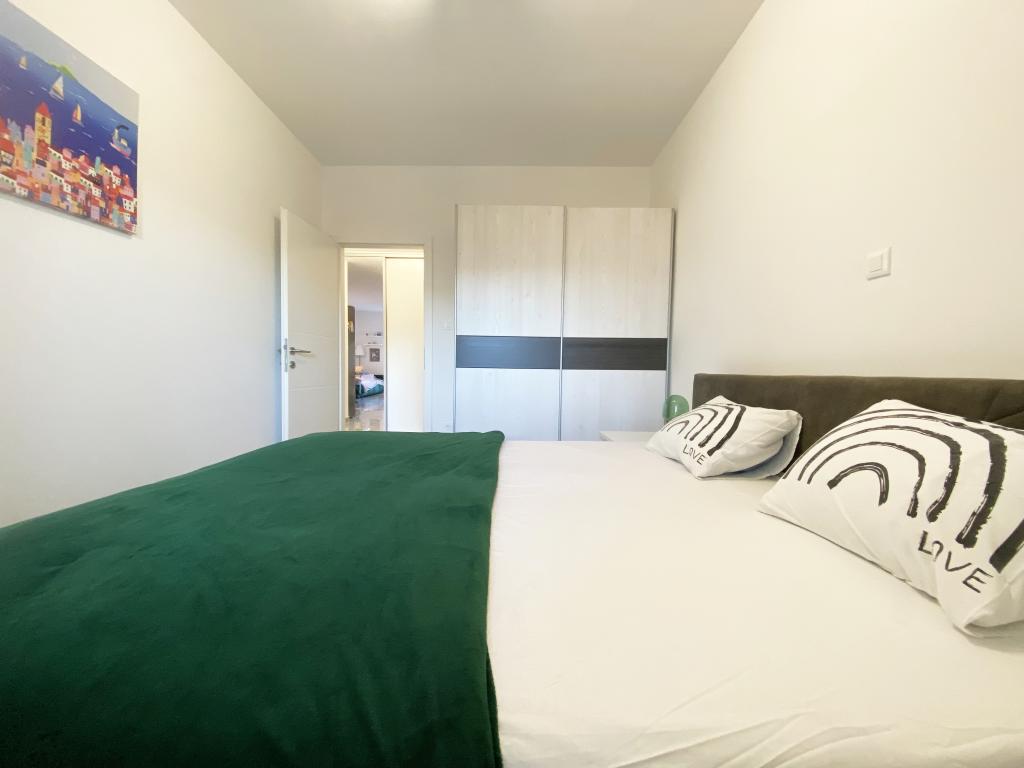 Appartement Bubble ligt in Mastrinka - Trogir (eiland Čiovo) in een klein gebouw, op slechts 5 minuten lopen van de zee (250 m bergopwaarts) en het strand, waar u voldoende schaduw kunt vinden. Bovendien zijn er op het strand voldoende faciliteiten (cafés, springkussens in de zee, etc.). Het appartement bestaat uit een slaapkamer, badkamer, woonkamer en keuken, en een eigen, kleine, omheinde tuin (30 vierkante meter) waar u de hele dag en op aangename zomeravonden van kunt genieten. Het appartement is voorzien van airconditioning en volledig uitgerust met alle benodigde apparatuur (koffiezetapparaat, waterkoker, broodrooster...), inclusief een ingebouwd waterfilter. De gast beschikt over een beveiligde parkeerplaats direct voor de ingang van het gebouw. Onbeperkt internet, smart-tv. Draagbaar babybedje op aanvraag. Huisdieren toegestaan (tegen betaling)