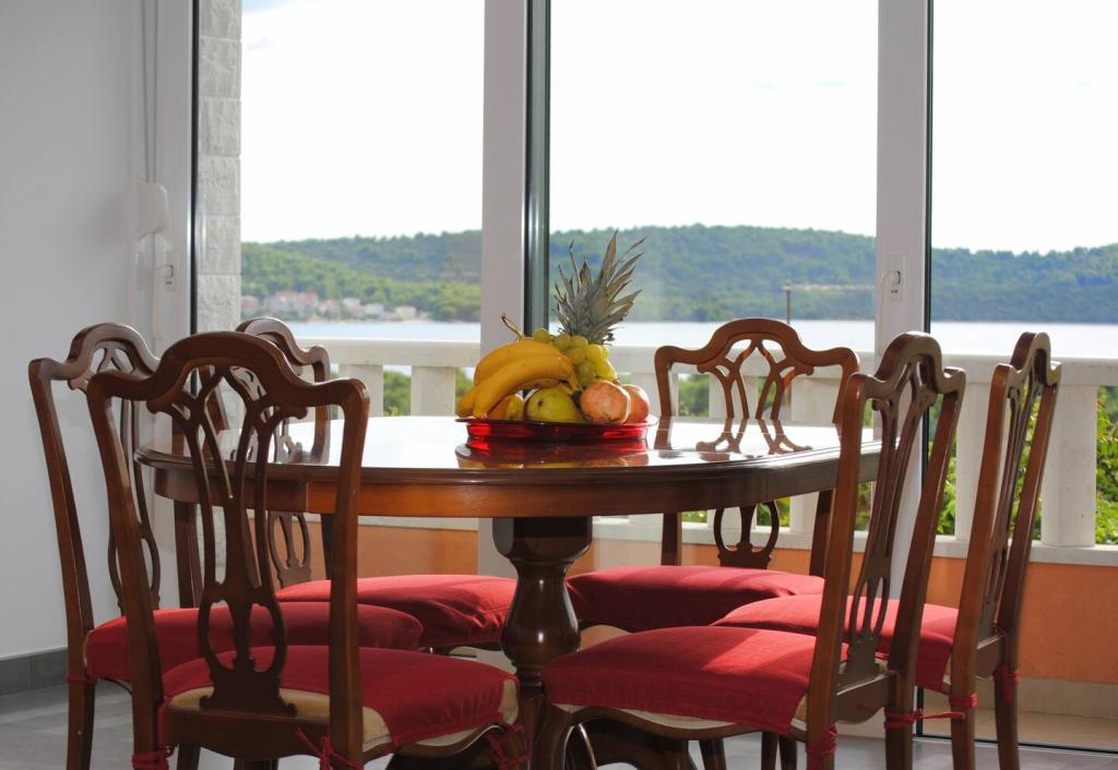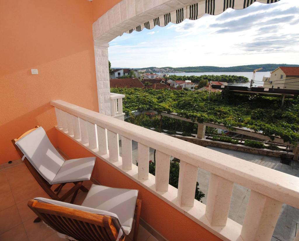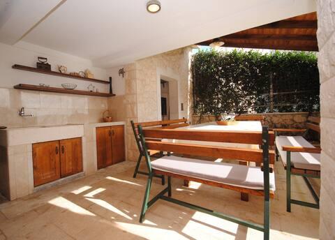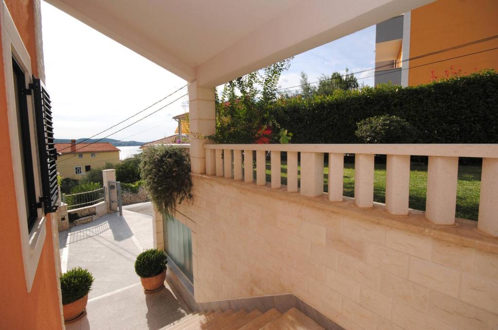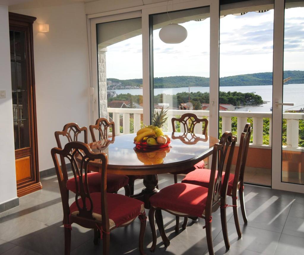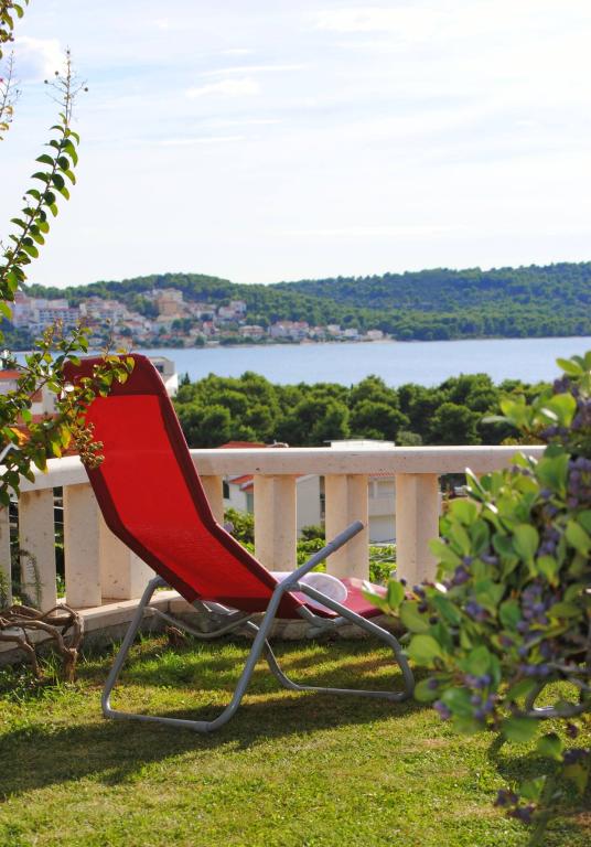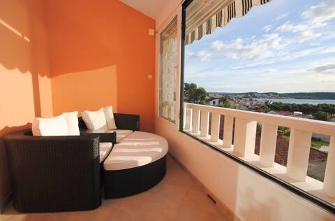 Het luxe appartement met terras "Lucy" en uitzicht op zee ligt op het eiland Čiovo in een rustige omgeving op slechts 10 minuten afstand van de historische oude binnenstad van Trogir. Het appartement bevindt zich op de 1e verdieping van een gezinswoning. Dit driekamerappartement met prachtig uitzicht op zee is ingericht volgens de hoogste normen en voorzien van alles wat nodig is voor een aangenaam verblijf. Woonkamer: De ruime woonkamer is voorzien van Smart TV, draadloos internet, comfortabele banken en fauteuils en een groot mooi terras. Slaapkamers: Er is een trap die leidt naar 3 luxe slaapkamers (zonslaapkamer (en suite met terras), zeeslaapkamer en zandslaapkamer (met terras en gedeelde badkamer)). Elke kamer beschikt over airconditioning, nachtkastjes, een kast met beddengoed en handdoeken, en een tweepersoonsbed (1,60×2). Achter het huis bevindt zich een prachtige vintage zomerkeuken (met barbecueplek) uitgerust met alles wat u nodig heeft voor genieten in mediterrane stijl.