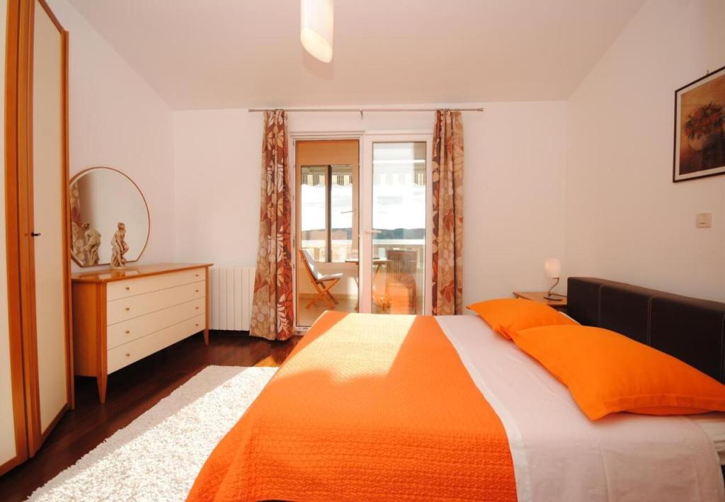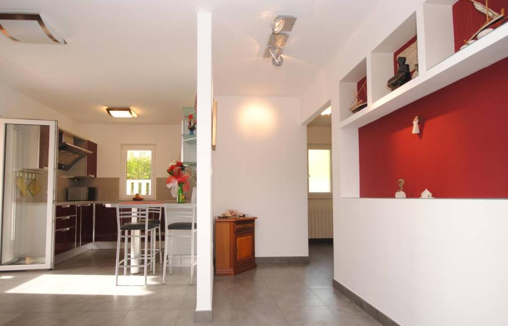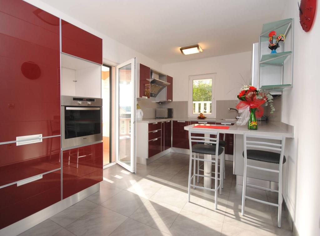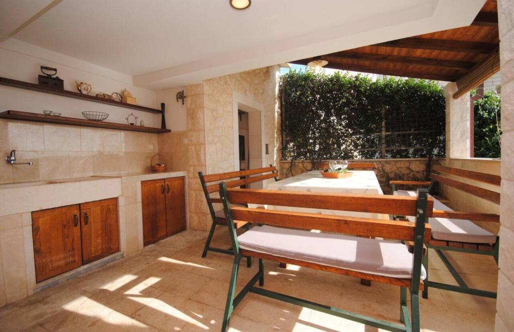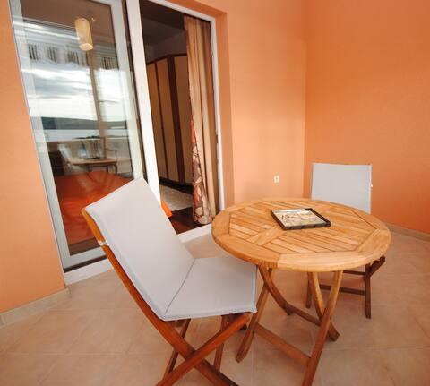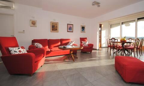 Het luxe appartement met terras "Lucy" en uitzicht op zee ligt op het eiland Čiovo in een rustige omgeving op slechts 10 minuten afstand van de historische oude binnenstad van Trogir. Het appartement bevindt zich op de 1e verdieping van een gezinswoning. Dit driekamerappartement met prachtig uitzicht op zee is ingericht volgens de hoogste normen en voorzien van alles wat nodig is voor een aangenaam verblijf. Woonkamer: De ruime woonkamer is voorzien van Smart TV, draadloos internet, comfortabele banken en fauteuils en een groot mooi terras. Slaapkamers: Er is een trap die leidt naar 3 luxe slaapkamers (zonslaapkamer (en suite met terras), zeeslaapkamer en zandslaapkamer (met terras en gedeelde badkamer)). Elke kamer beschikt over airconditioning, nachtkastjes, een kast met beddengoed en handdoeken, en een tweepersoonsbed (1,60×2). Achter het huis bevindt zich een prachtige vintage zomerkeuken (met barbecueplek) uitgerust met alles wat u nodig heeft voor genieten in mediterrane stijl.