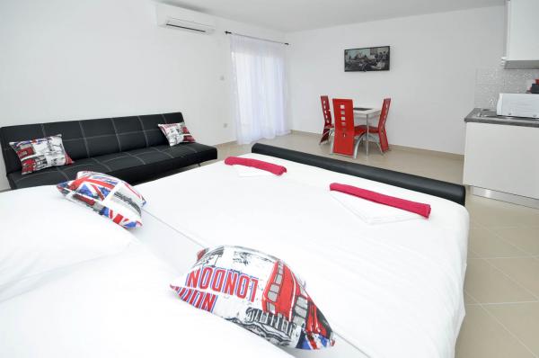 Inlusief wel Toeristenbelasting. Boekingsbevestigingsdocument bij reserveringApartments zeer smaakvol ingericht in een moderne stijl. Alles is schoon en geurig, niet ontbreken niets Het klimaat geïntroduceerd door de eigenaar maakt u speciaal voelen. De woning in een rustige plaats, ondanks het feit dat het centrum van Trogir, op 10 minuten lopen. In de nabijheid van een paar leuke stranden van witte steentjes te kiezen. Uitstekend! De eigenaar zorgt voor alles naar het begin tot het einde. Tijdens hun verblijf, ze brengen verse handdoeken, of zelfs stelt voor om de lakens. Apartments Mijatovic Ik kan met een gerust hart zelfs de meest veeleisende.